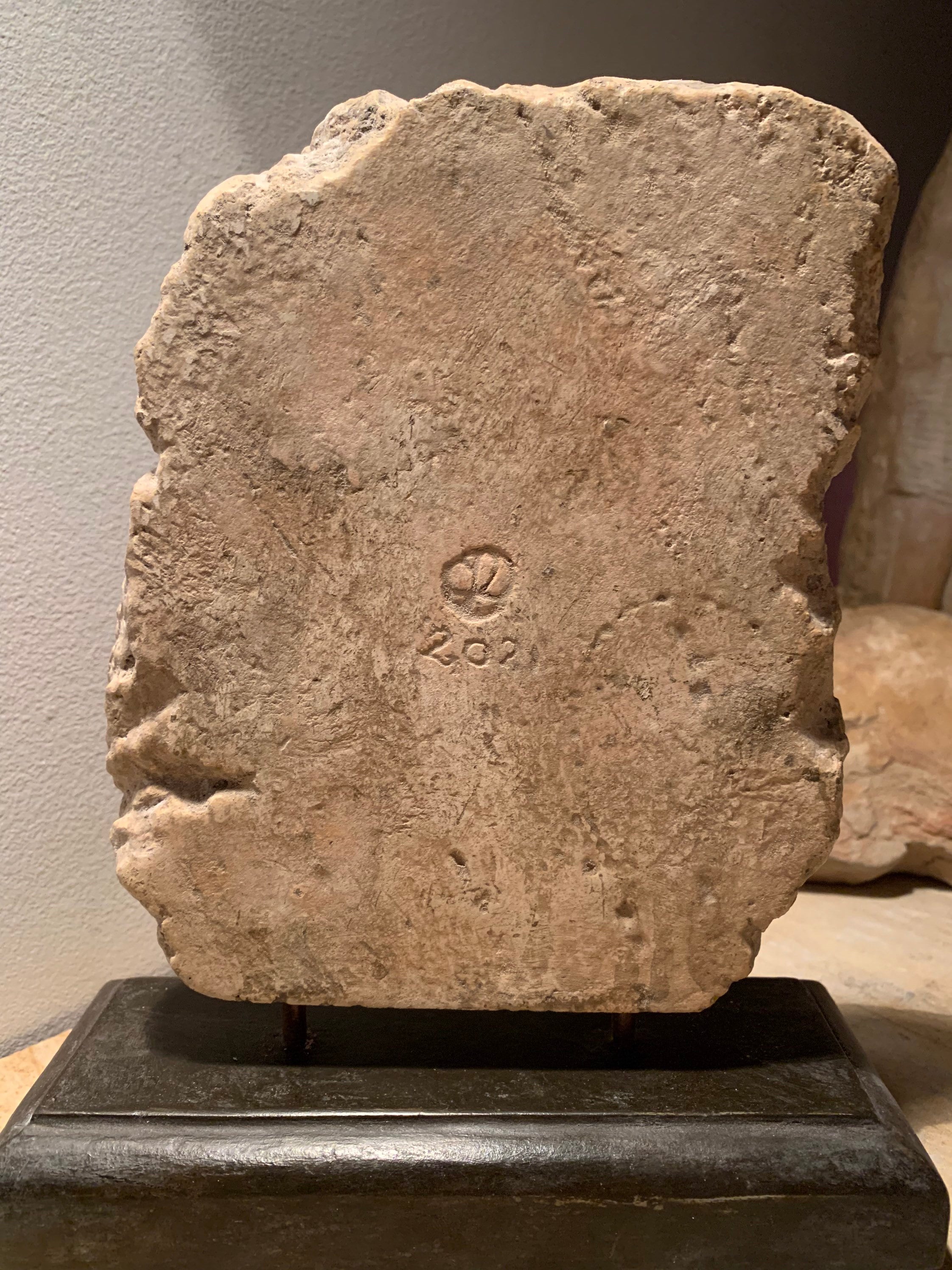Made of a limestone and quartzite composition stone, she has been mounted on an easily removable felt based stand which provides an excellent support.