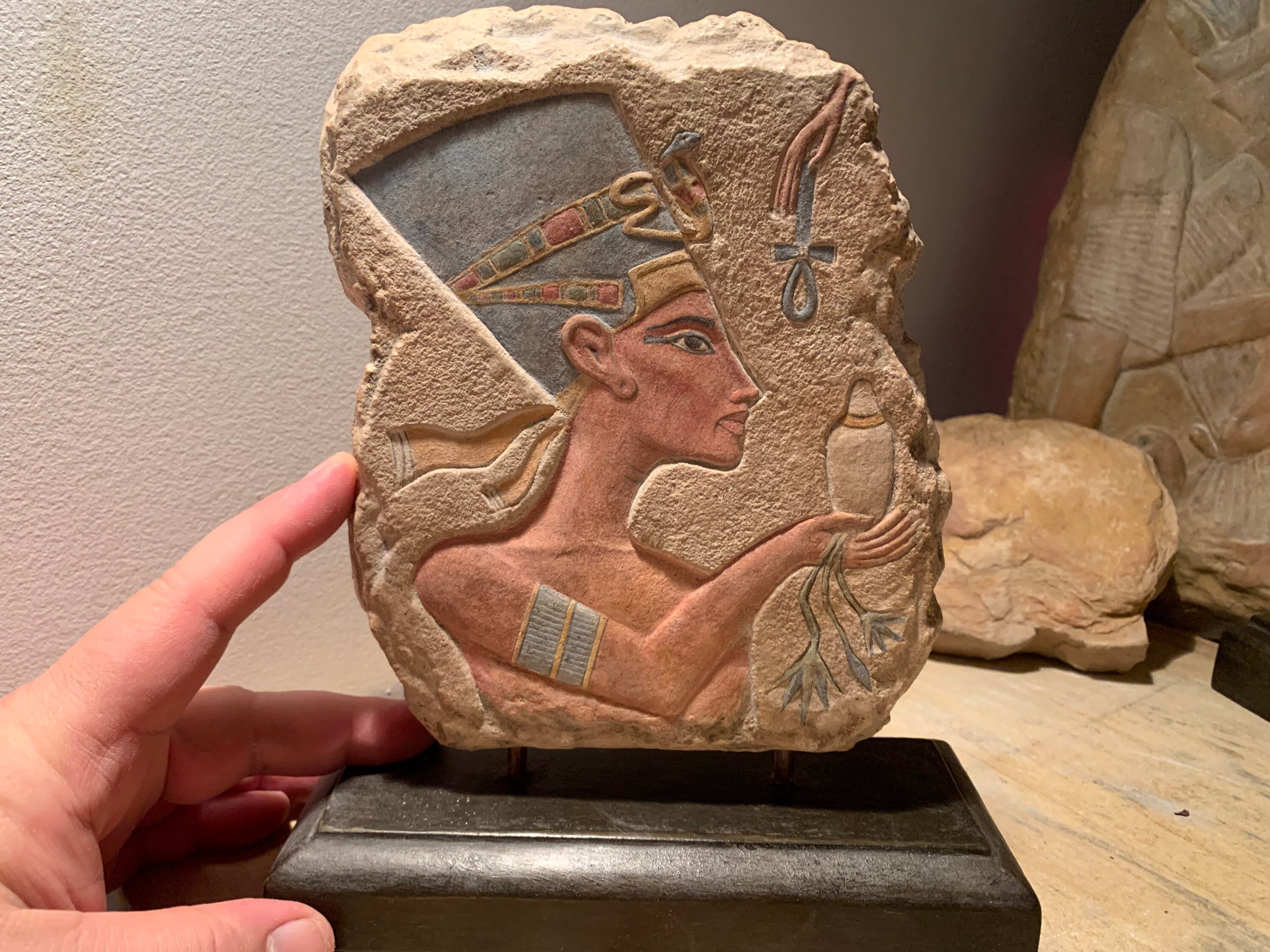 On offer here is a 2022 signed copy of one of my Nefertiti carvings displaying the beautiful features of the Queen with hand painted details.