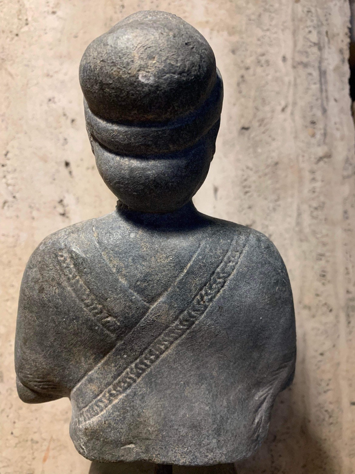No inscriptional evidence can be found on this statue and this is in stark contrast to the 30 or so statues of the ruler of Lagash - Gudea. Gudea married a certain Ninalla and the quality of this sculpture compares well with the fine workmanship of Gudea's own statues found nearby the find spot for this statue.
