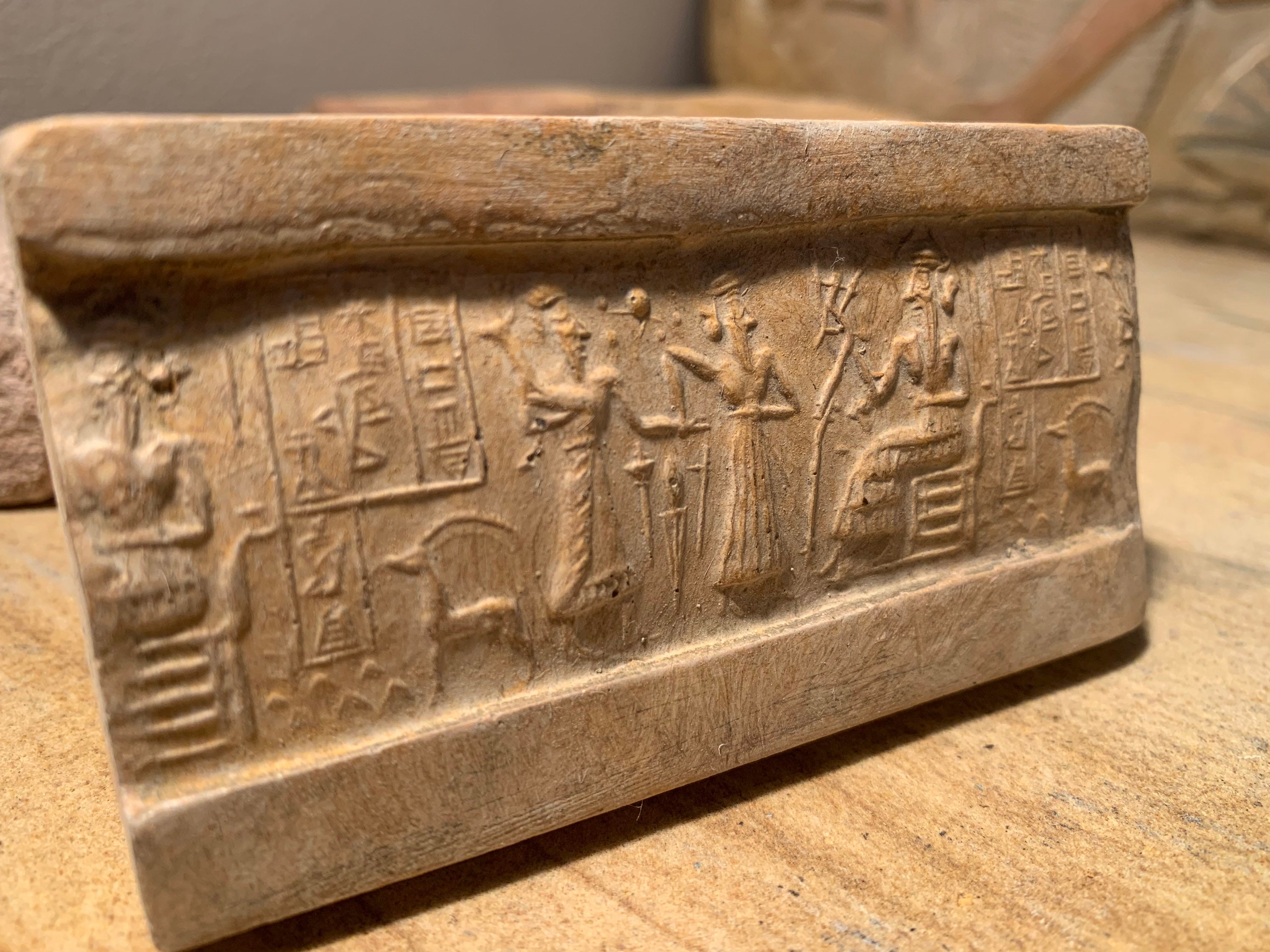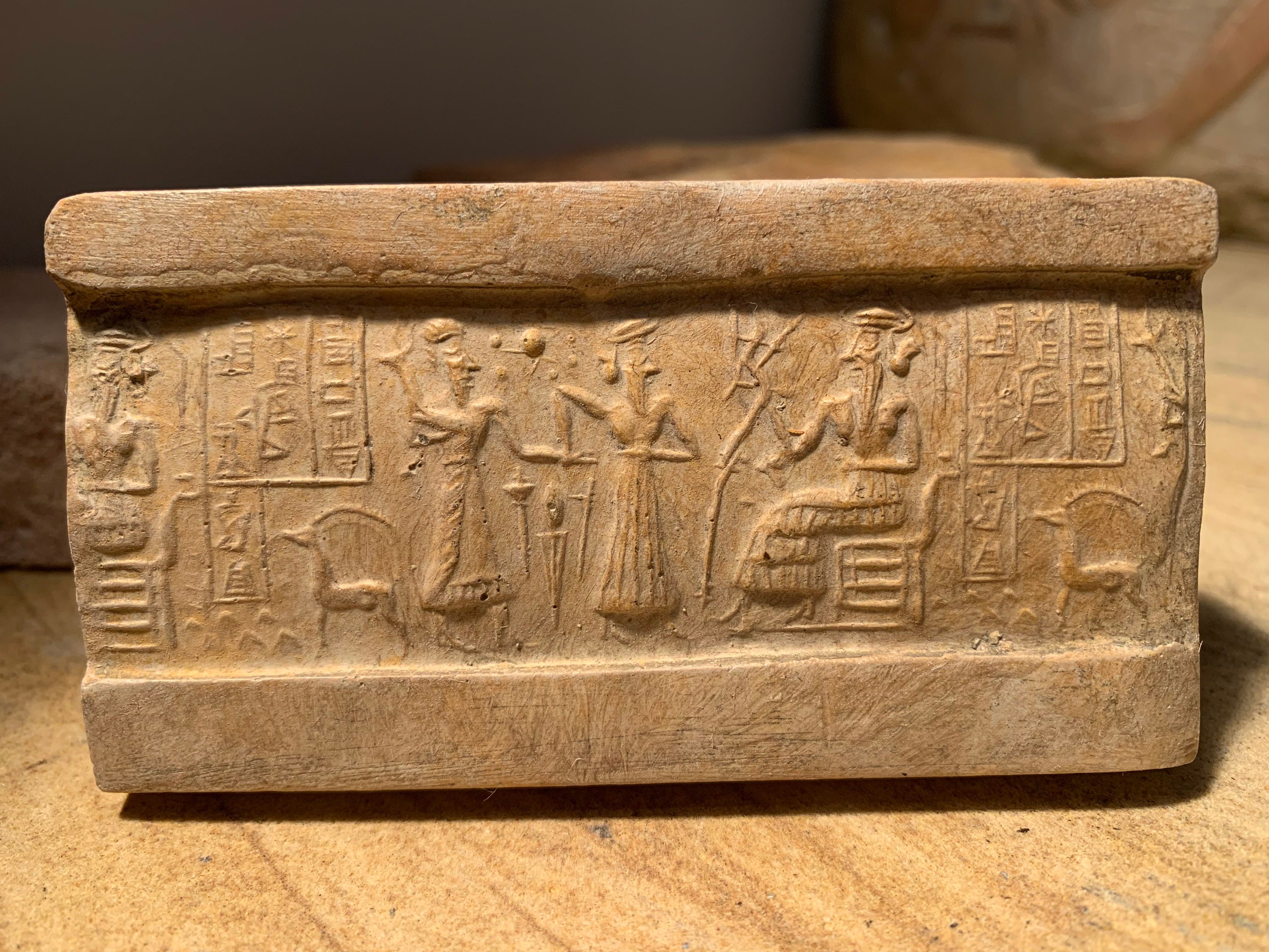 On offer here is a replica of one of the most well known and controversial of all Sumerian cylinder seal impressions.