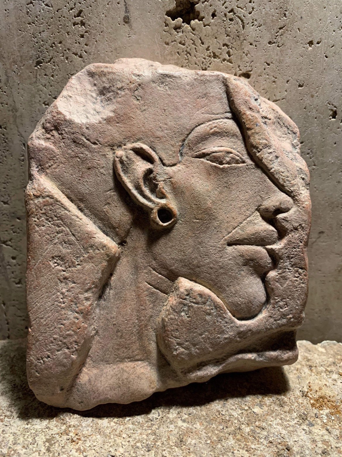 On offer here is one of the most iconic images of the Pharaoh Akhenaten that has been handed down to us from antiquity. Possibly the most famous individual relief carving of the king showing the experimental approach used when depicting his face during the early years of his reign.