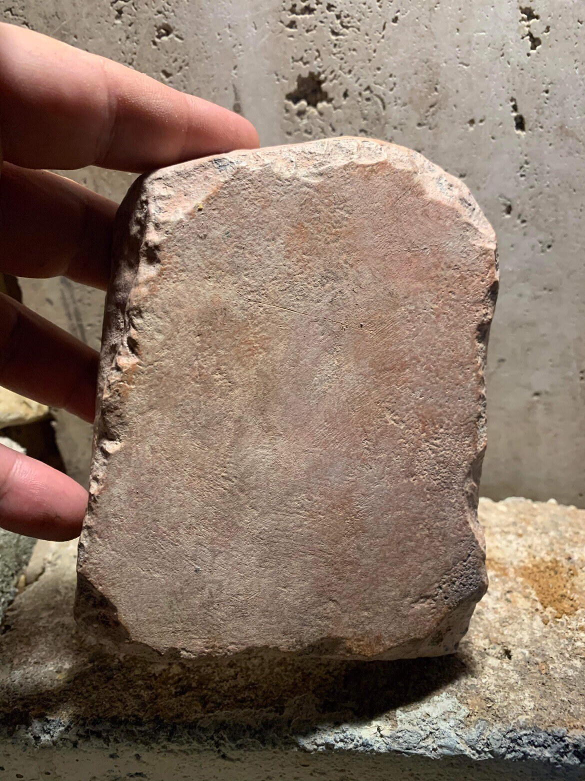 Made of a strong composition stone this fragment has a light ochre colouration with a realistic patina.