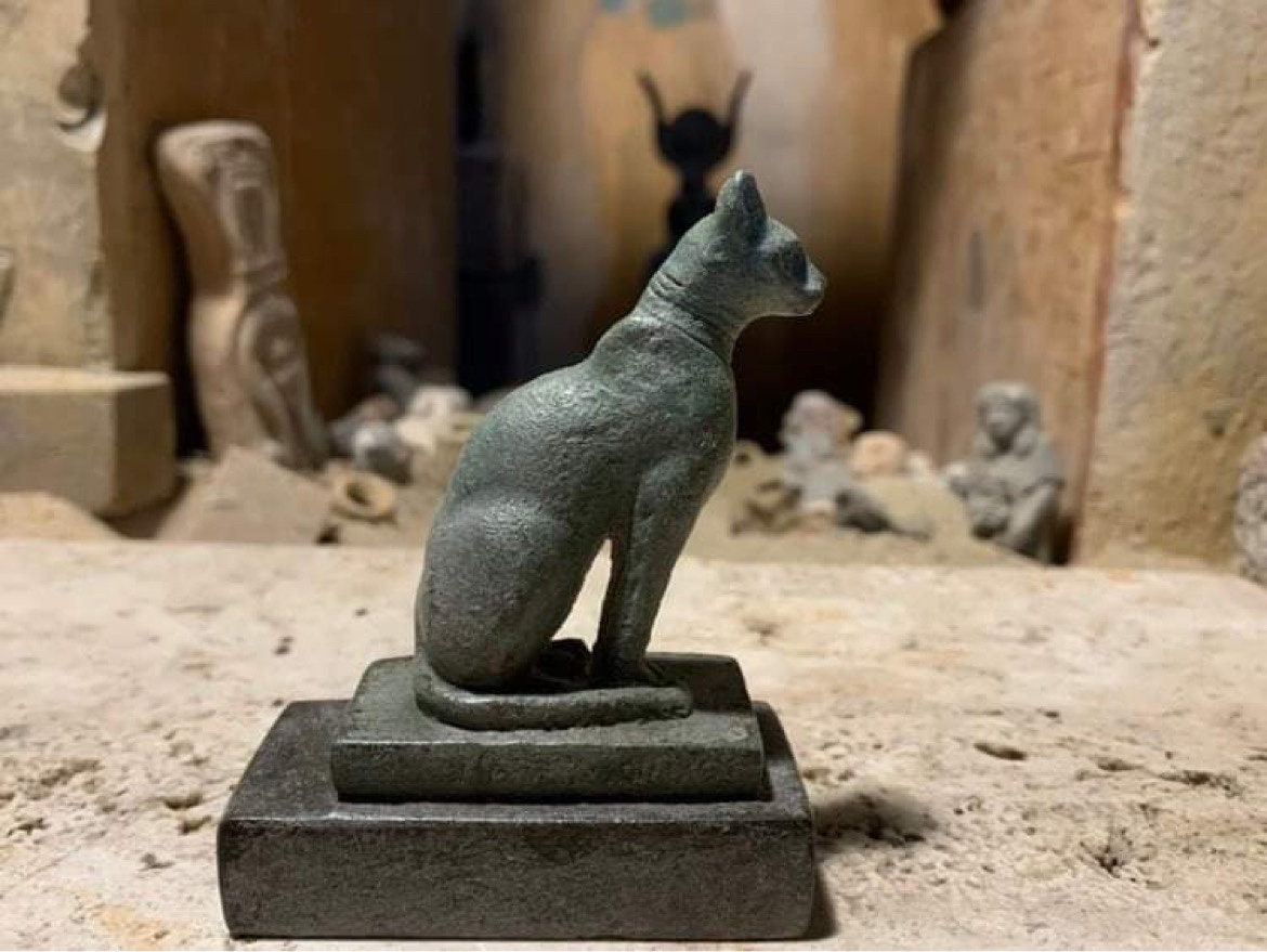 The attributes of Bast are in many ways similar to Hathor with music, dance and all manner of lighthearted activity associated with her. She even shakes a Hathor Sistrum when depicted as a womanly figure with a feline head. She could of course be shown as just a cat without the human features. The ancient public would commission people like myself to make for them a statue or at least a votive head, to place in a temple as an offering to the goddess.