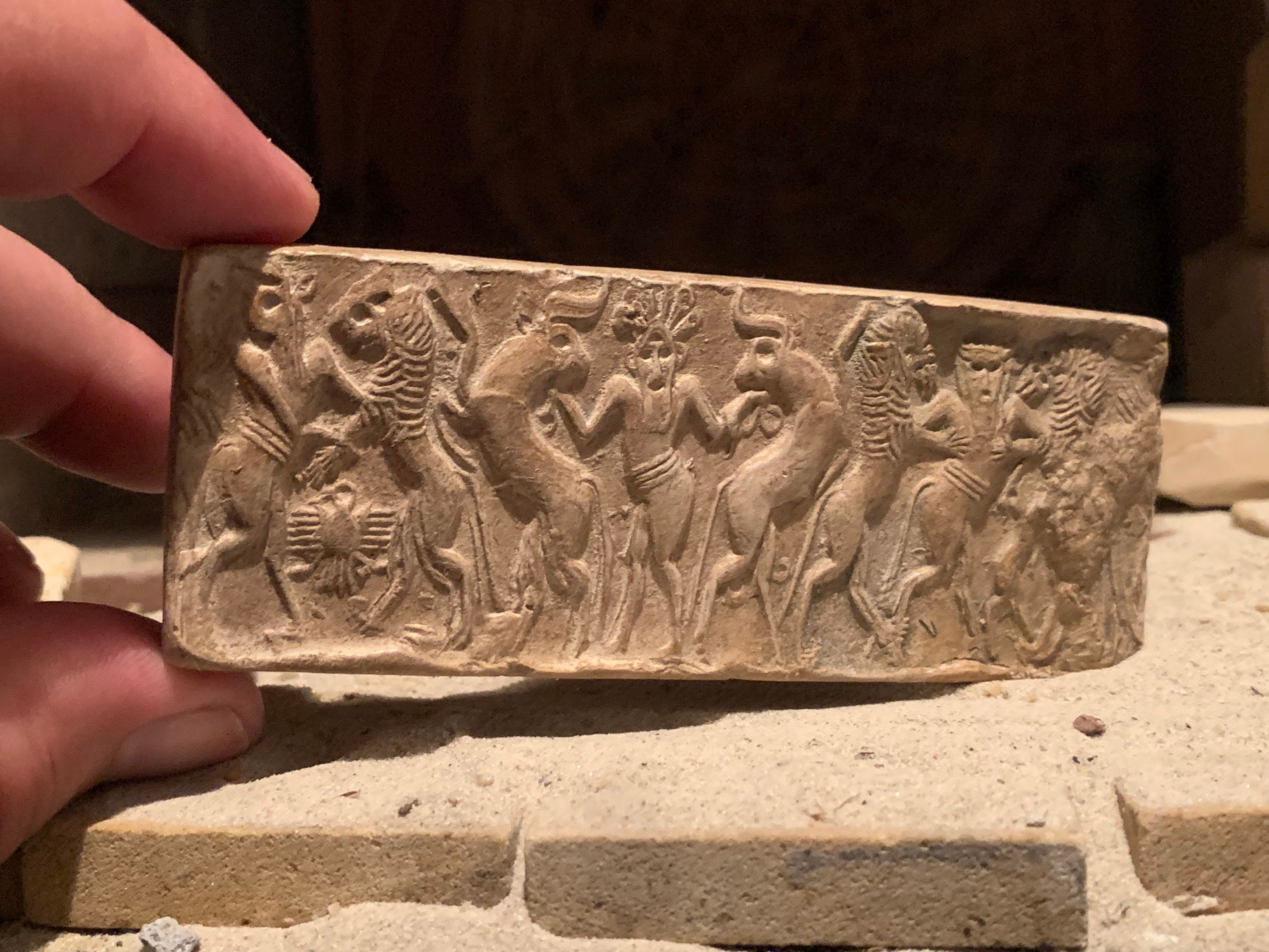 The 'master or mistress of the animals' was a frequent theme used in cylinder seal engravings with particular notable examples from the early 3rd Sumerian dynasty. (Third millenium B.C.E)