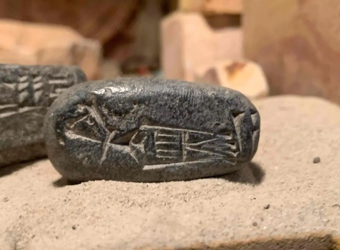 The other small amulet has an older Sumerian inscription - 'New moon, Dark moon'. A talisman of celestial significance.