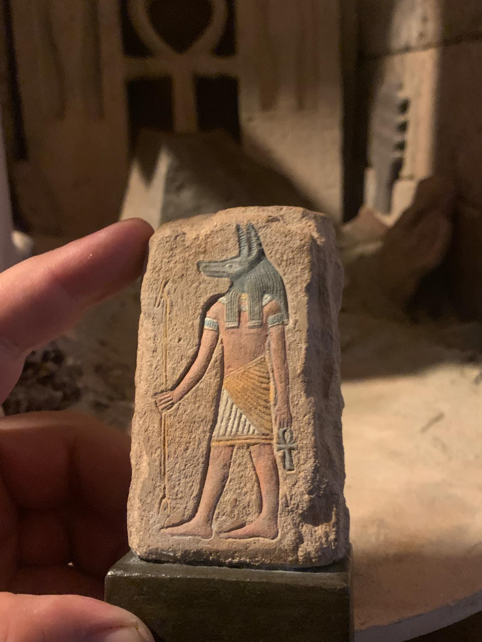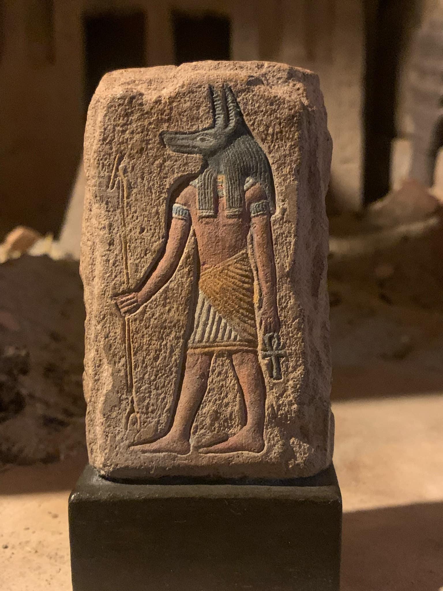 Anubis or Anpu as he was known in the Egyptian tongue, made the 1st mummy (Osiris / Assar) and was forever to be associated with mummification for all periods of Ancient Egyptian history. This small representation depicts Anubis holding a WAS/WASS sceptre which signifies dominion and mastery of his realm.