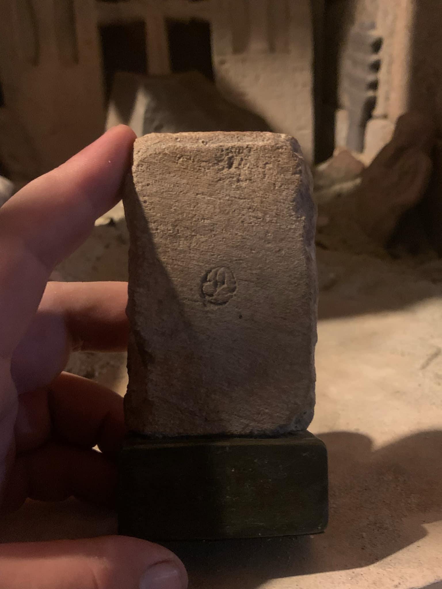 Made of a limestone and quartzite composition stone and has been mounted on a polished felt based stand and is signed on the back.