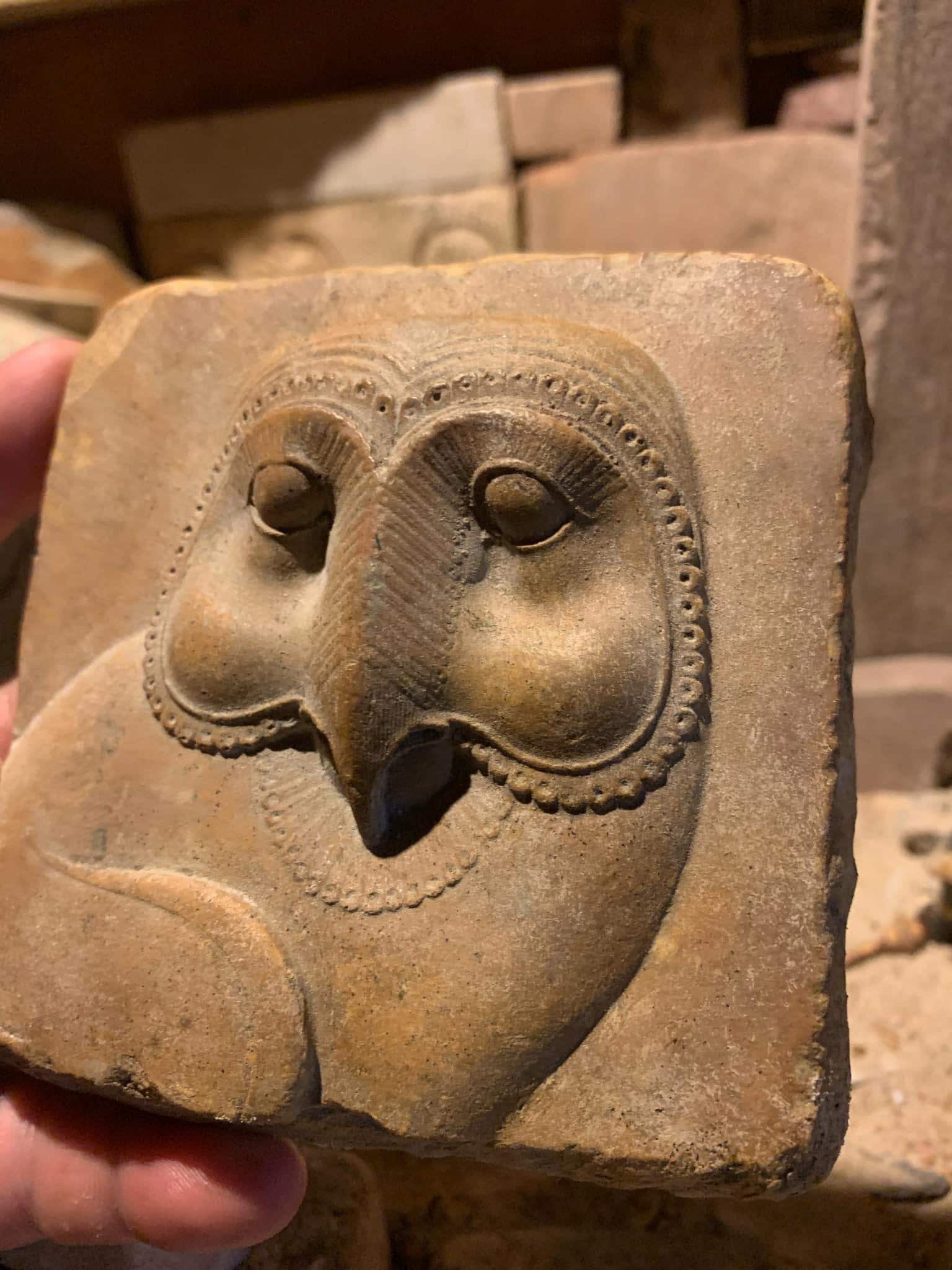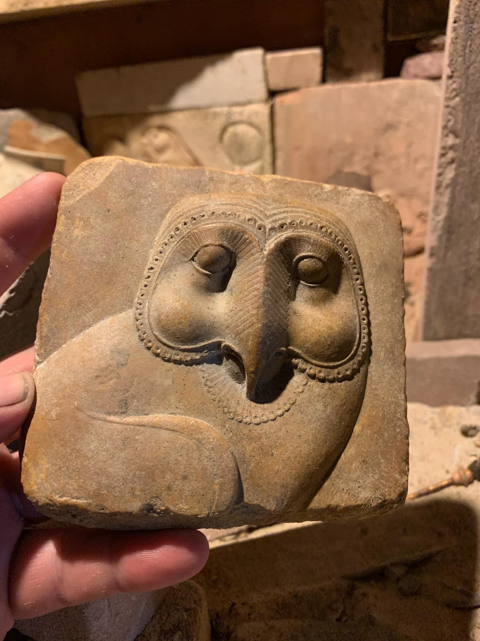 The fact that it is a neat, almost square abbreviated portion of the owl glyph suggests it was a so called 'sculptors model' or trial piece. I have a few different sculptor’s models in the archive and being a sculptor myself, one can see how beneficial it was to have a prime example to look at while transferring the design to a temple wall.