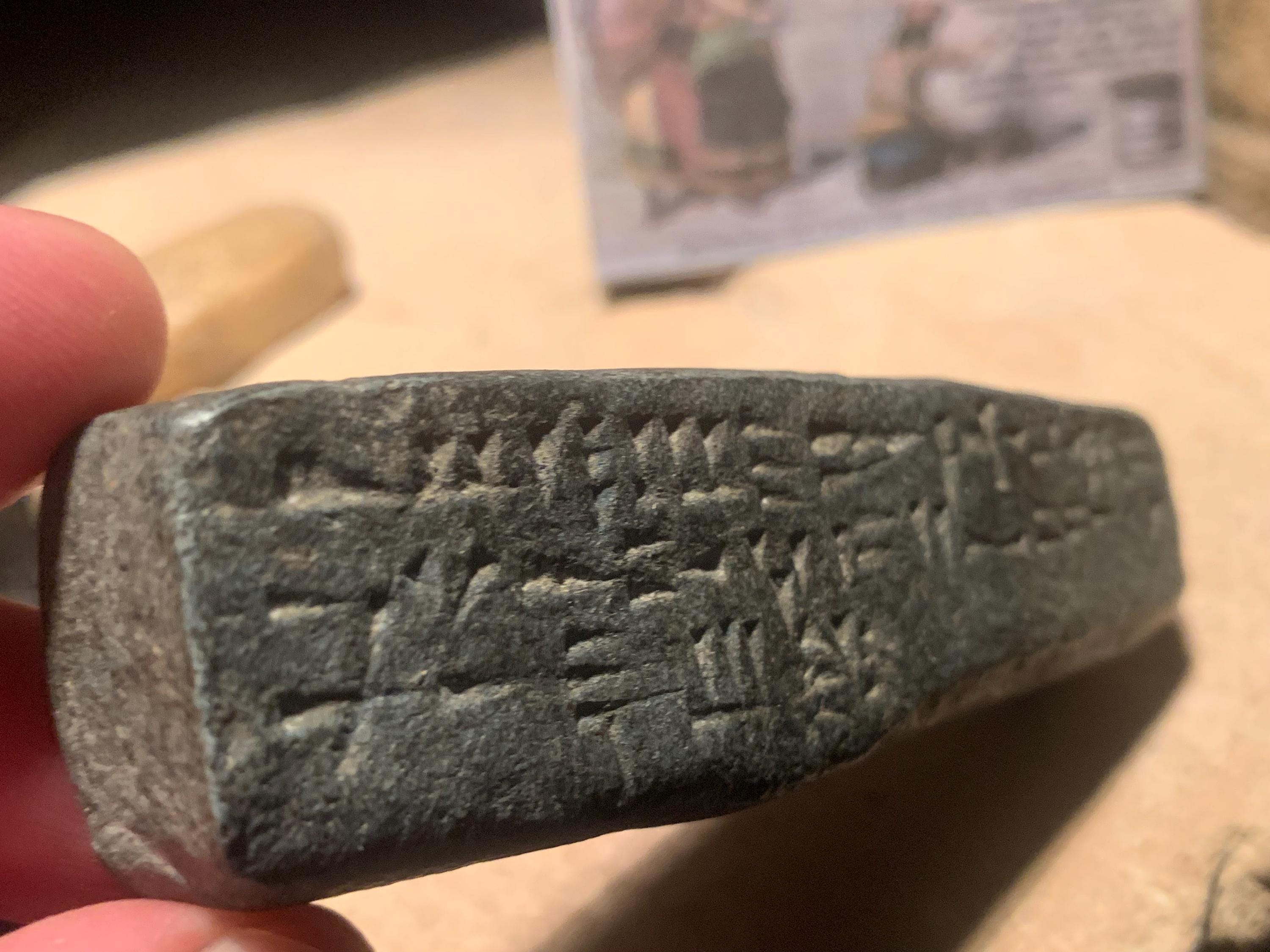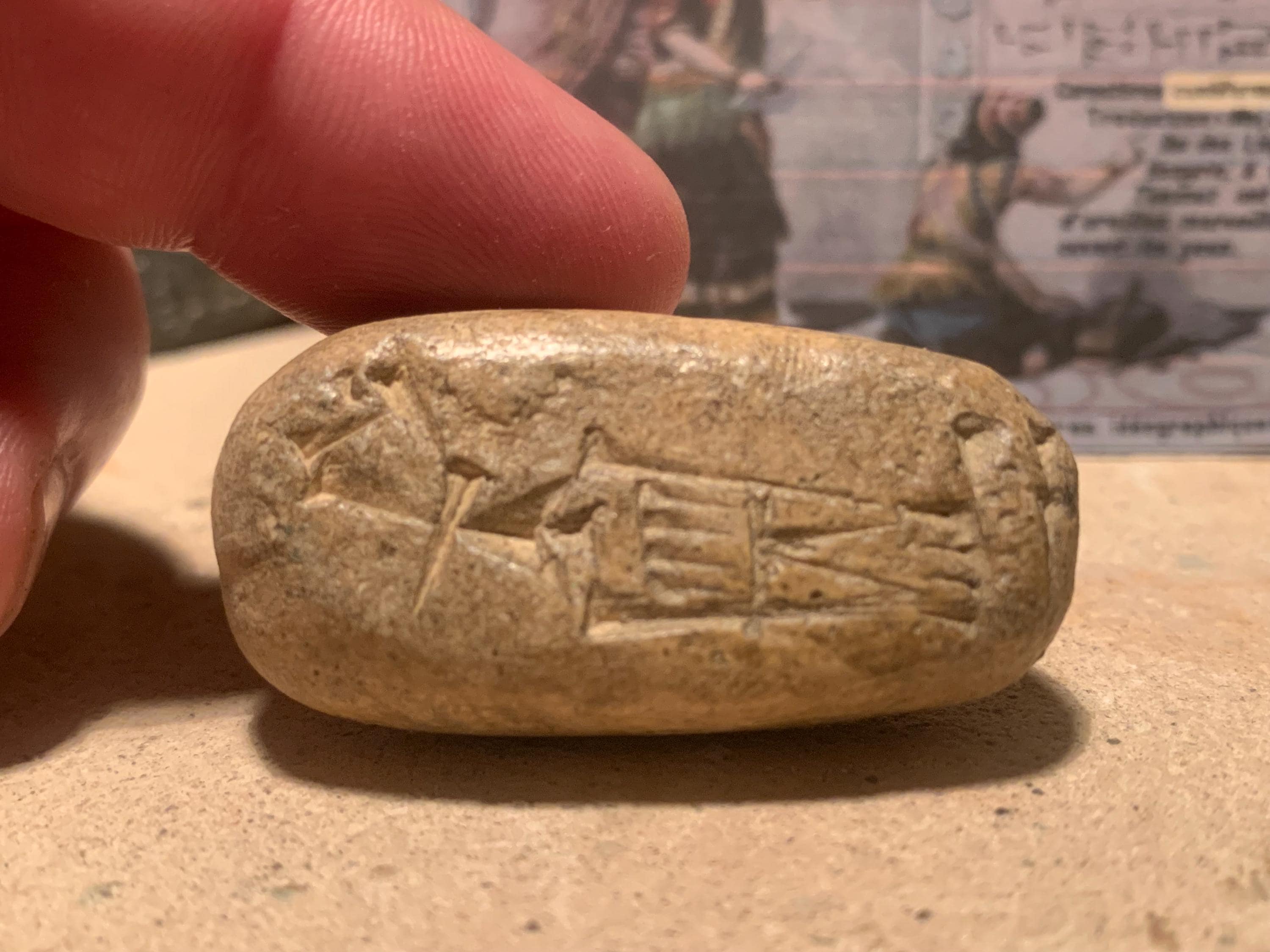 The other small amulet has an older Sumerian inscription - 'New moon, Dark moon'. A talisman of celestial significance.