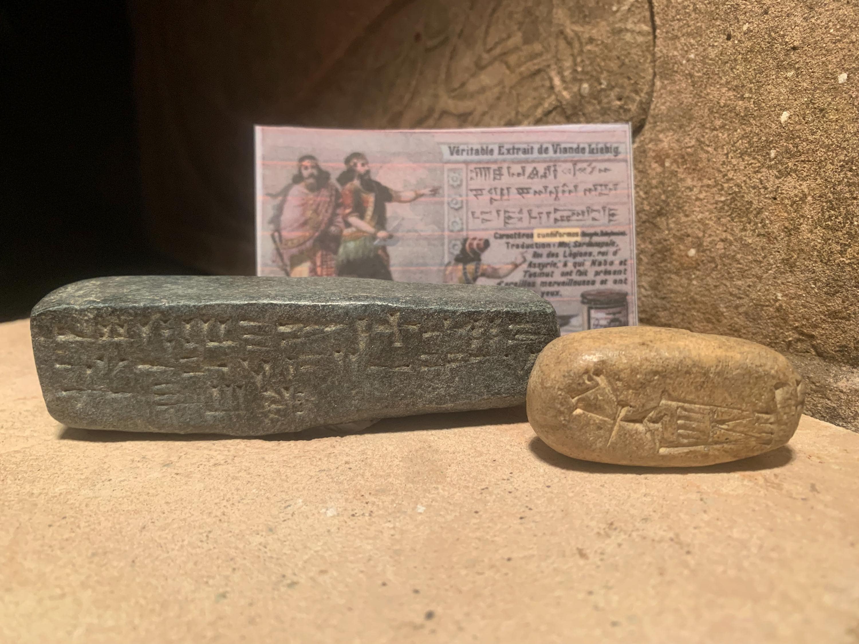 On offer here are a pair of cuneiform tablets from two different regions of Mesopotamia. The larger of the two replicas from the archives of Ugarit, features the fascinating Ugaritic cuneiform abecedary which is one of the earliest forms of an alphabet known.