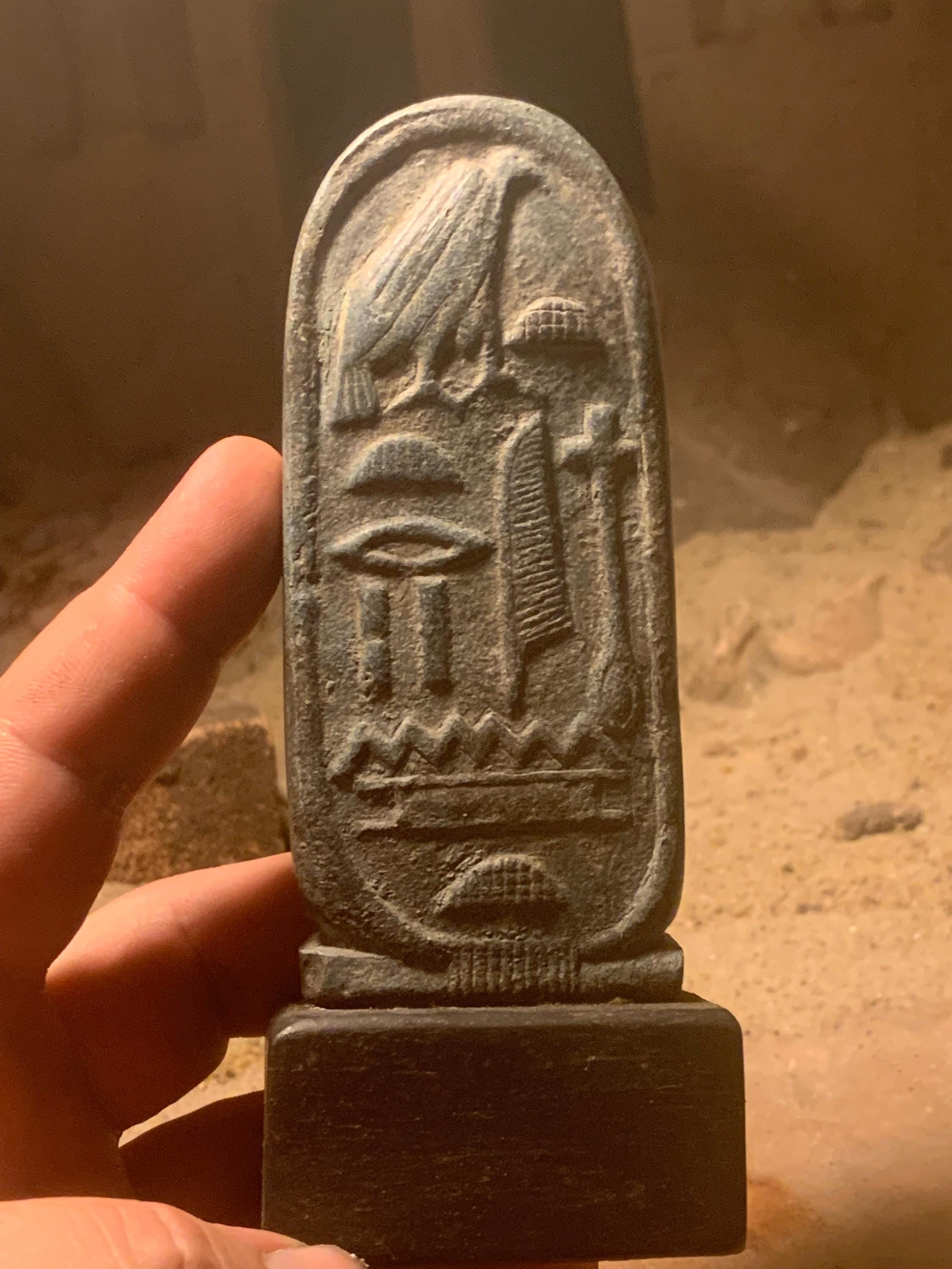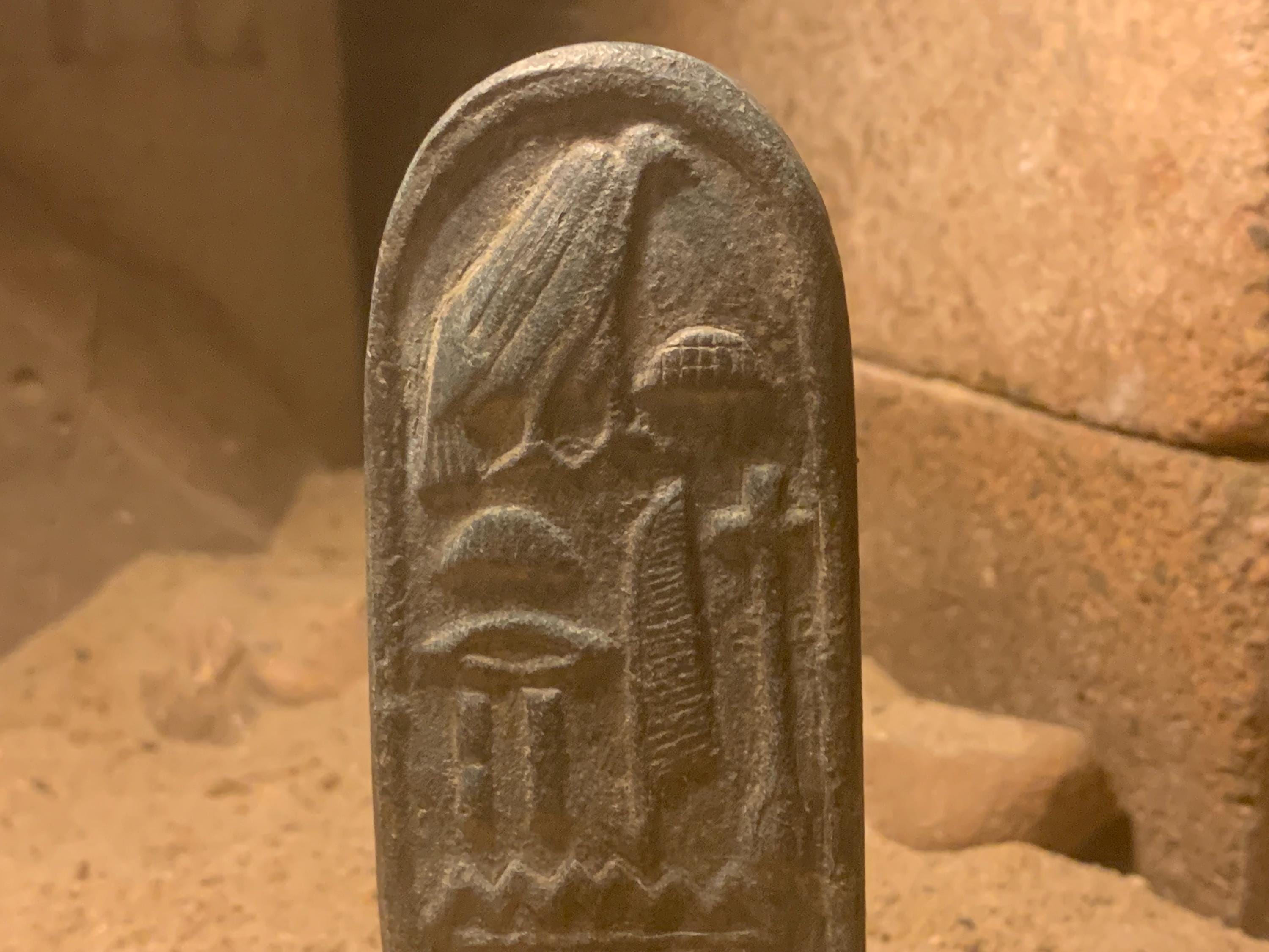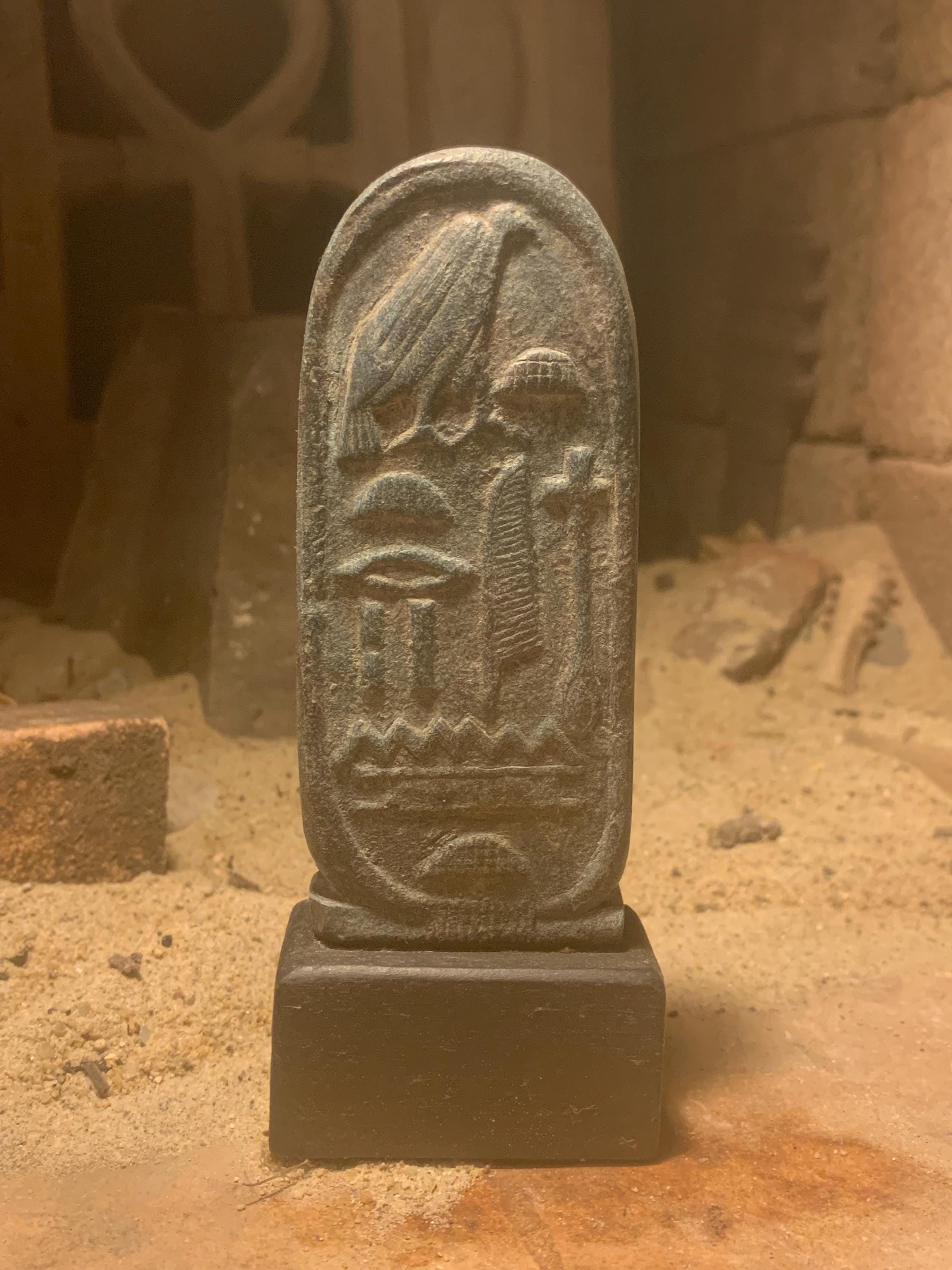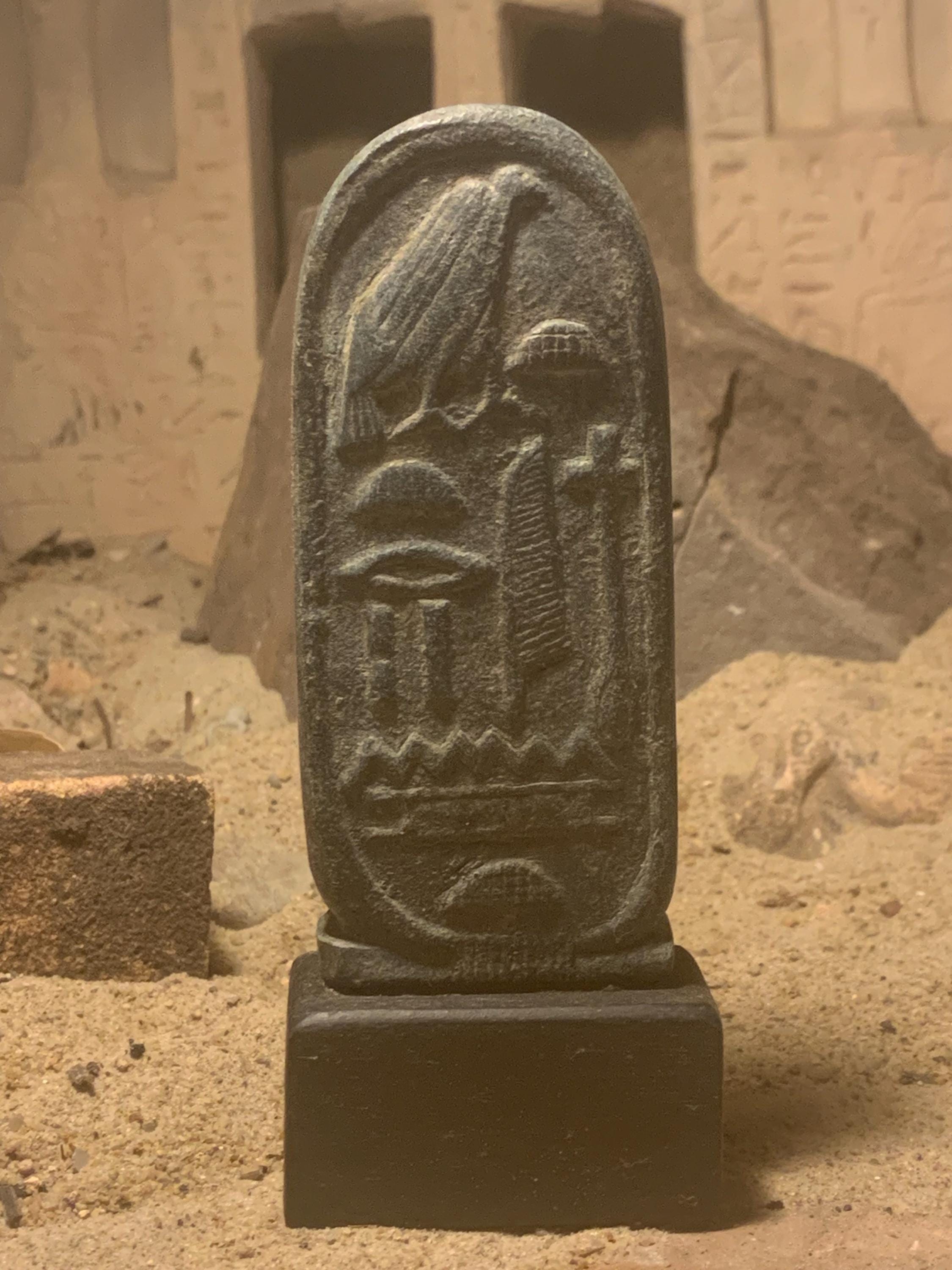 This cartouche was a demonstation piece that was observed by the public in association with the touring Leiden exhibition at the time. I carved many items to show people how much time it can take to carve something of detail and to let people have a go on some amulets of their own.