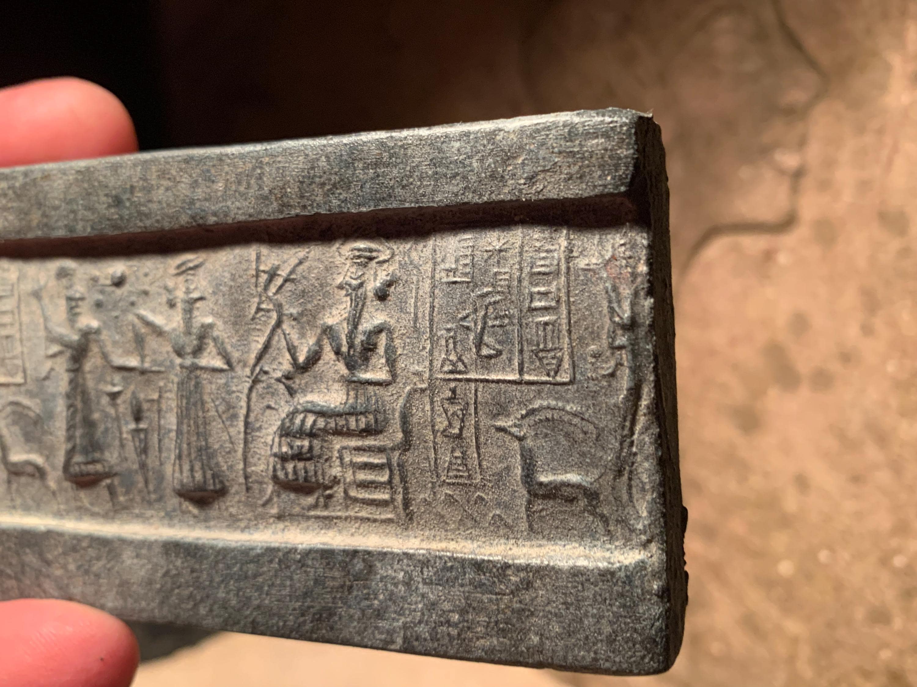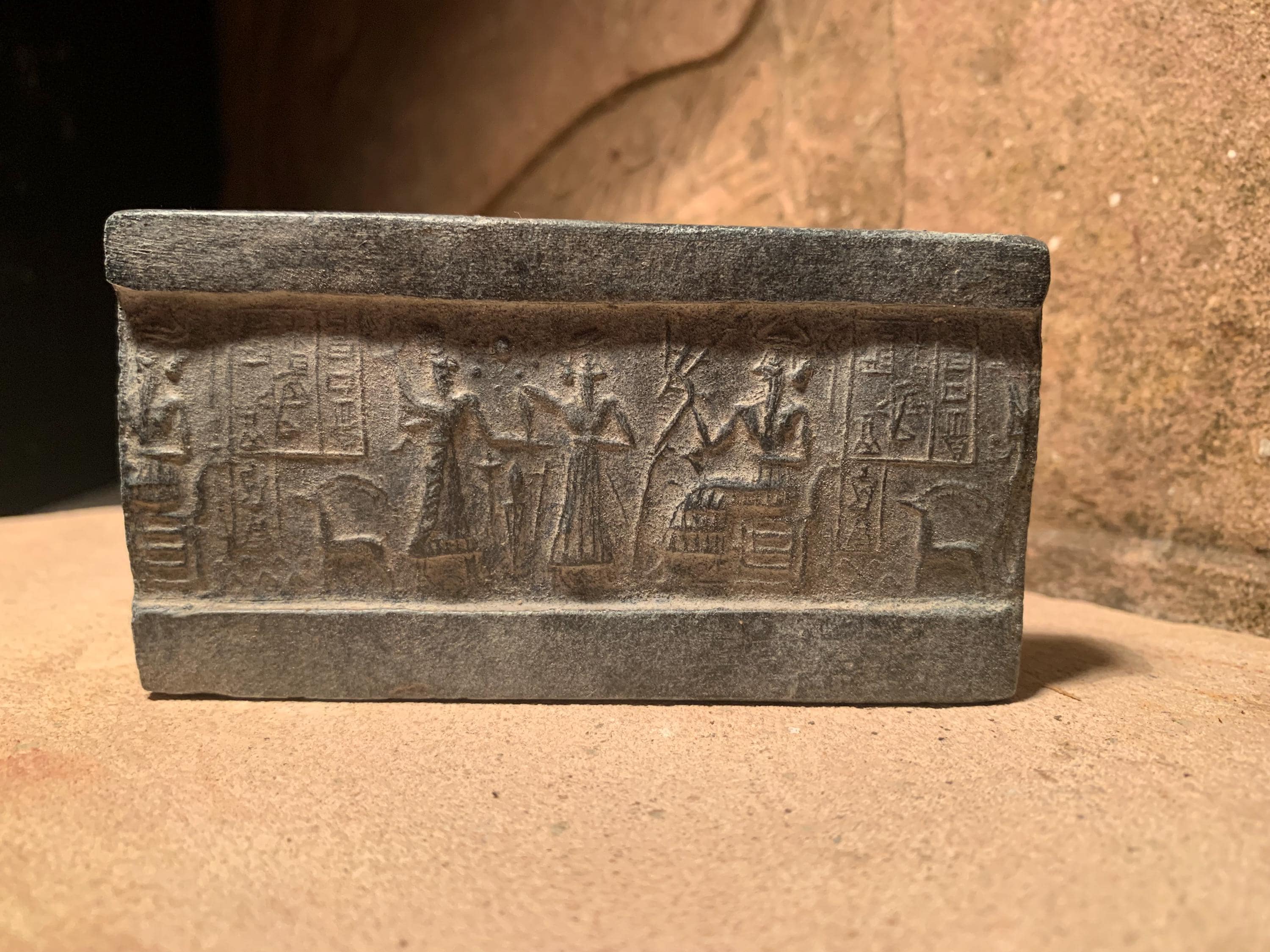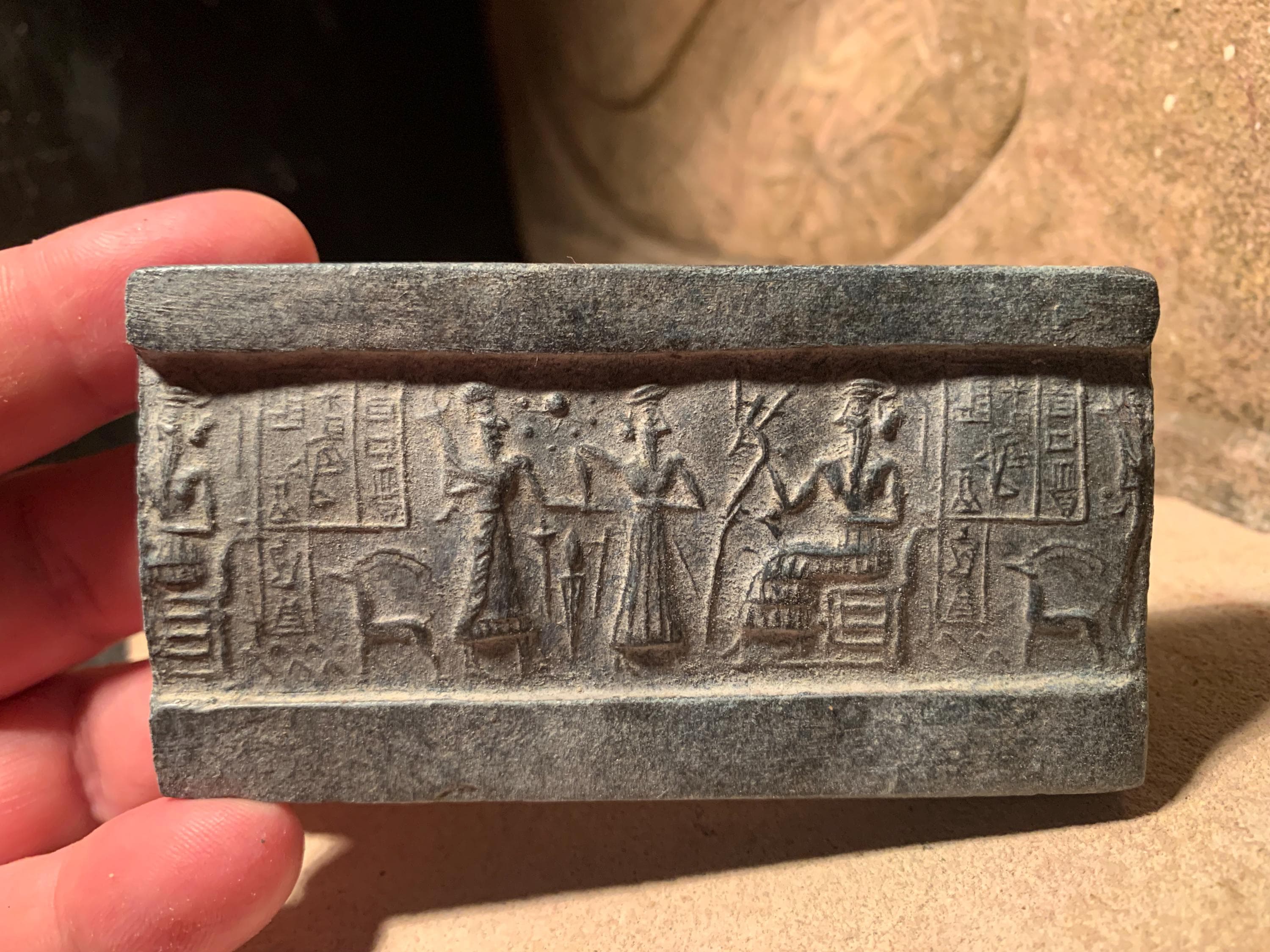 On offer here is a replica of one of the most well known and controversial of all Sumerian cylinder seal impressions.