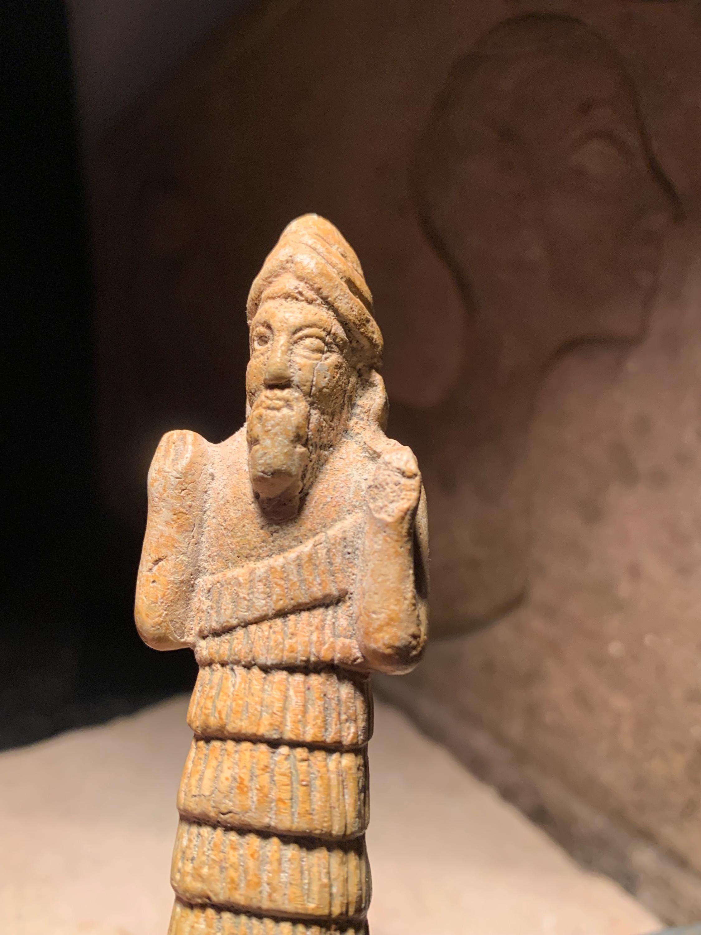 The statuette of the Sumerian god Enki is a good example of the type of votive sculpture used by the noble populace who lived in cities such as Ur, Eridu, Tello, Nippur and Susa. Enki emerged as a deity with great influence over the fertile crescent of the Mesopotamian lands. Enki is a god with many attributes and points of interest. Some are listed below :-