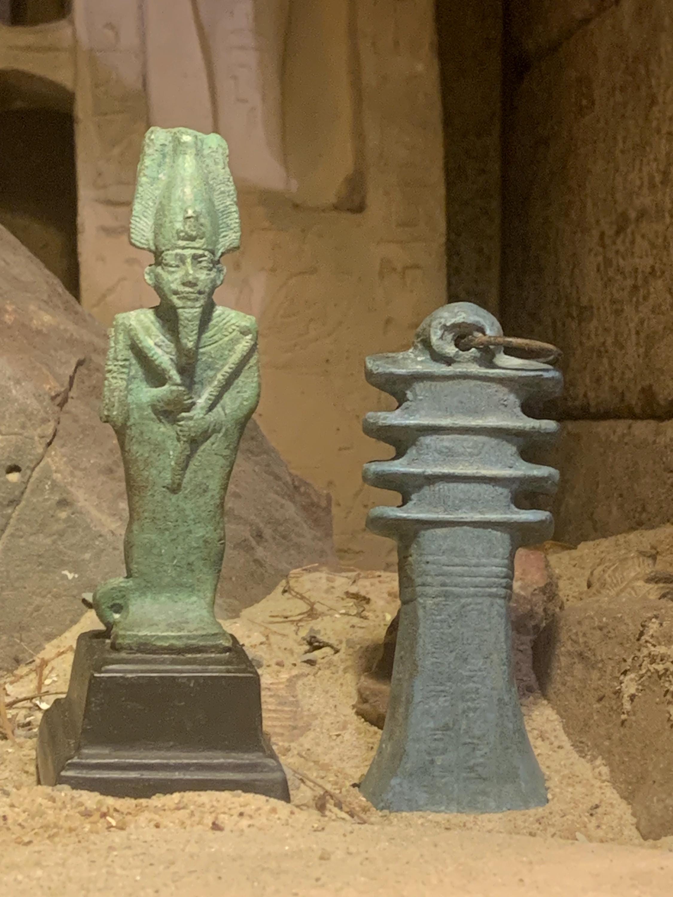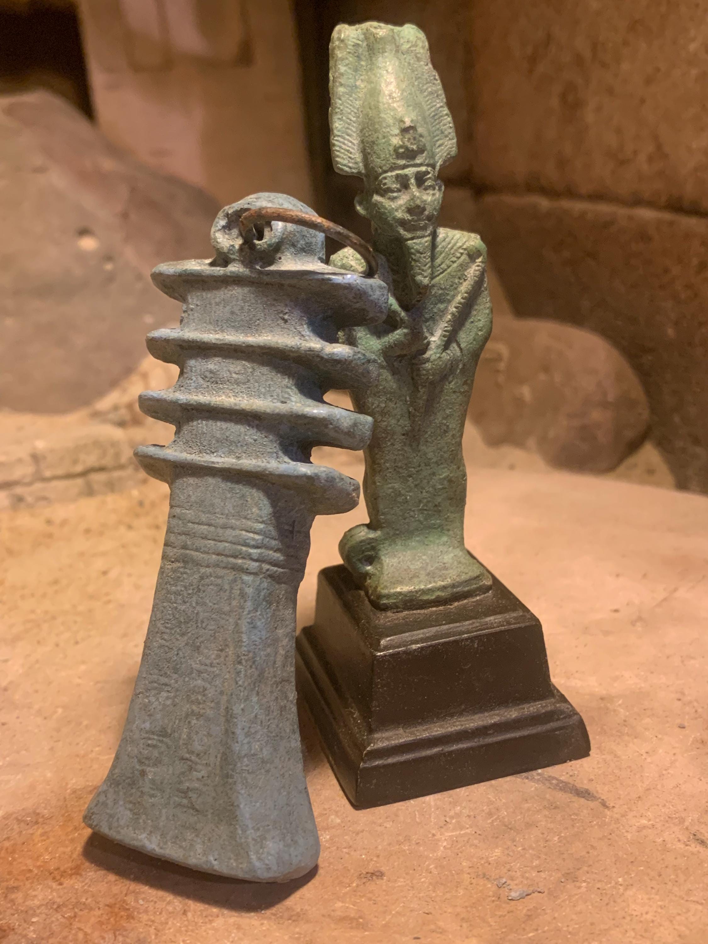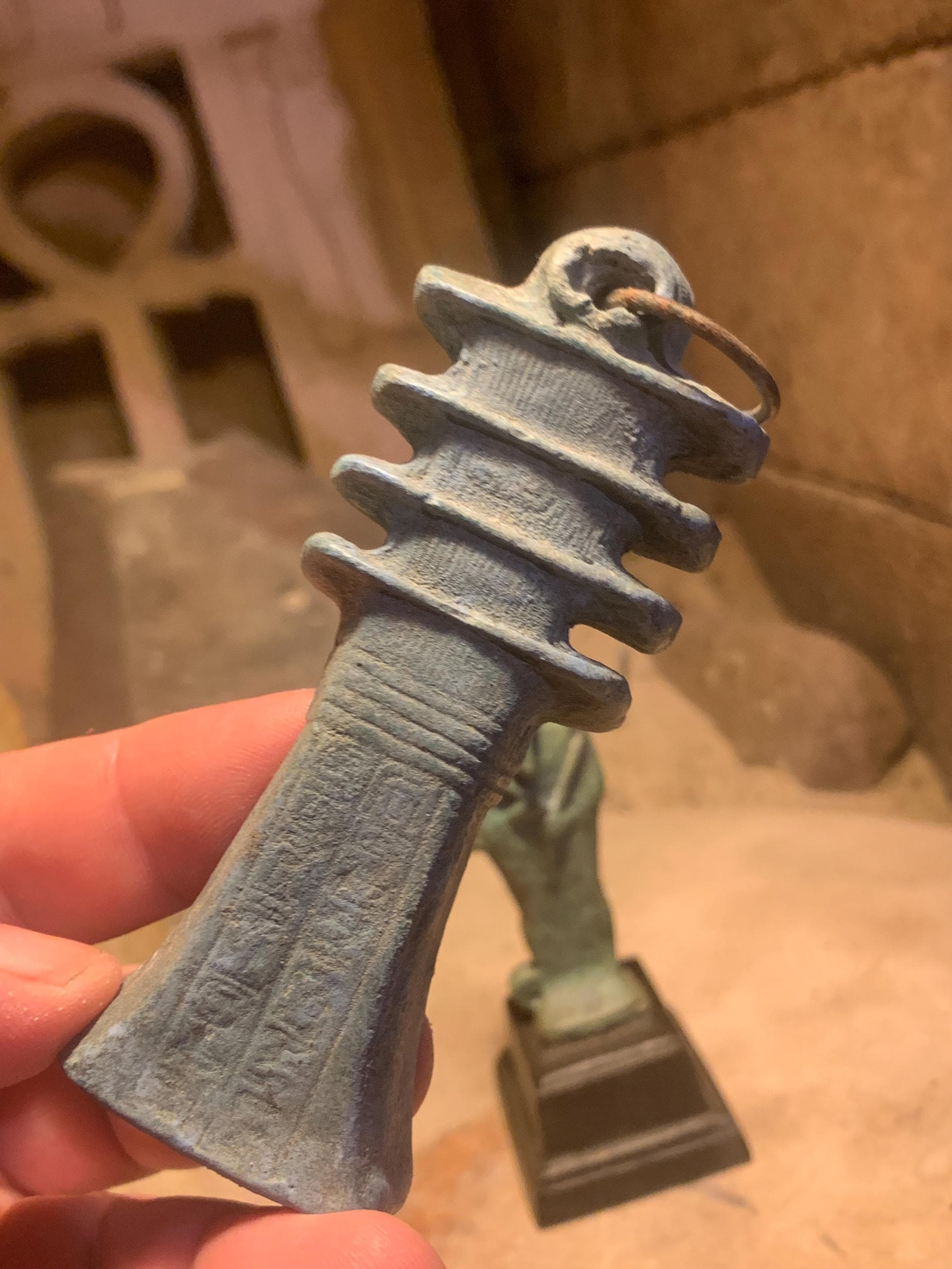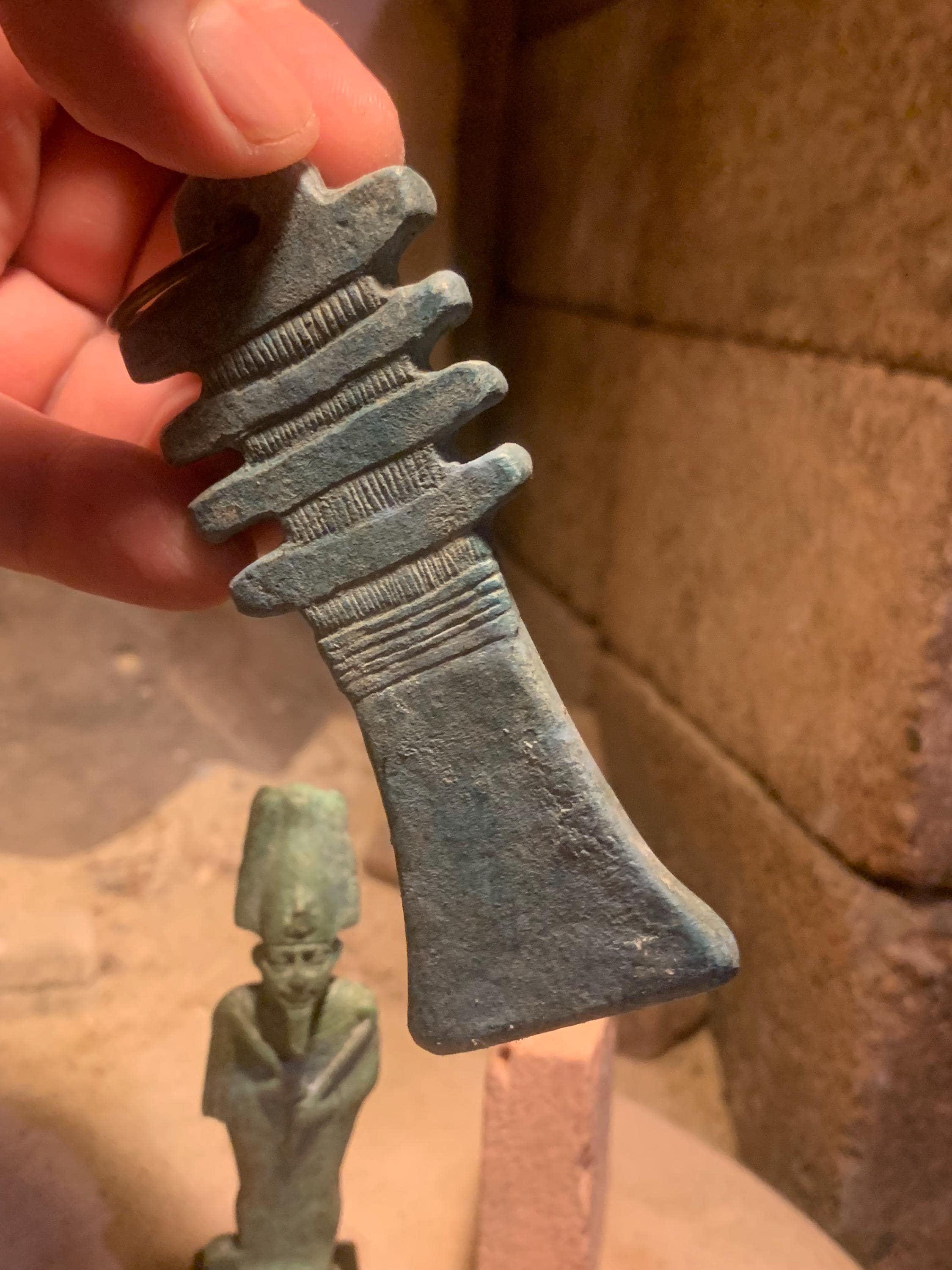 The Djed pillar is the principal amulet of Osiris and was said to invoke strength and stability in the life of the owner. A common amulet used during the preparation of a wrapped mummy with various versions of the Djed pillar hidden amidst the wrappings.