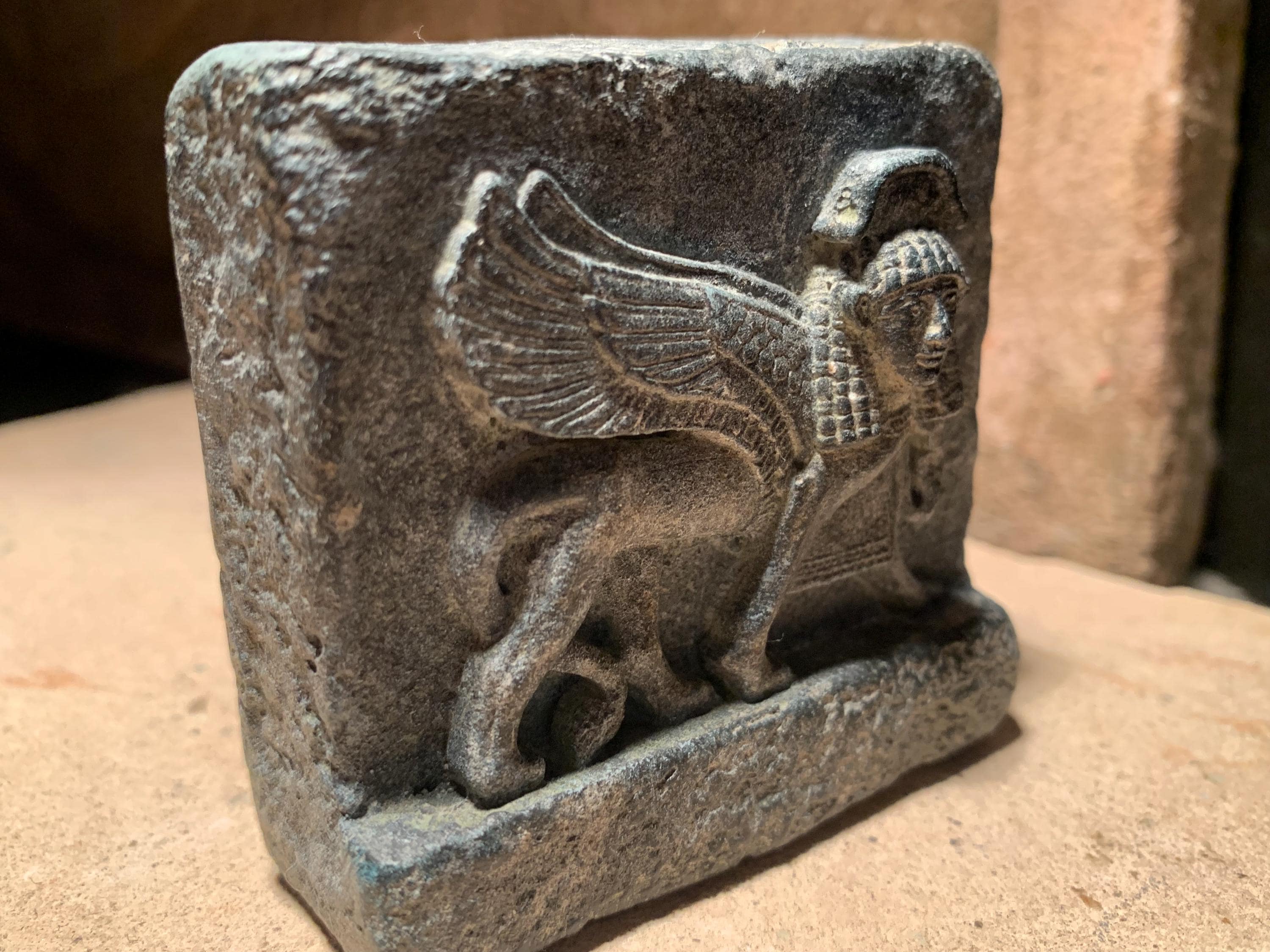 On offer here is another exclusive format design of one of the striding sphinxes of Nimrud - the once great city of the Assyrian empire.