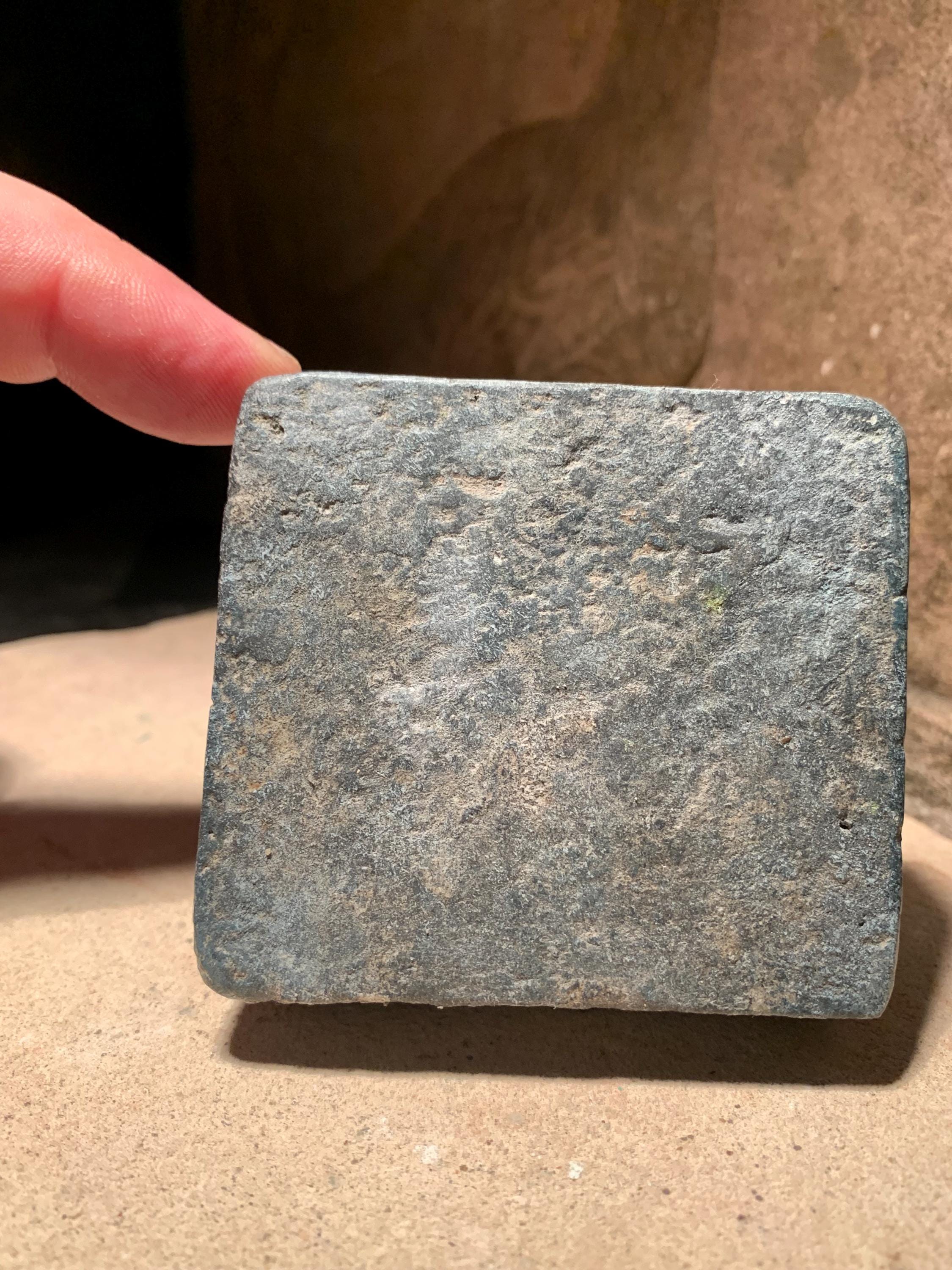 Made of a limestone and quartzite composition stone it has an aged patina and texture.