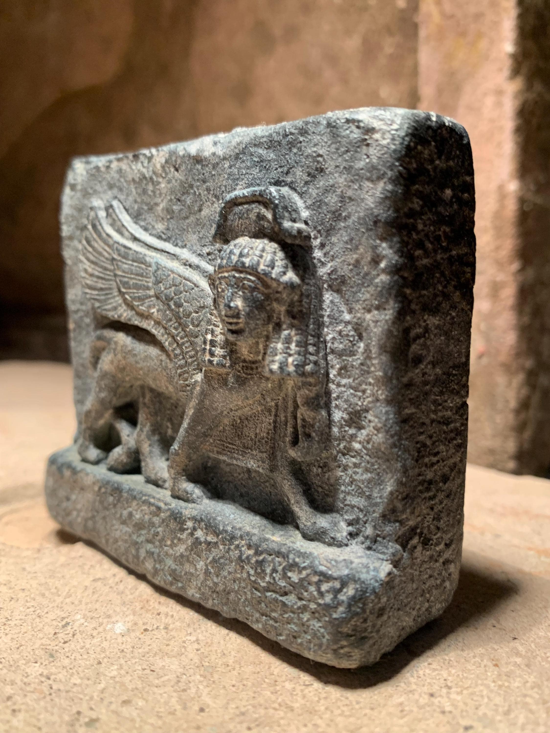 It shares a connection to the svelte form of the Egyptian god Tutu but the wings it possesses are more associated with the iconic winged bulls and lions native to Mesopotamian art.