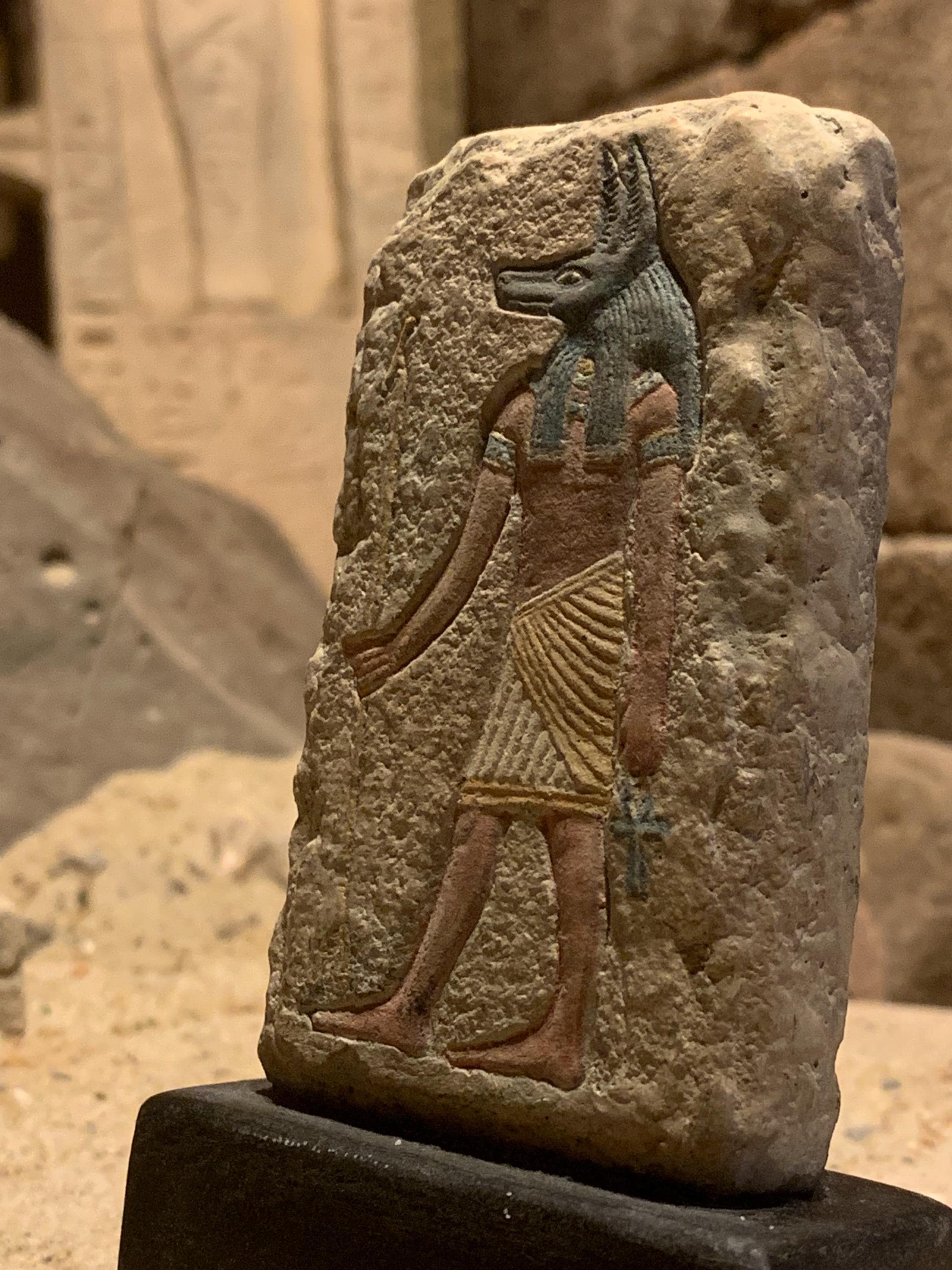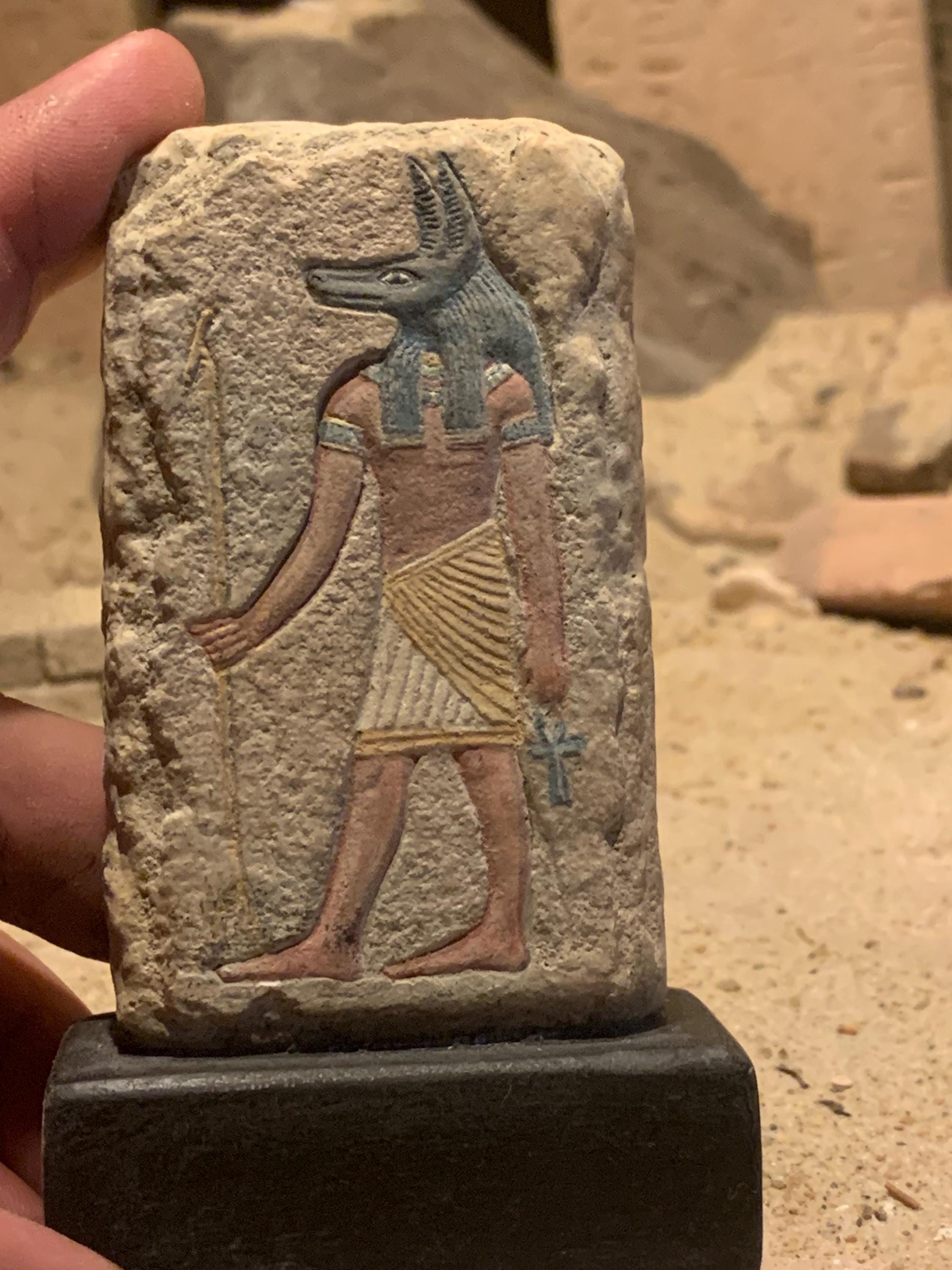Anubis or Anpu as he was known in the Egyptian tongue, made the 1st mummy (Osiris / Assar) and was forever to be associated with mummification for all periods of Ancient Egyptian history. This small representation depicts Anubis holding a WAS/WASS sceptre which signifies dominion and mastery of his realm.