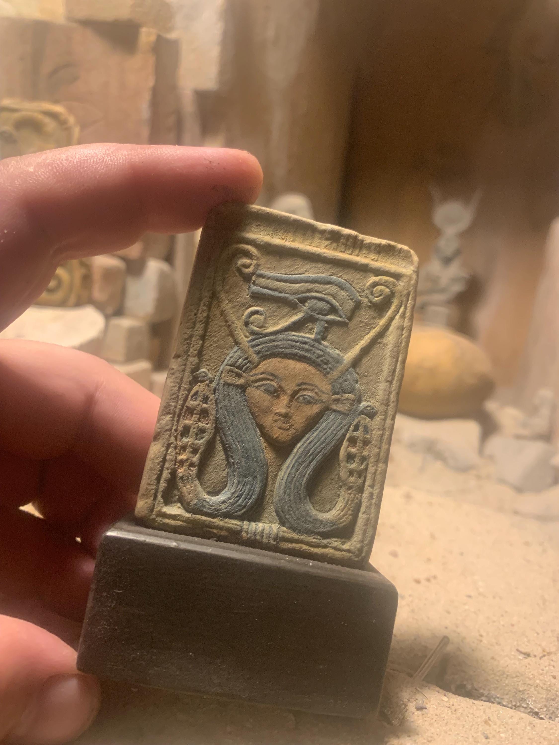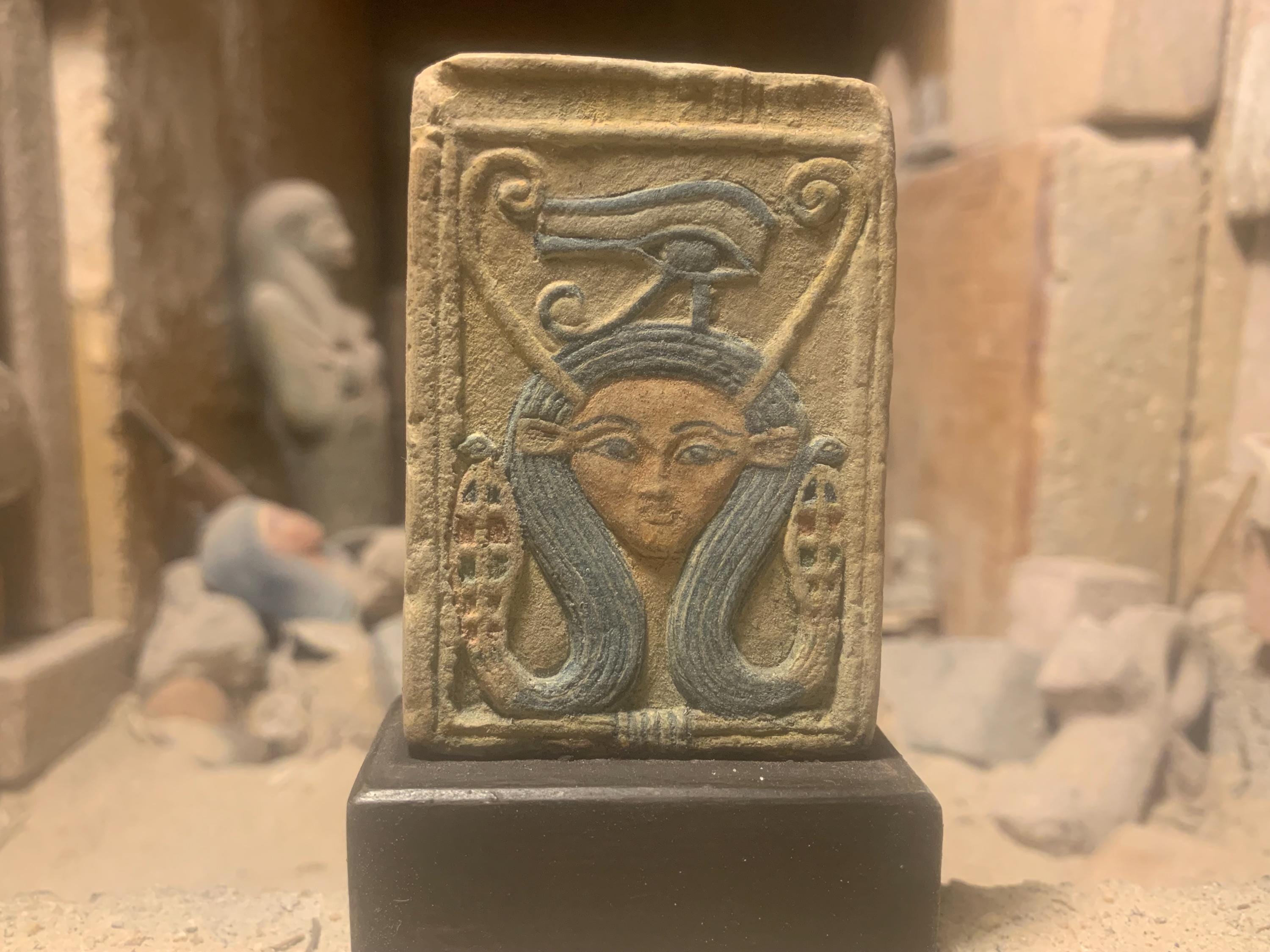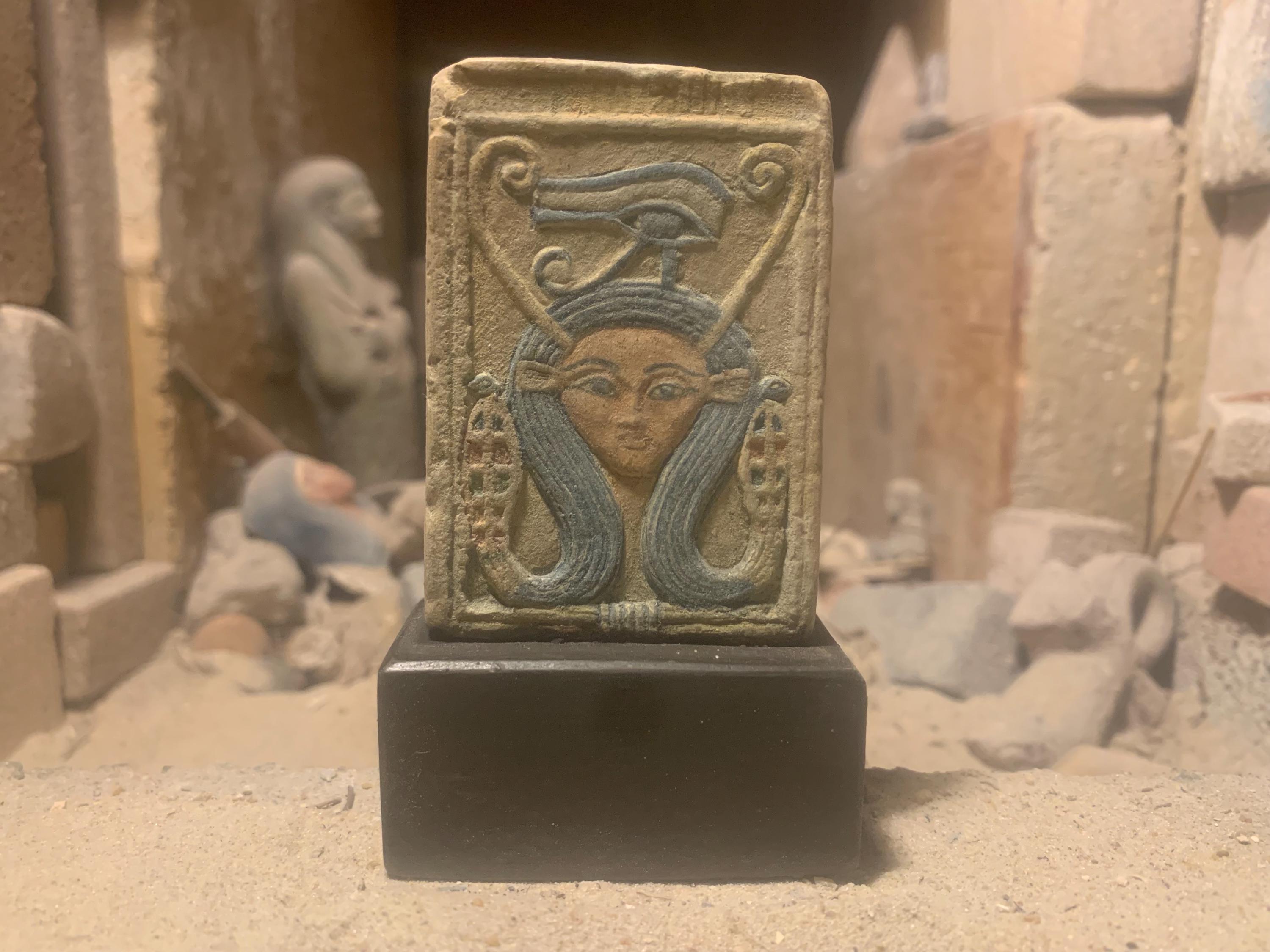 This carving replica features an unusual version of the original goddess of love and motherhood..... Hathor / Het-Hur.