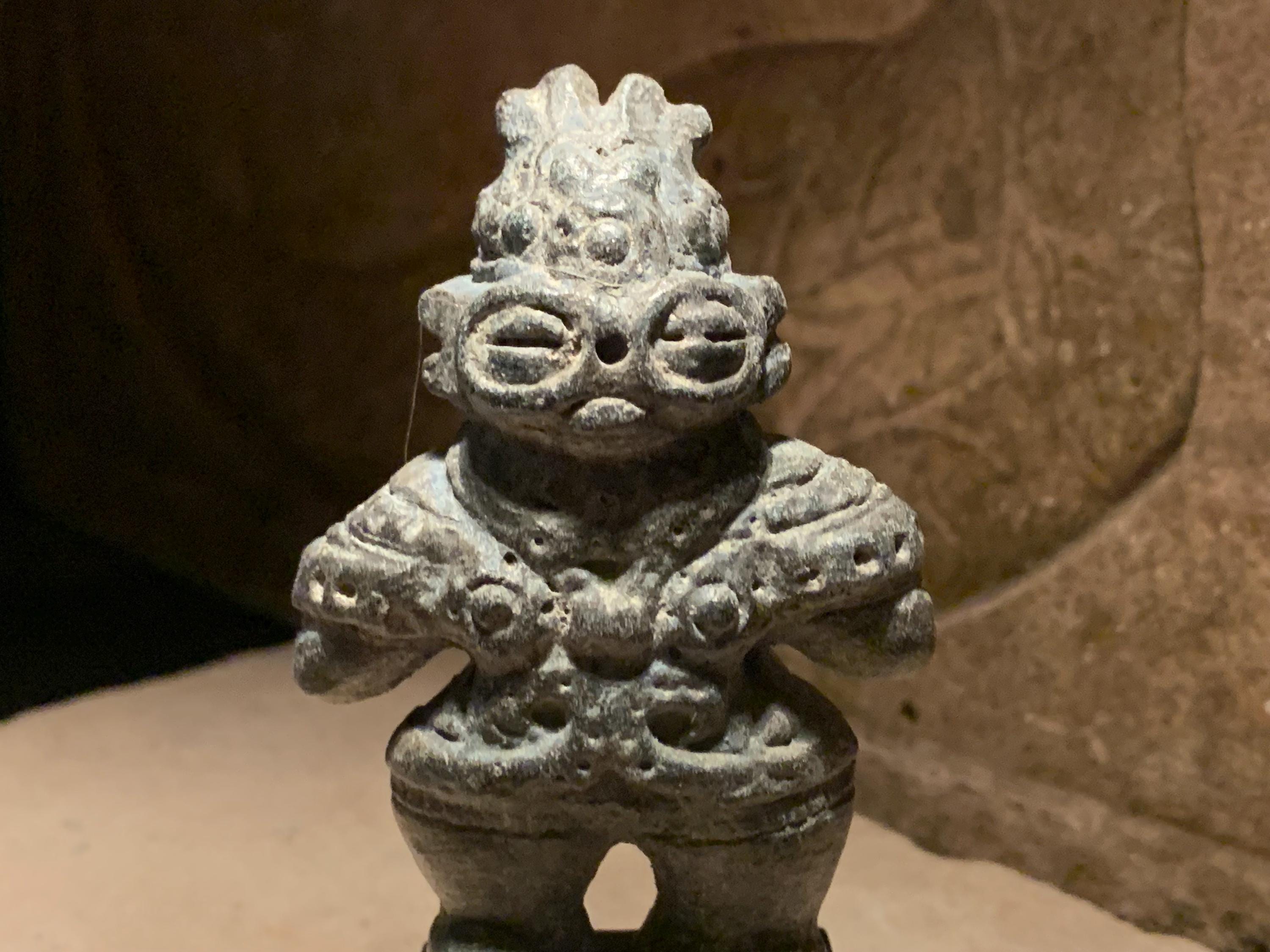 This is a replica of an ancient Japanese Dogu statue which were prominent during the Jomon period (14,000 - 300 bce). Earliest examples are crude forms comparable to the so called 'Venus statues' of neolithic Europe.