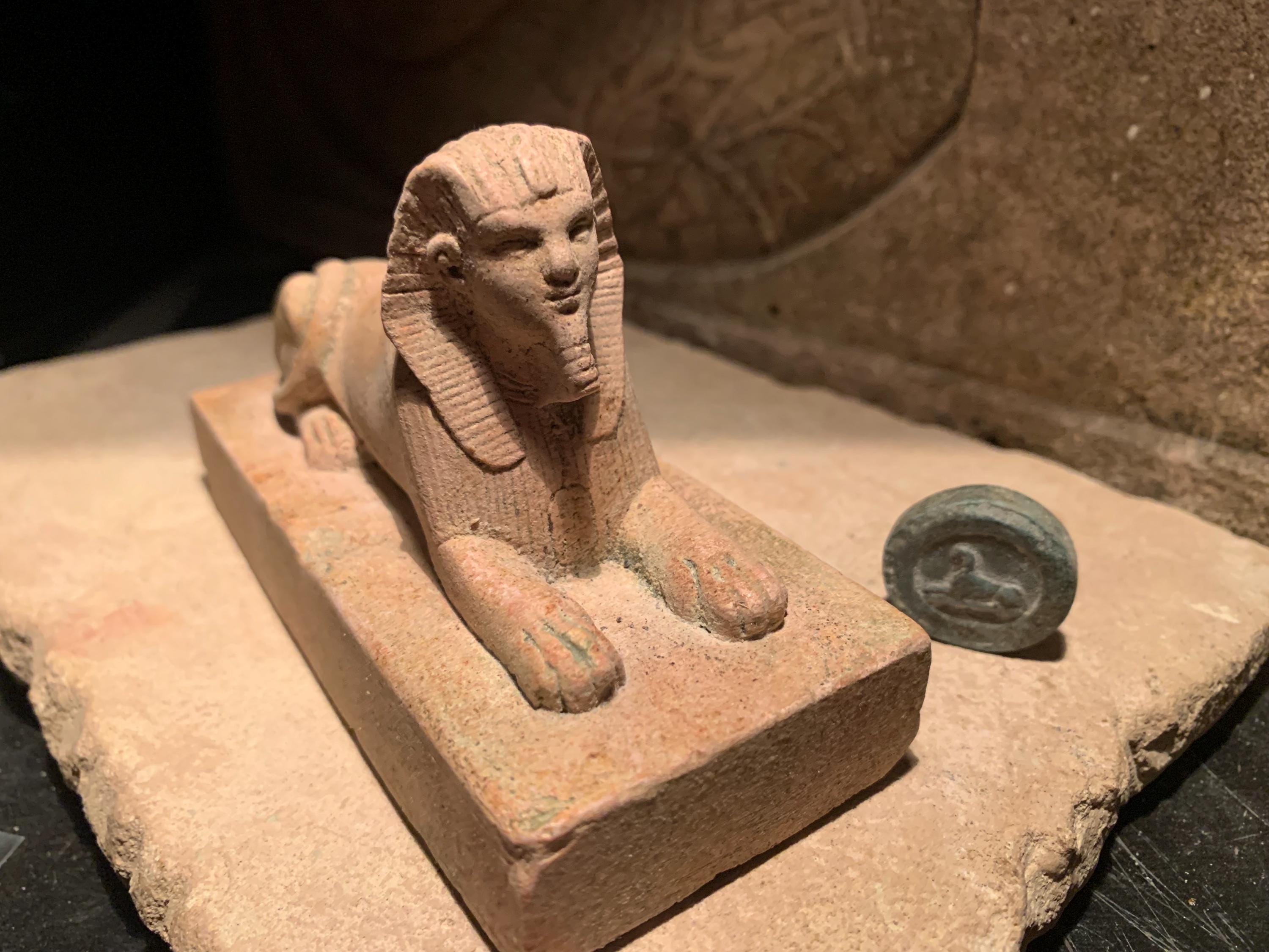 Egyptian Sphinx statue & amulet