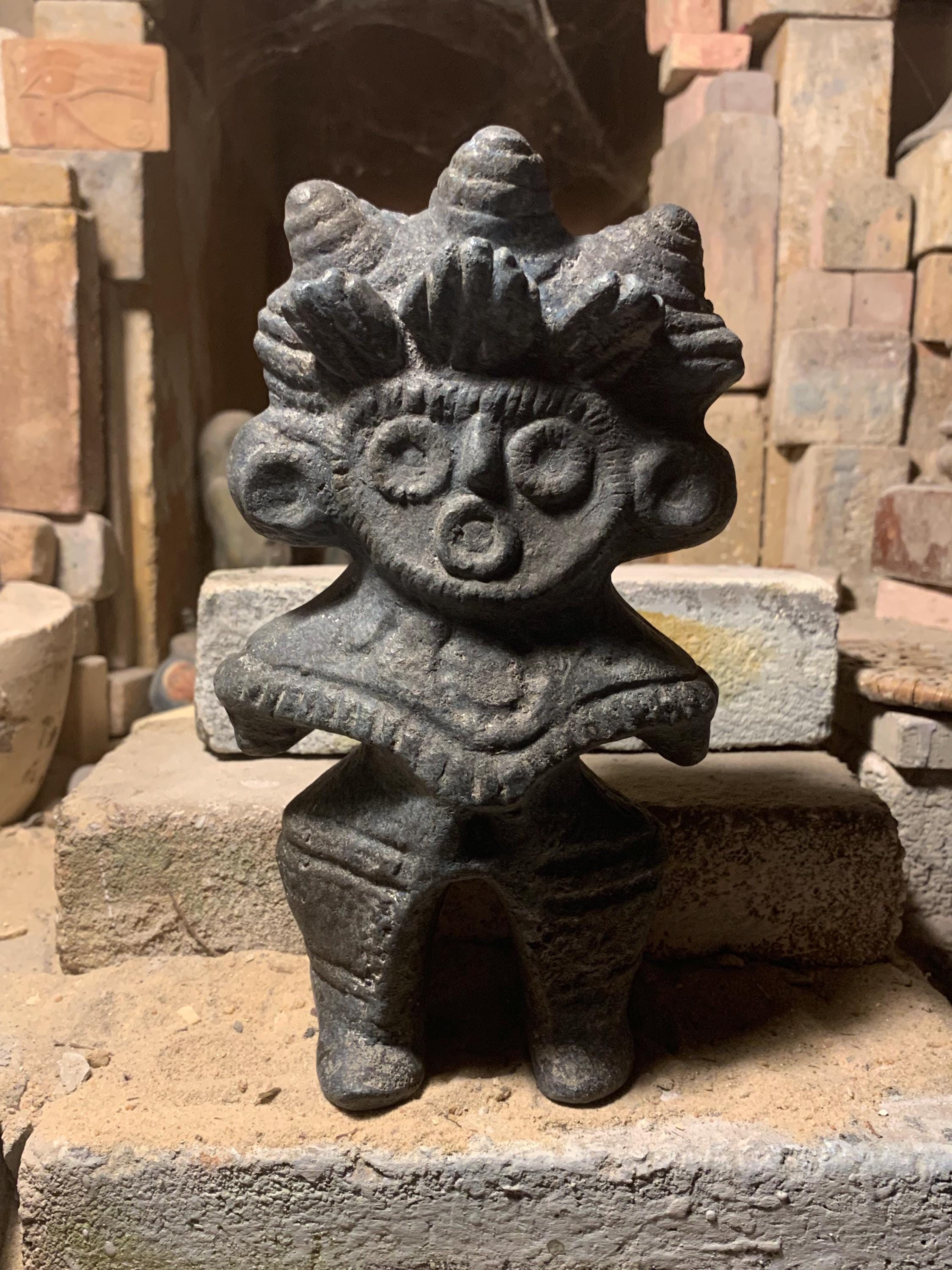 Returning this week for the first time since 2020, a distinctive replica of an ancient Japanese Dogu statue. These statues were prominent during the Jomon period (14,000 - 300 B.C.E. Earliest examples are crude forms comparable to the so called 'Venus statues' of neolithic Europe however their evolution brought greater refinement and much more intrinsic detail.