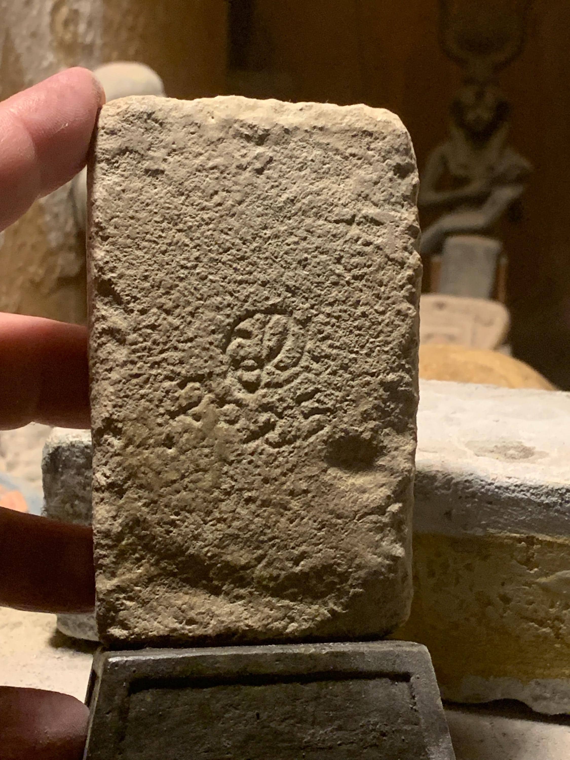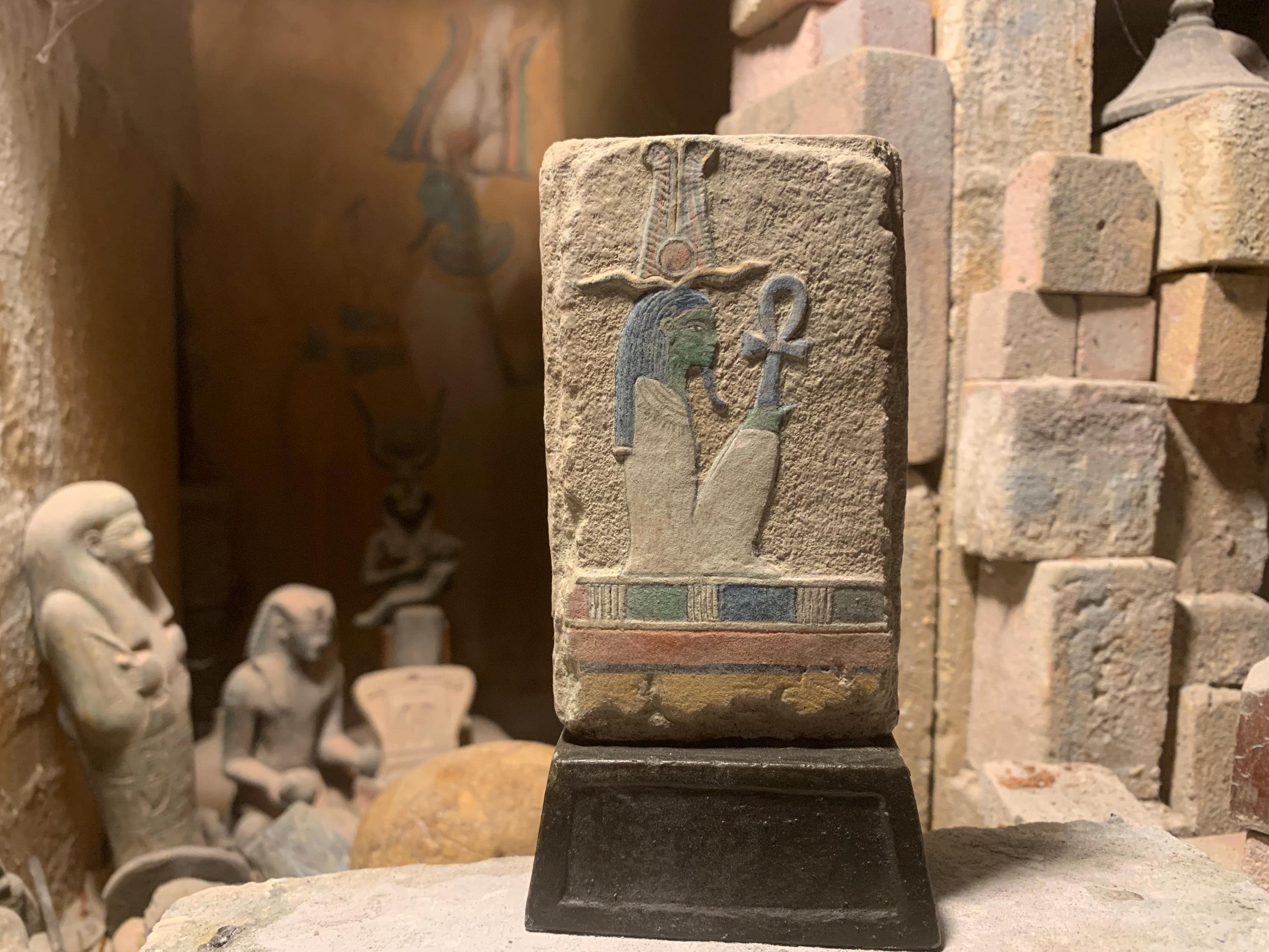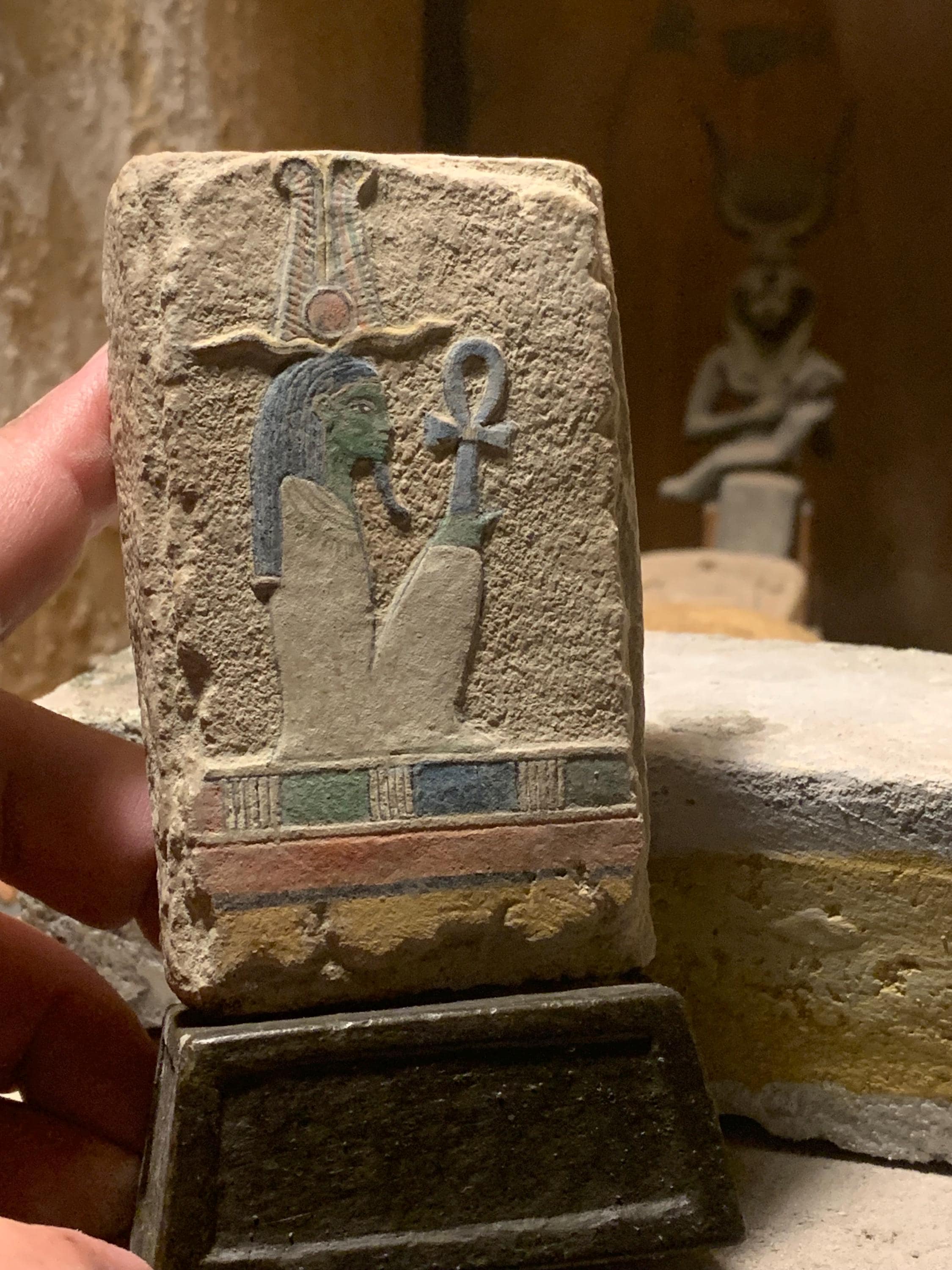 Made of a limestone and quartzite composition stone and hand painted in traditional ancient colours.