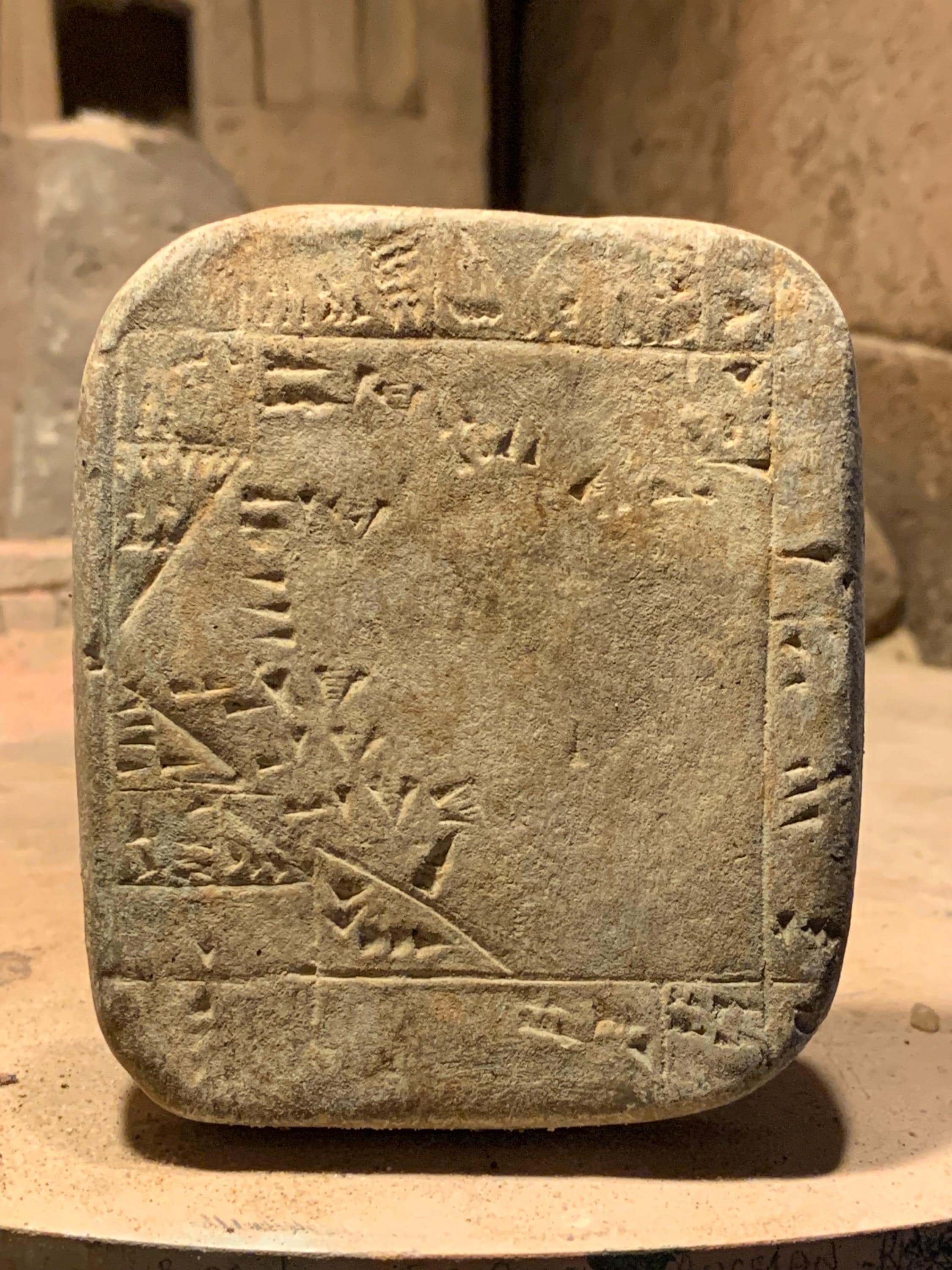 More than 30,000 tablets have been discovered at the site and most of them are administrative records or votive prayers. A special few are revealing in terms of the mathematical minds underscoring the development of the early cities and this tablet certainly belongs in this category.