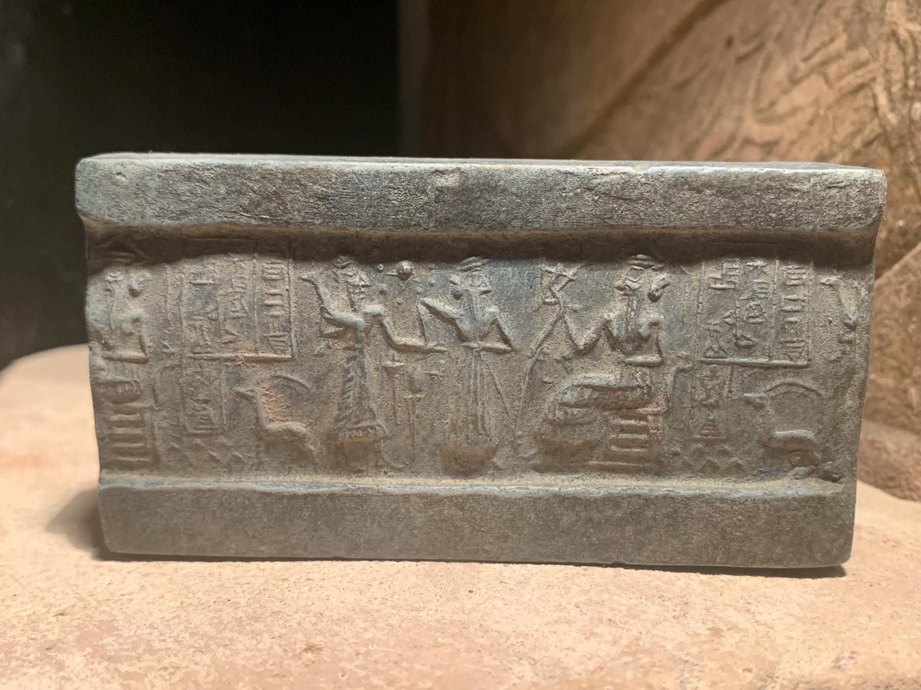 On offer here is a replica of one of the most well known and controversial of all Sumerian cylinder seal impressions.