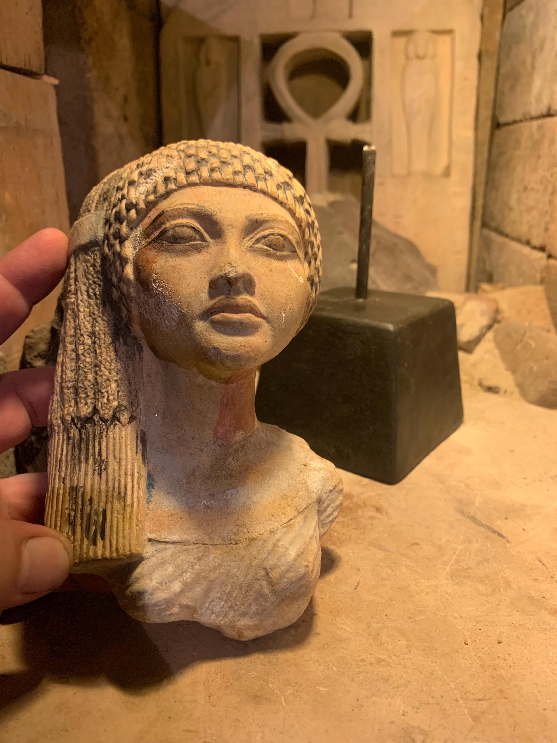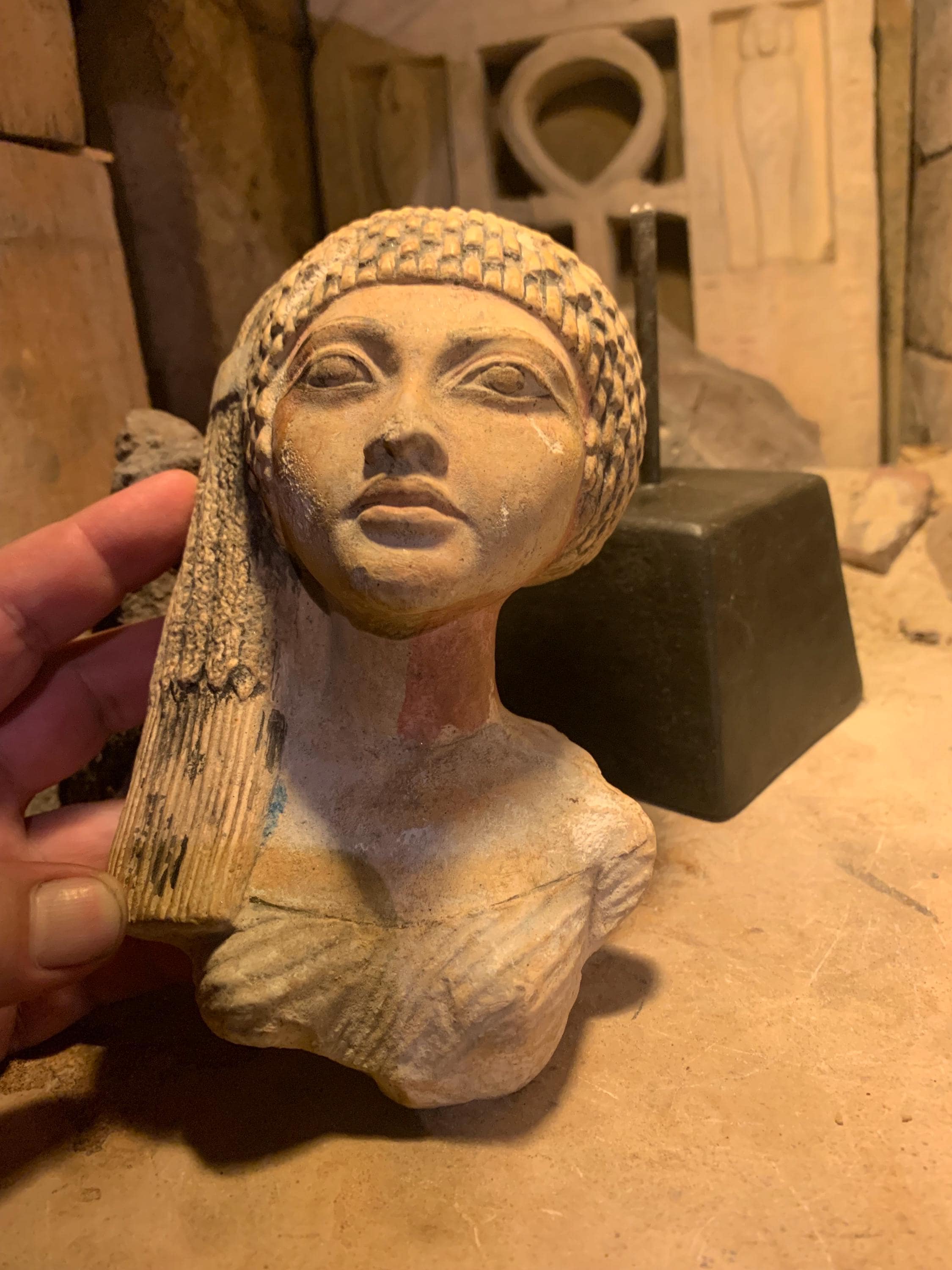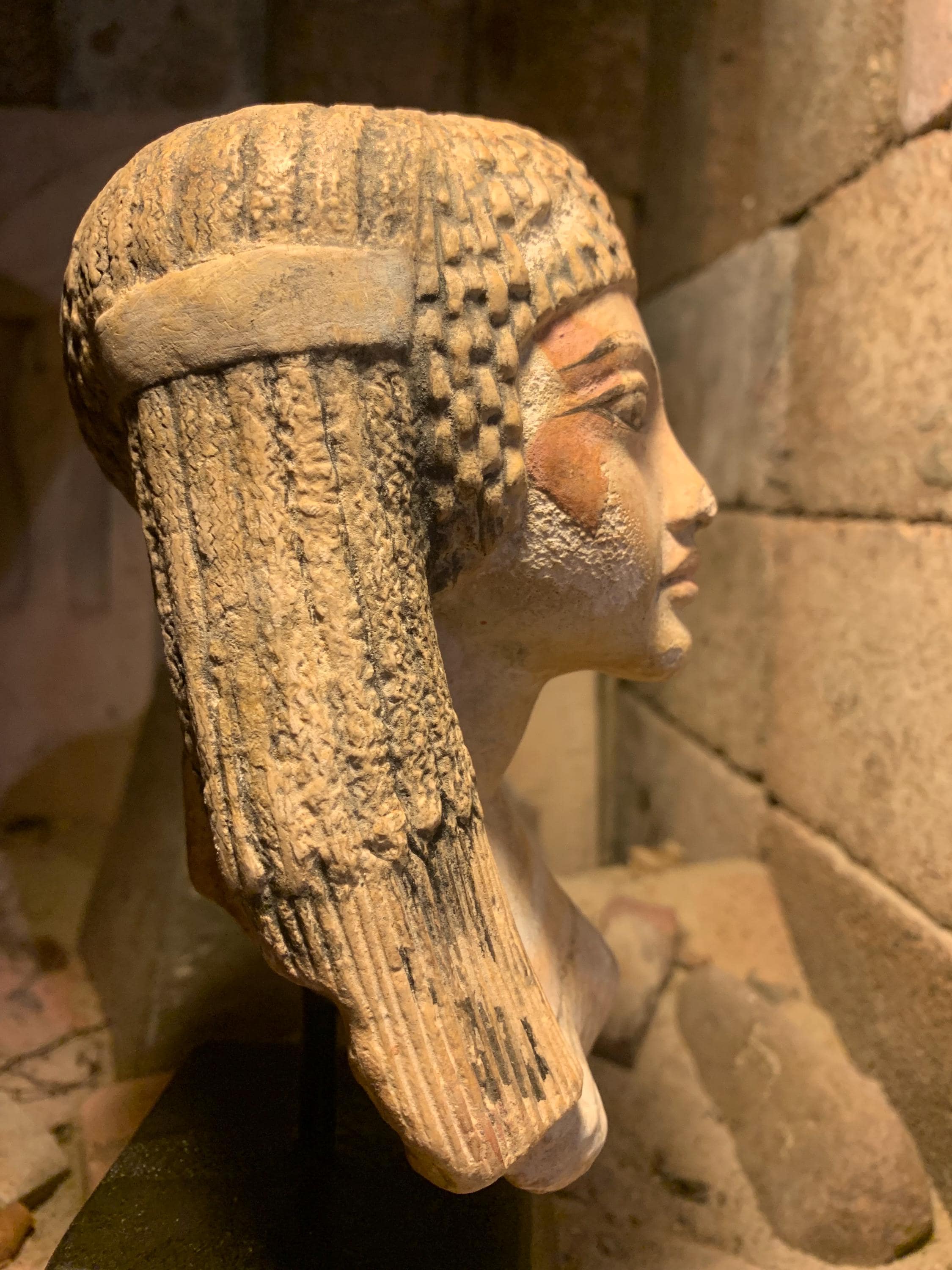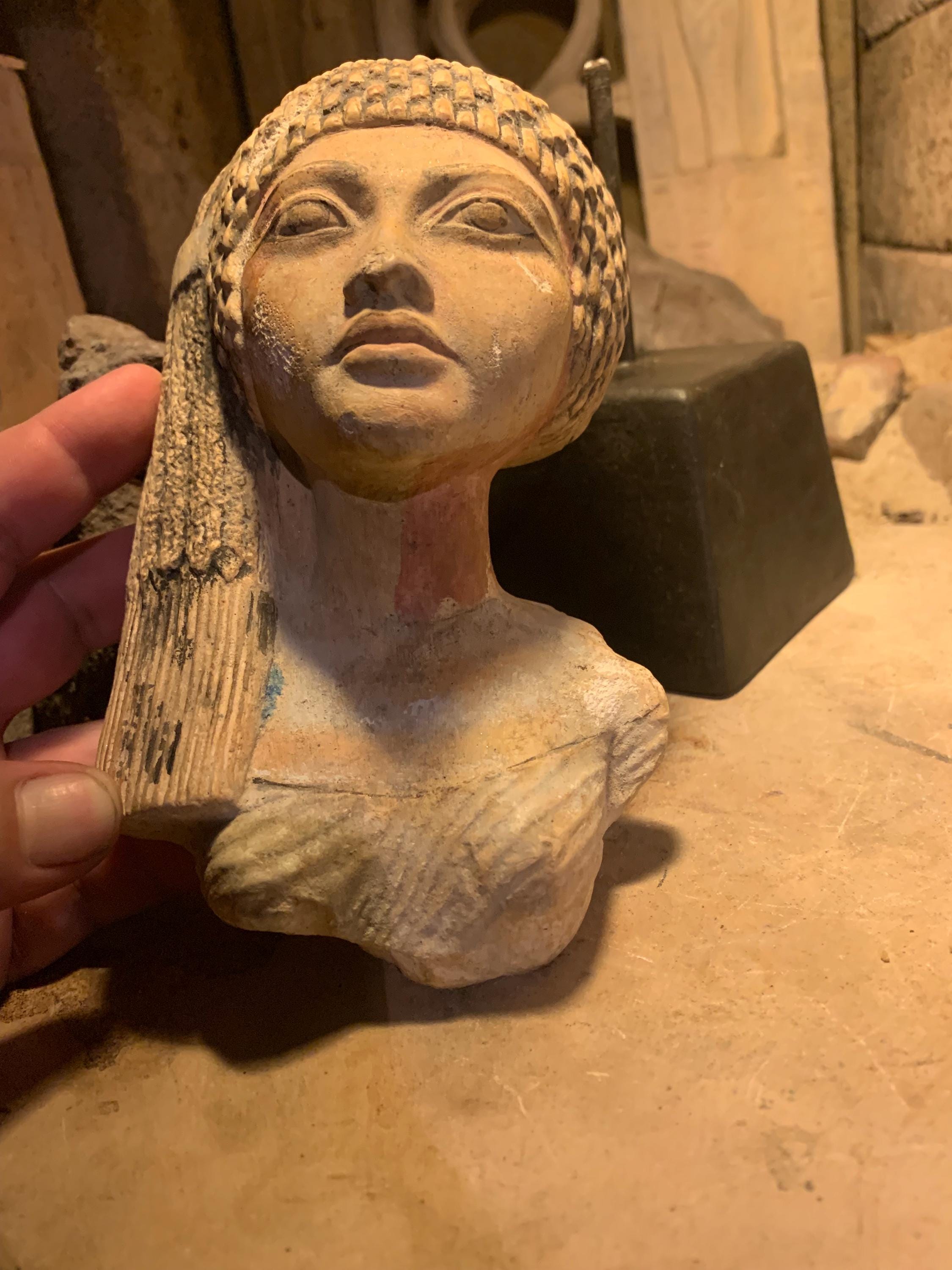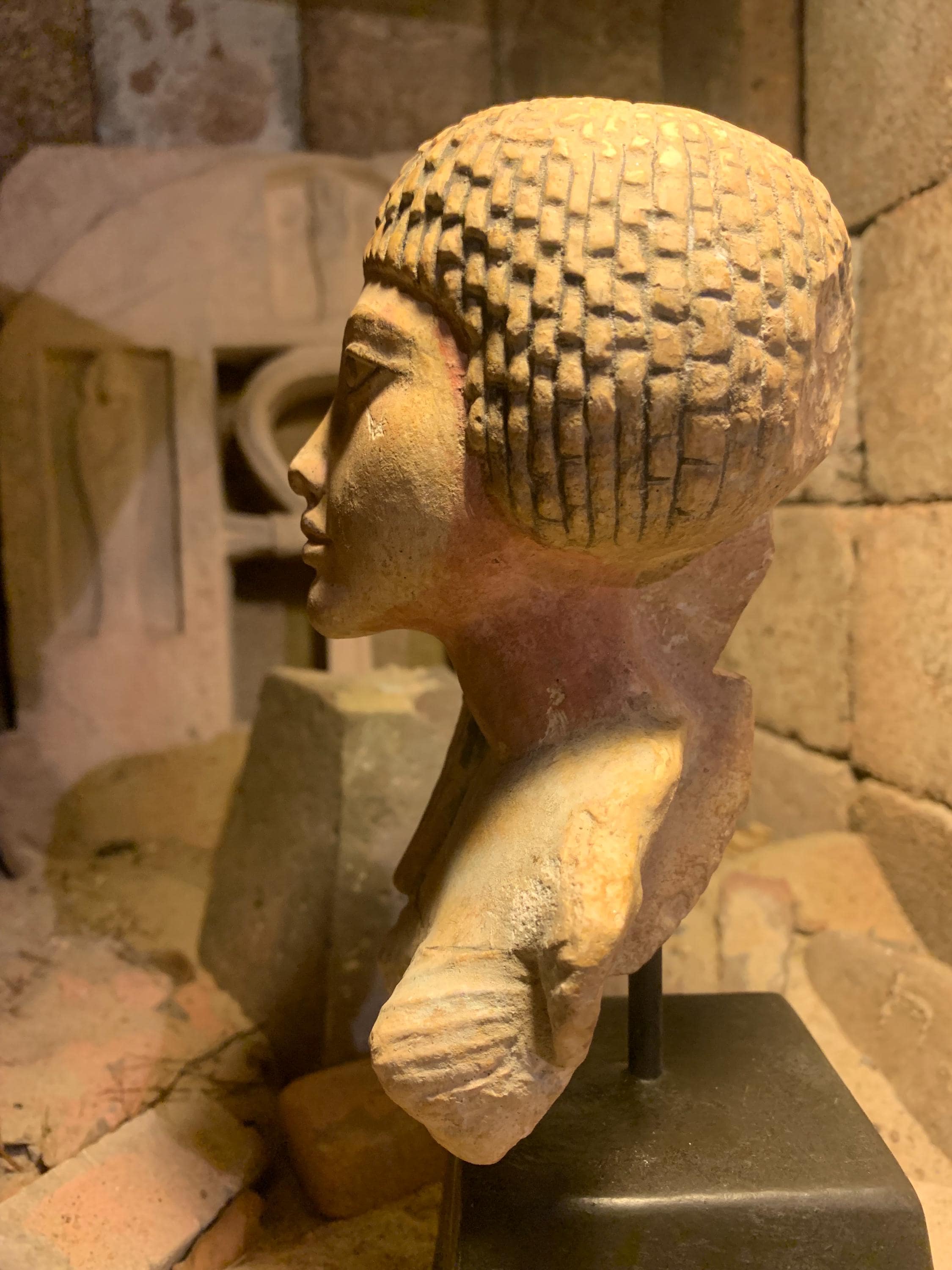 This statue is an ancient masterpiece. Her cherub like features and heart shaped face have made this piece famous. I have carefully recreated her to reveal the subtle remaining pigments that cling to the original fragment and this is a time consuming method but the result is ruined beauty.