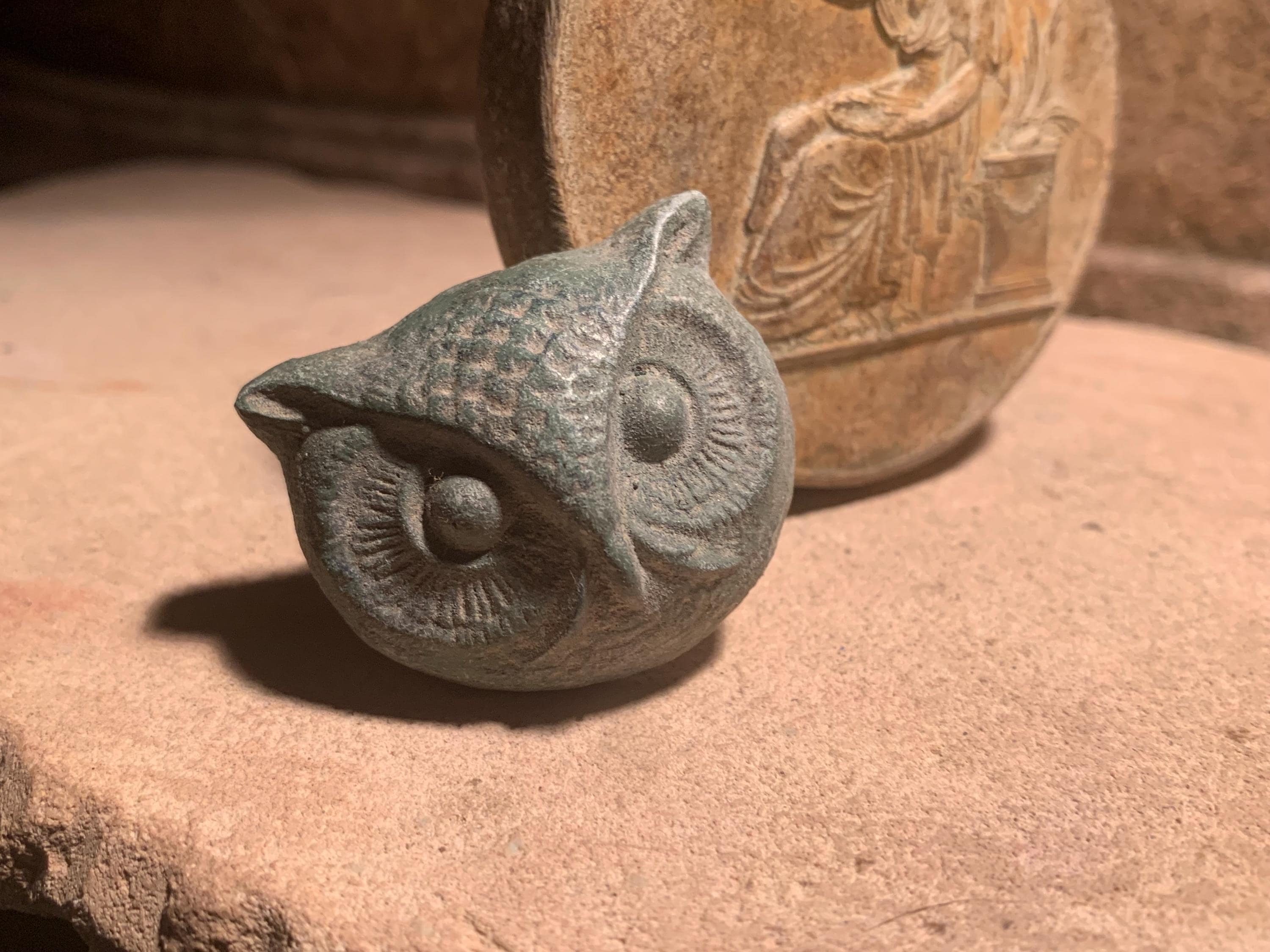 The Goddess Athena seated portrait & owl mascot amulets