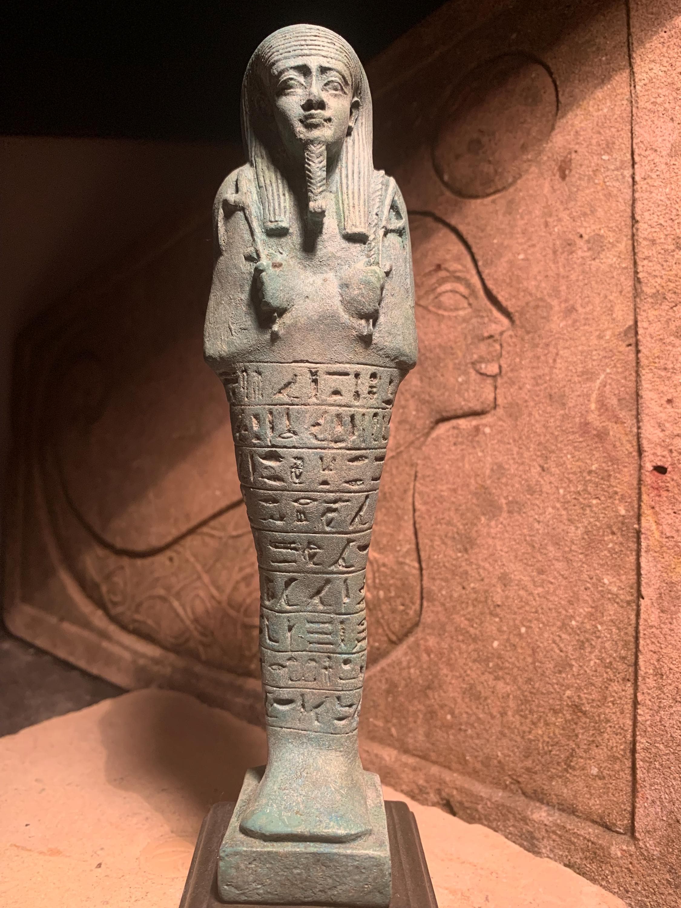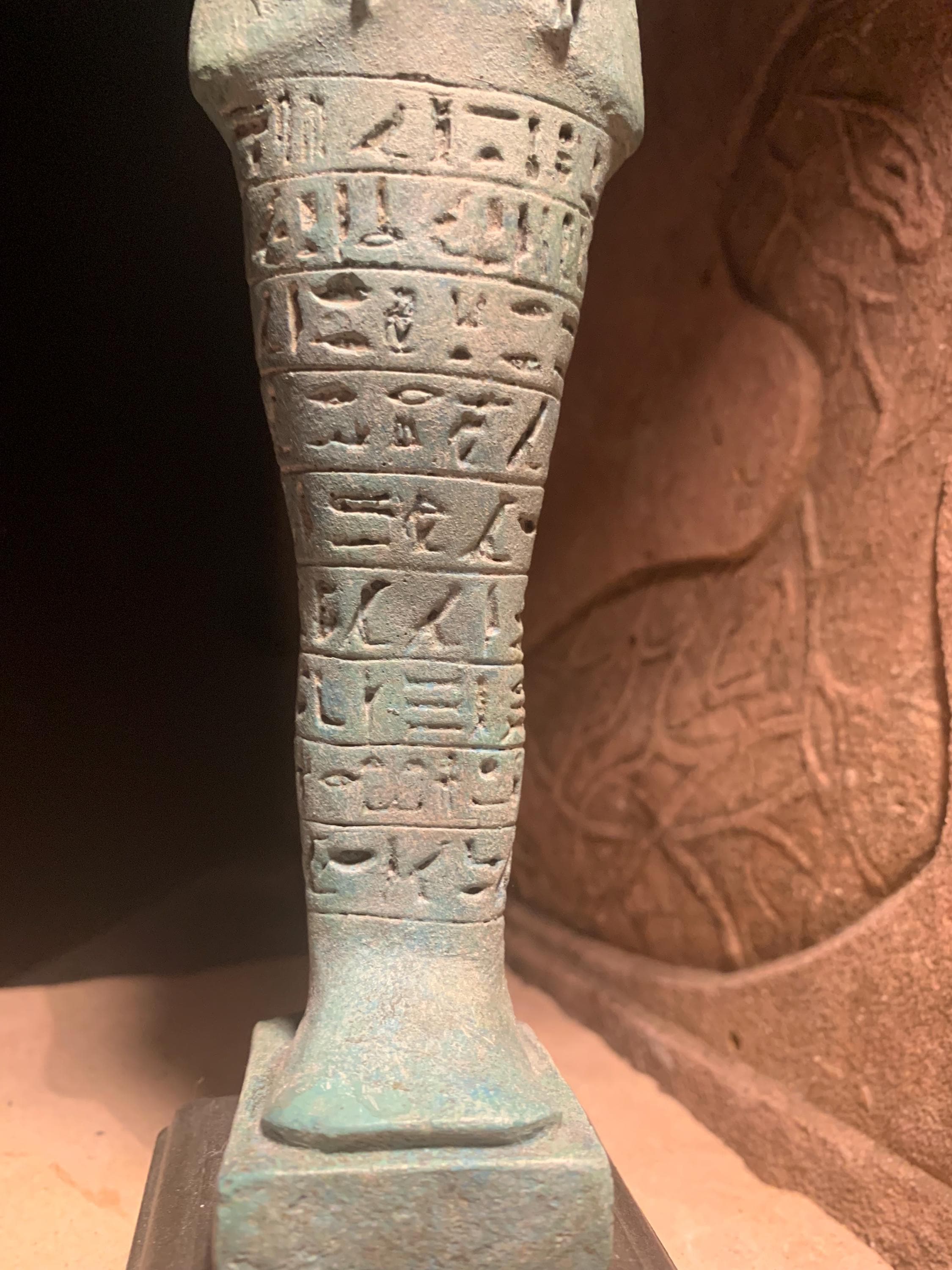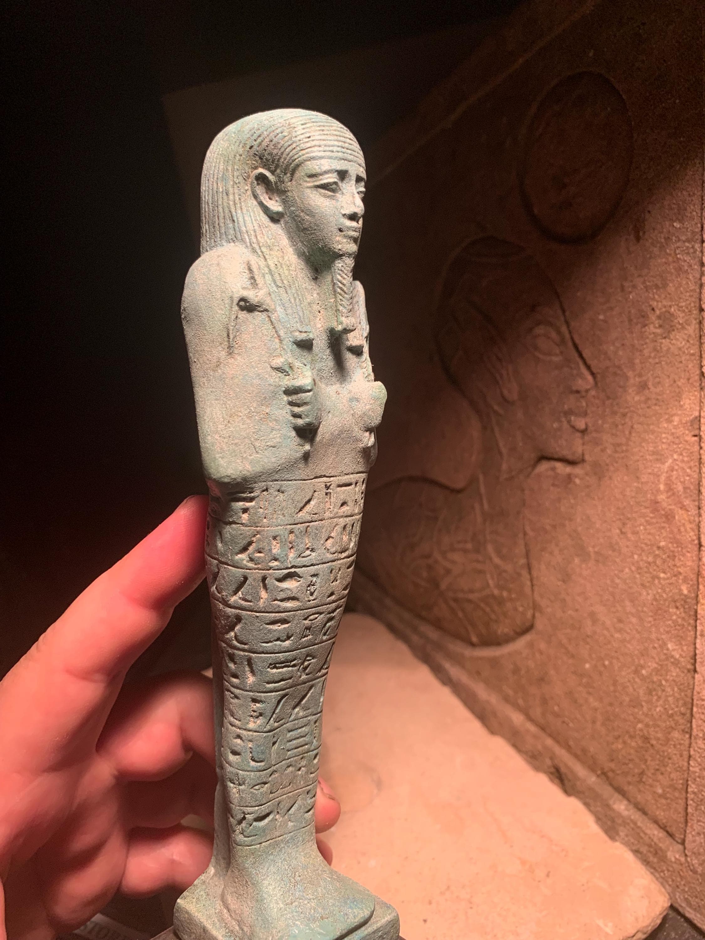 On offer here is a very fine Egyptian ushabti replica with fine details and body form. The original figure dates from the 26th dynasty during the reign of Psamtik, a time when ushabti figures were made to a very high standard.