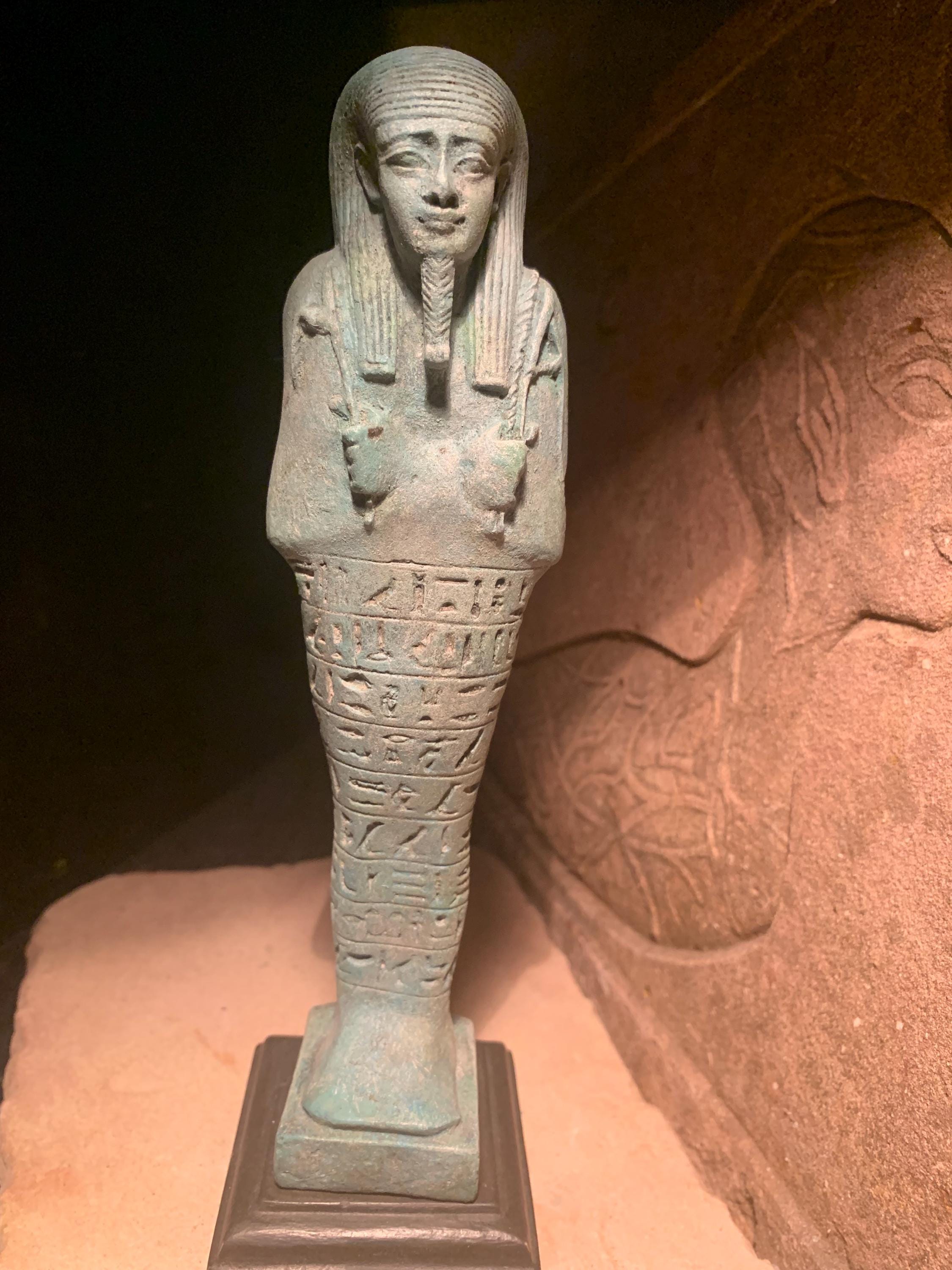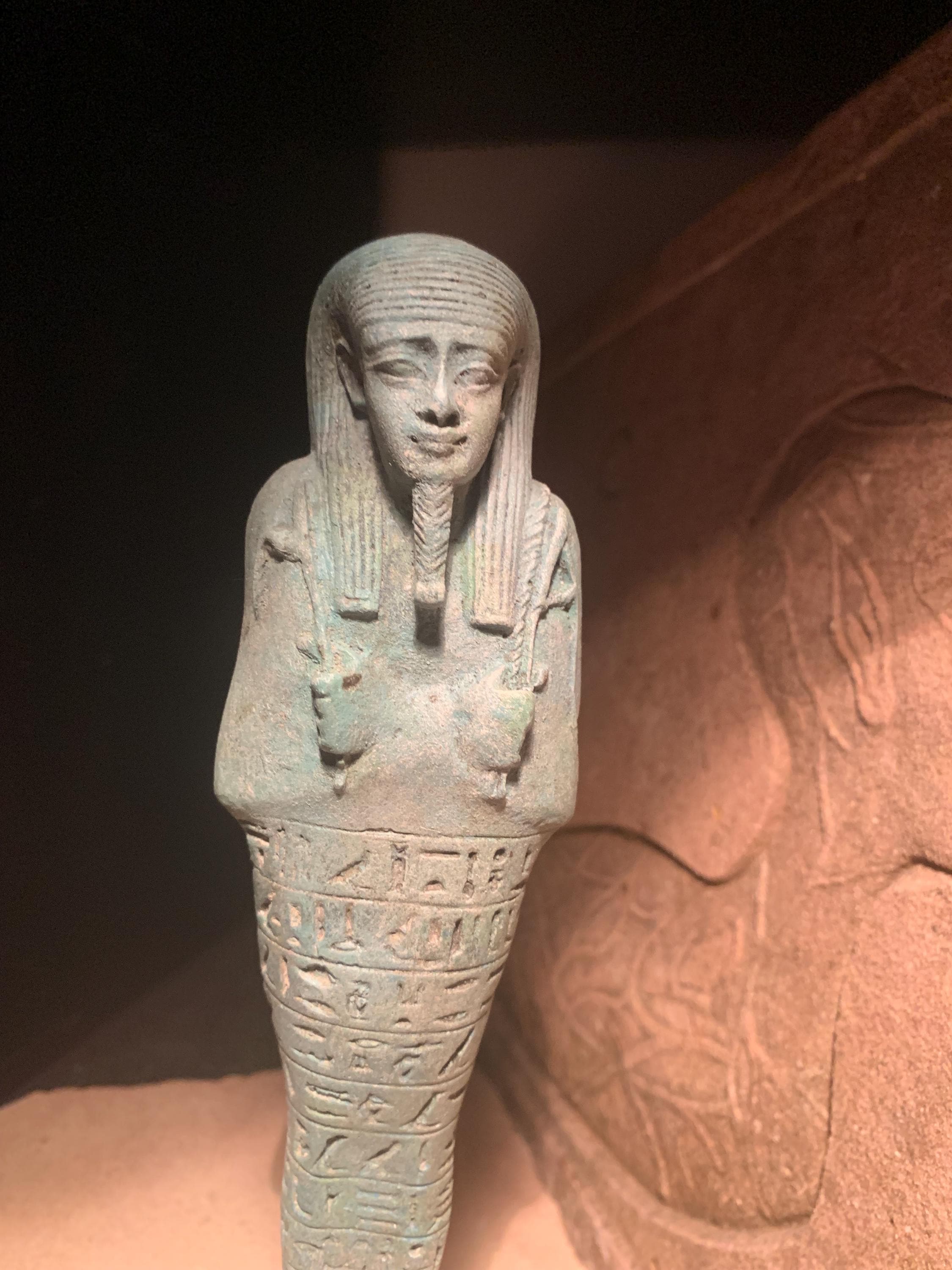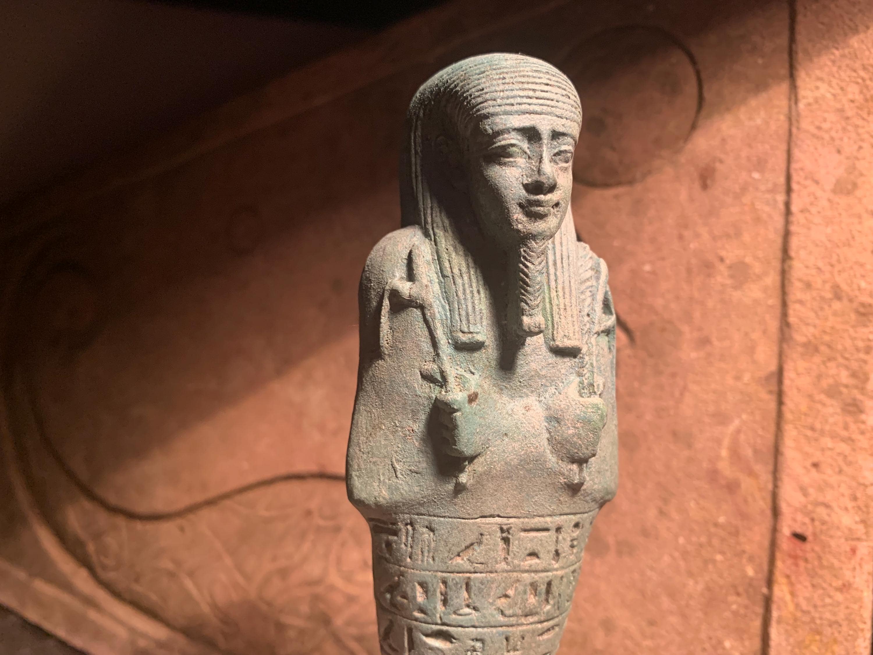 On offer here is a very fine Egyptian ushabti replica with fine details and body form. The original figure dates from the 26th dynasty during the reign of Psamtik, a time when ushabti figures were made to a very high standard.