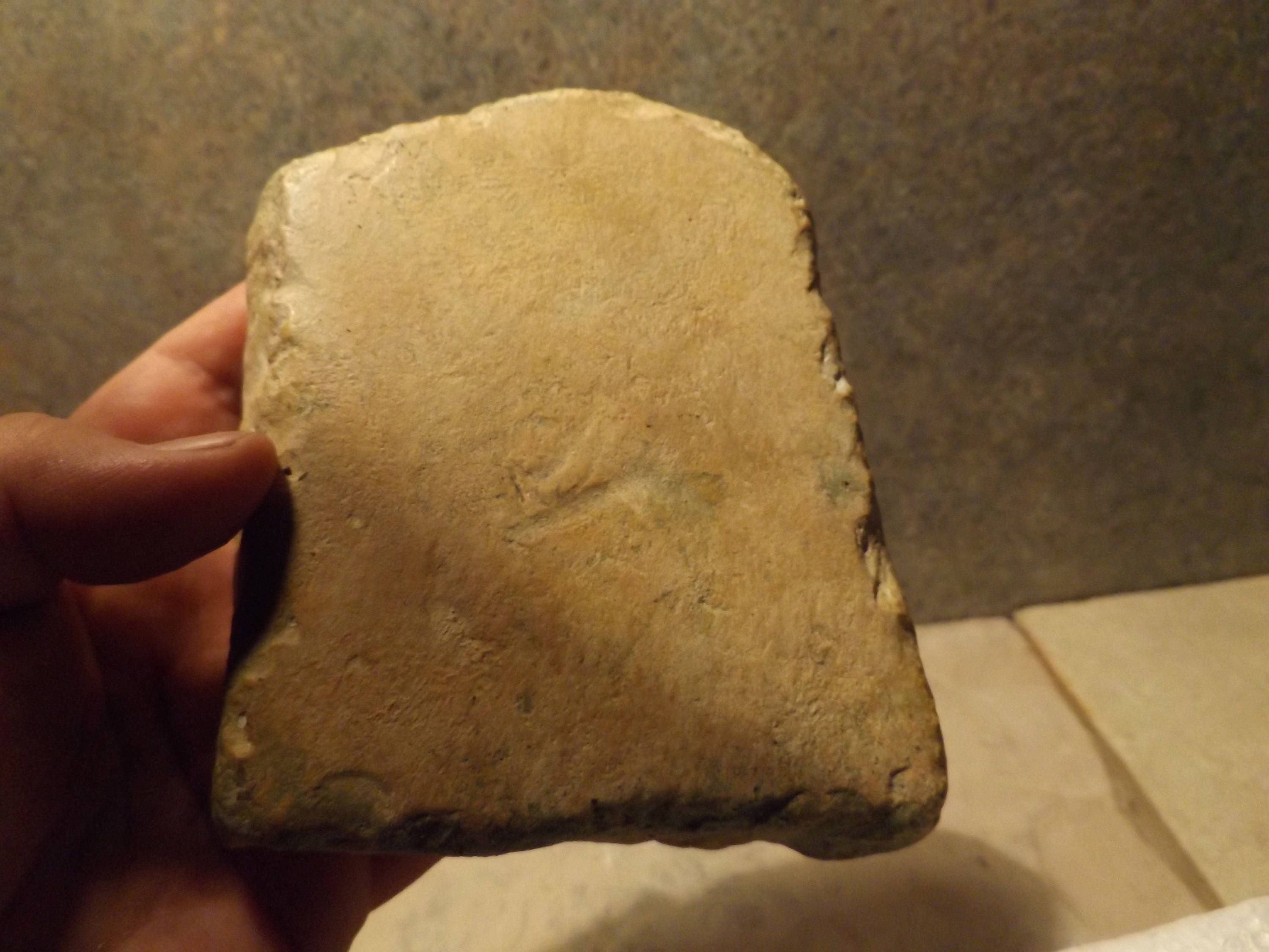 Made of a strong composition stone this fragment has a light ochre colouration with a realistic patina.