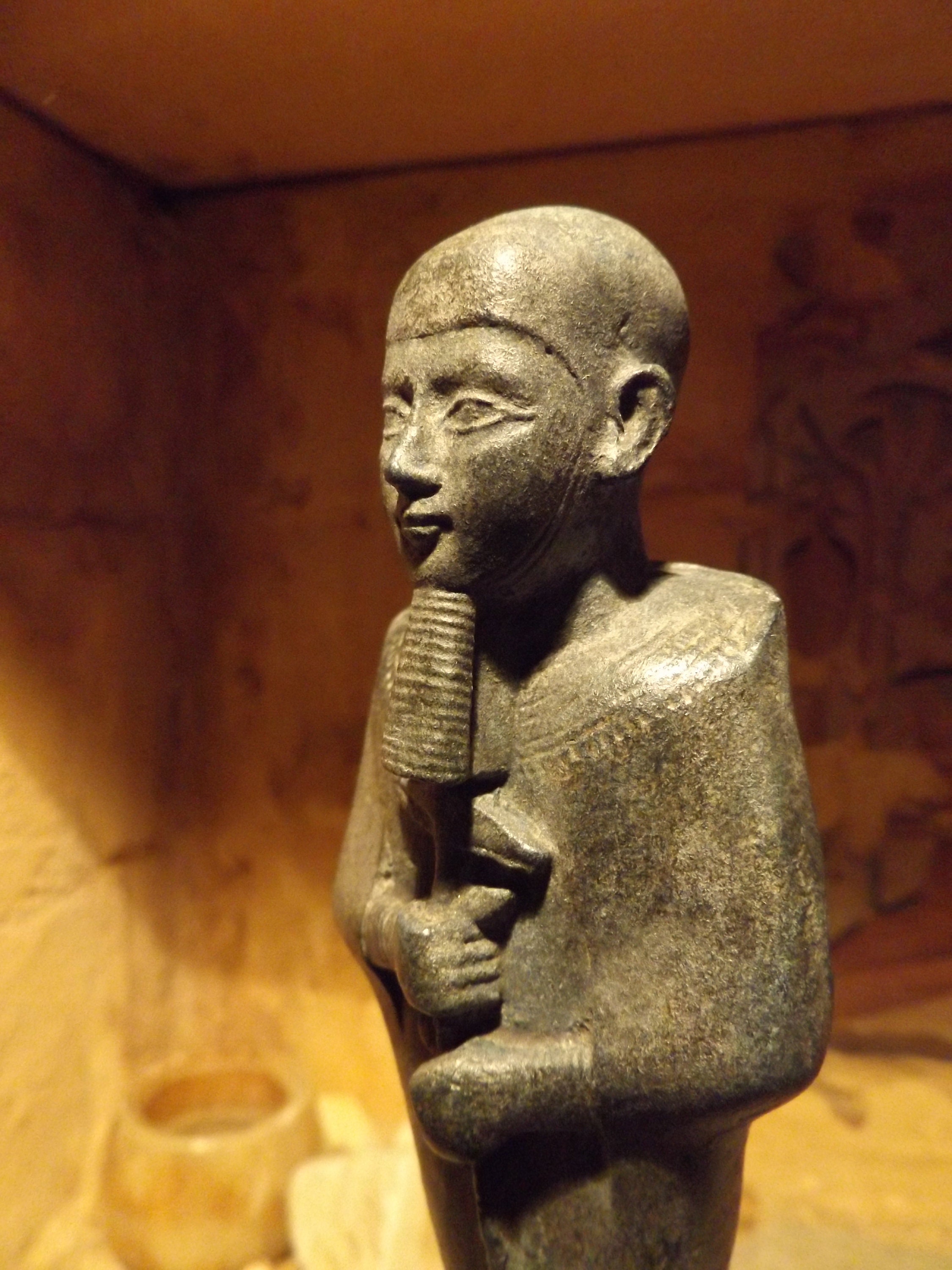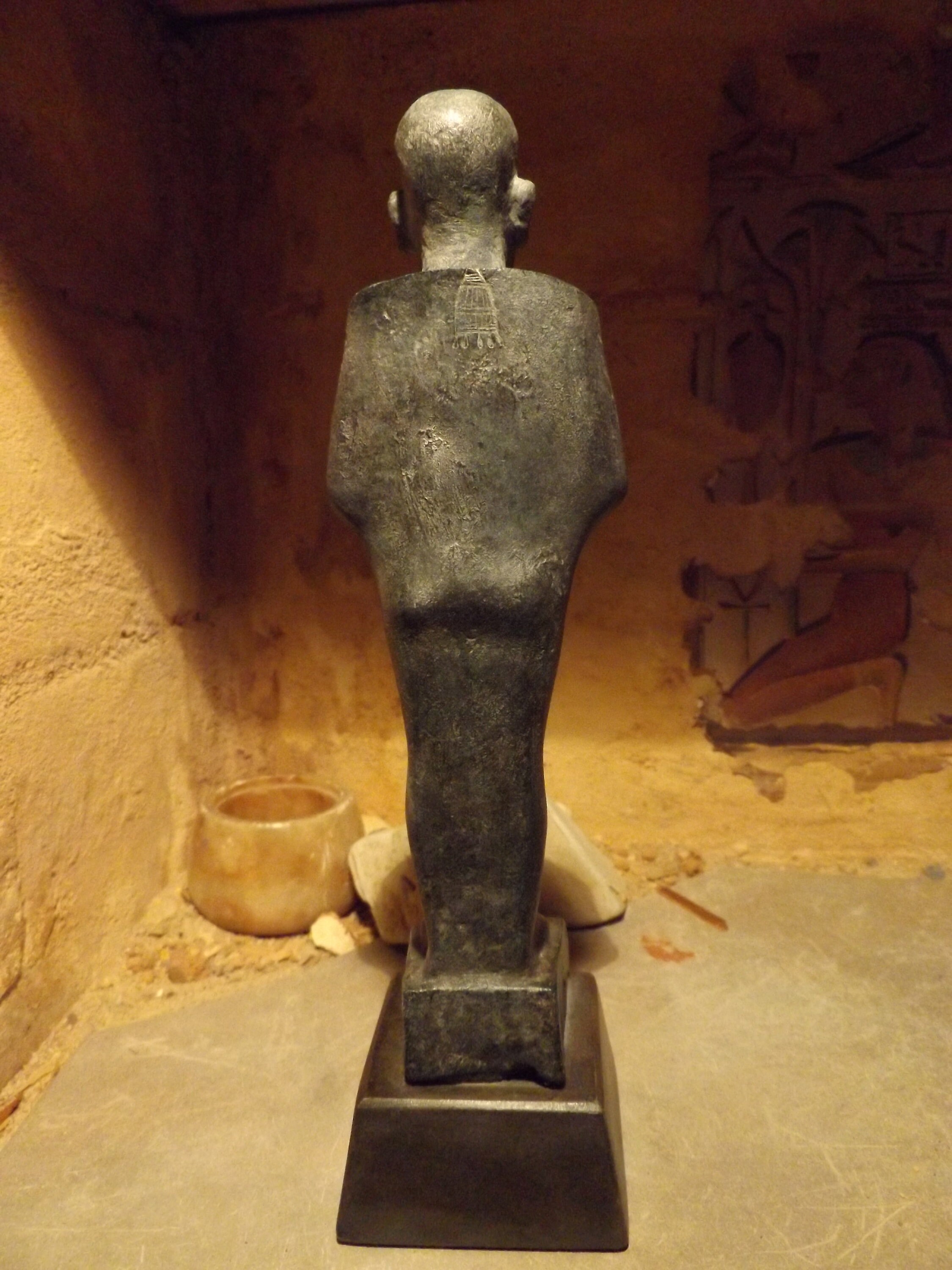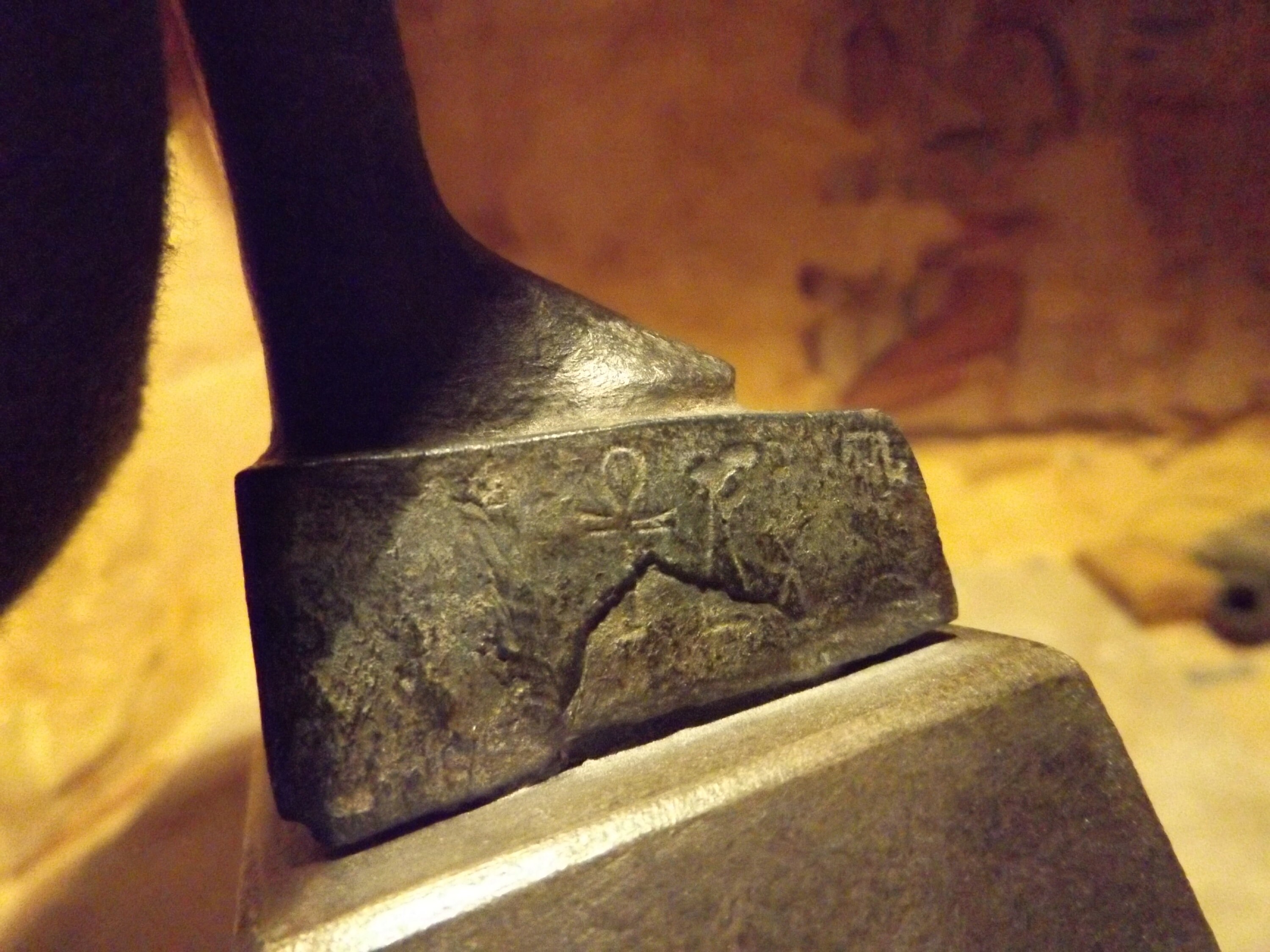 Remnant hieroglyphs featuring the ankh can be seen on one side of the base he stands upon.