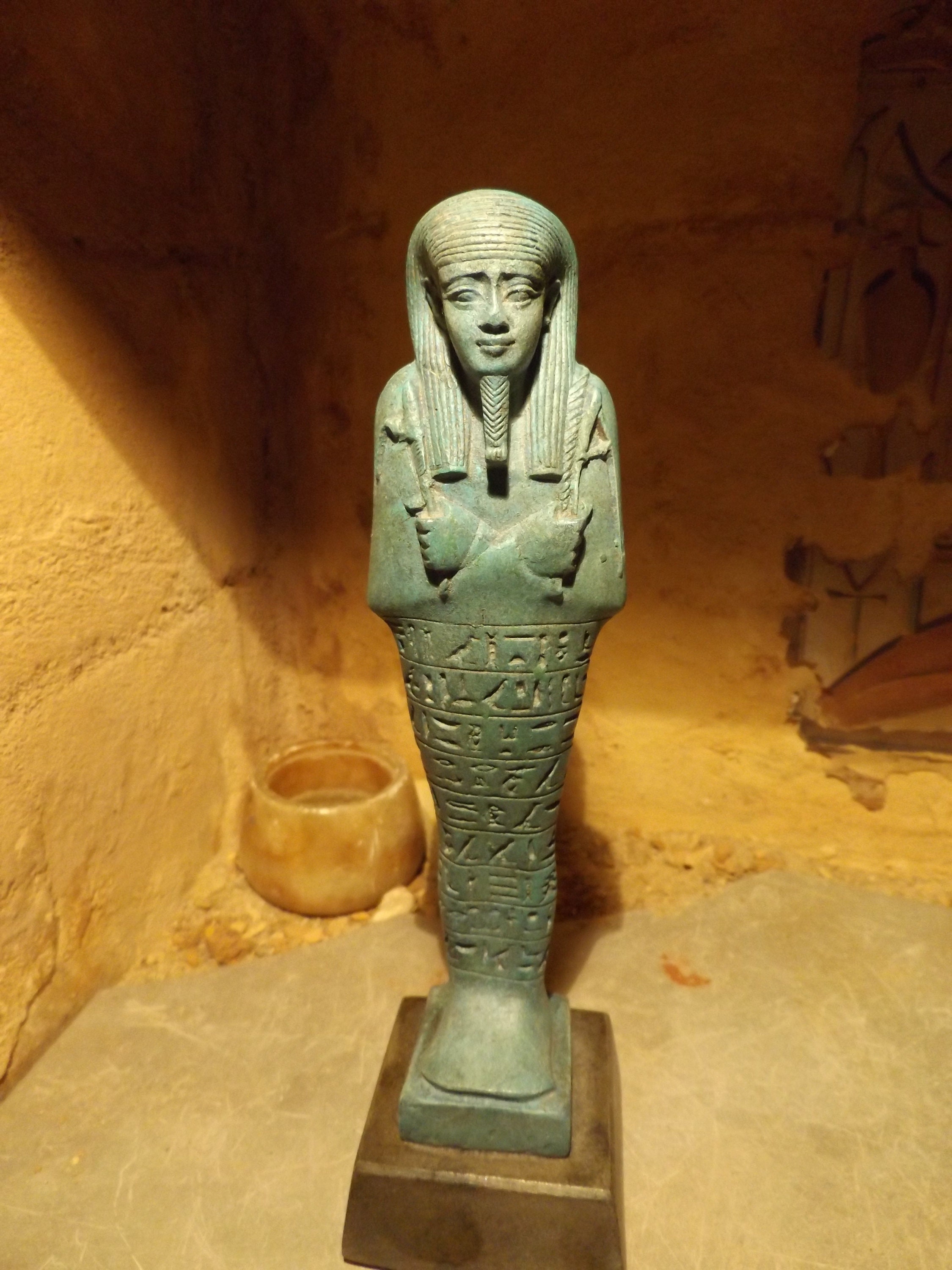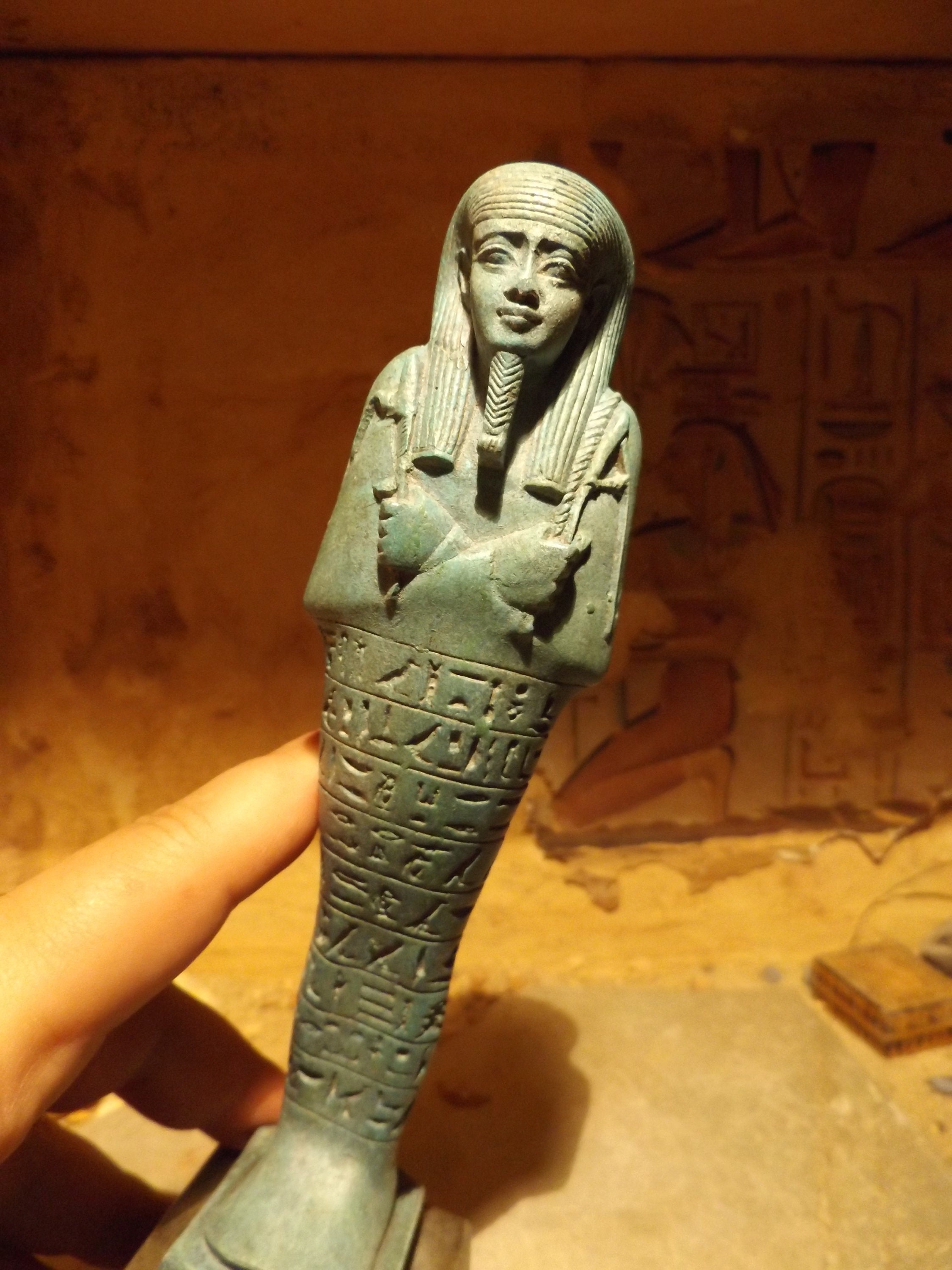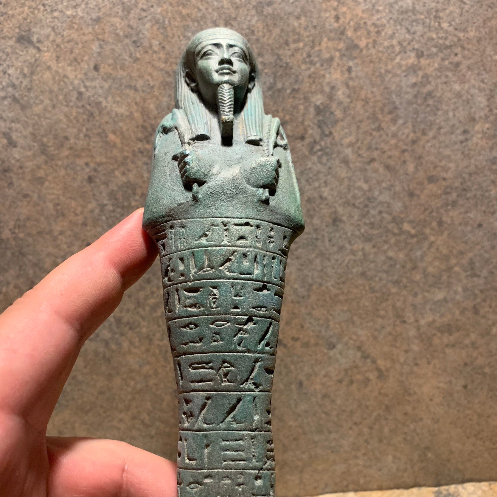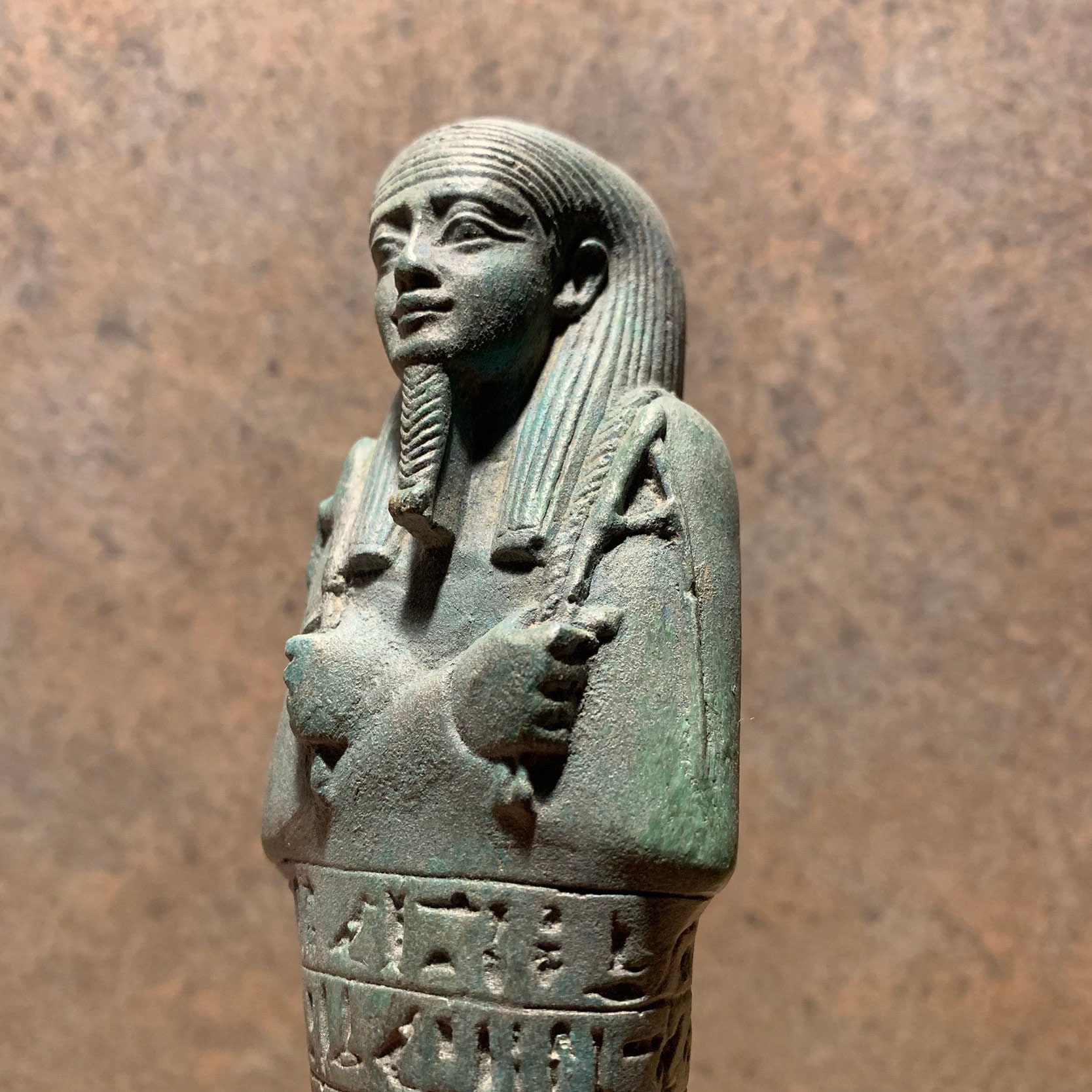 On offer here is a very fine Egyptian ushabti replica with fine details and body form. The original figure dates from the 26th dynasty during the reign of Psamtik, a time when ushabti figures were made to a very high standard.