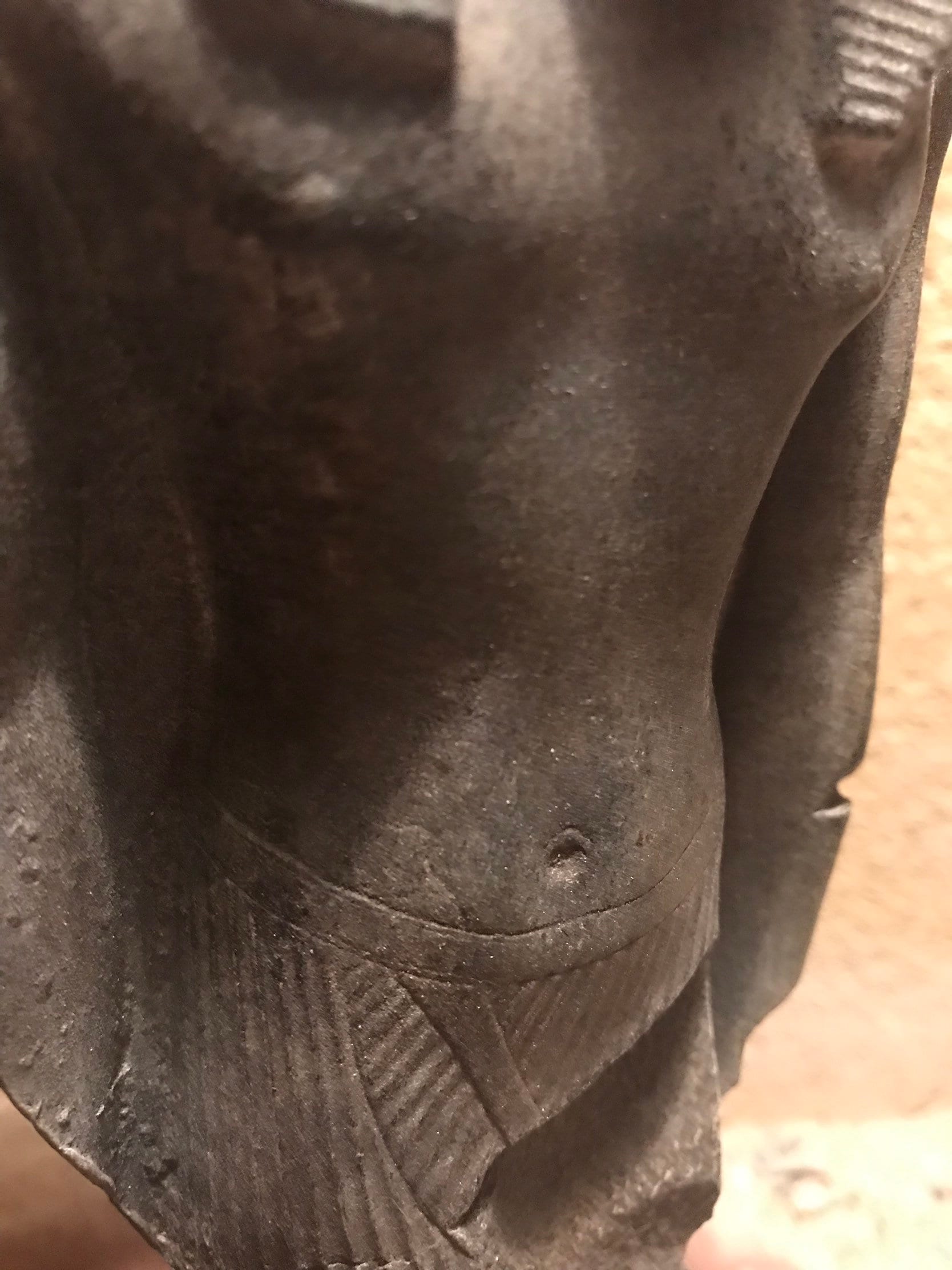 Made of a limestone and quartzite composition stone used for fine museum reproductions. A well developed aged slate black / grey patina gives an authentic look of antiquity. I have tried to show this in the photographs which offer some lighting possibilties using a simple desk lamp.