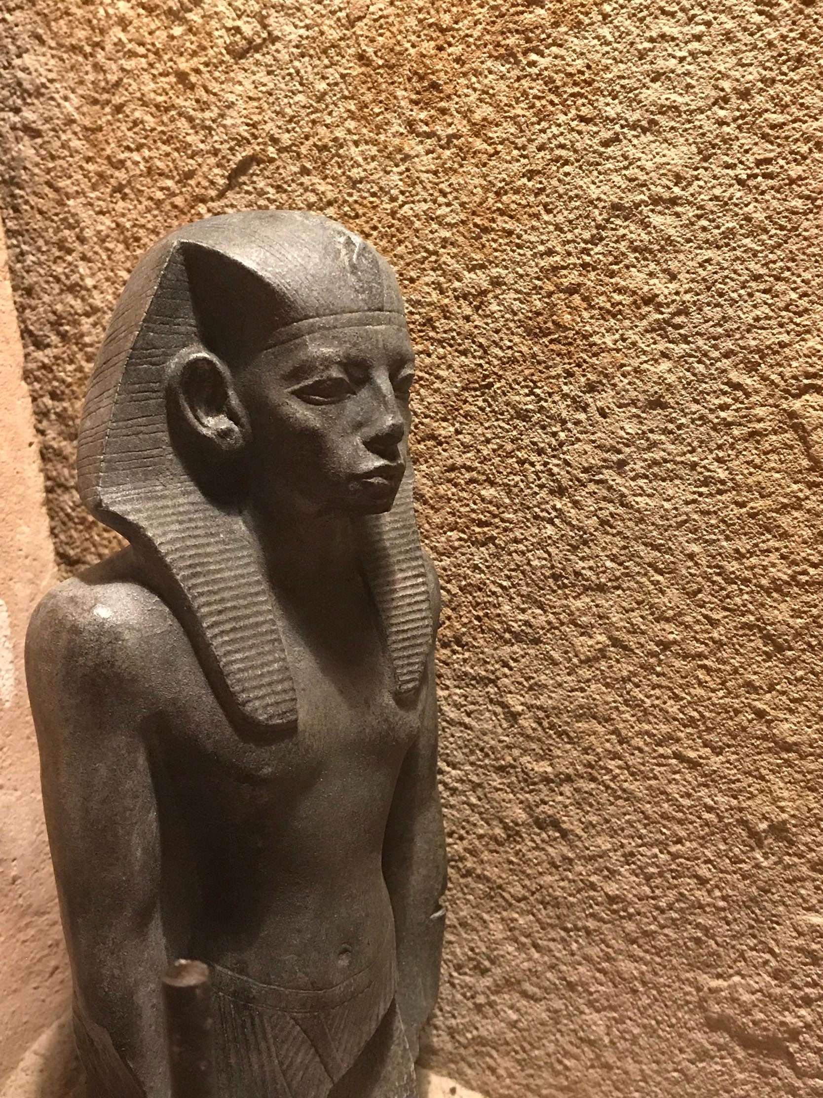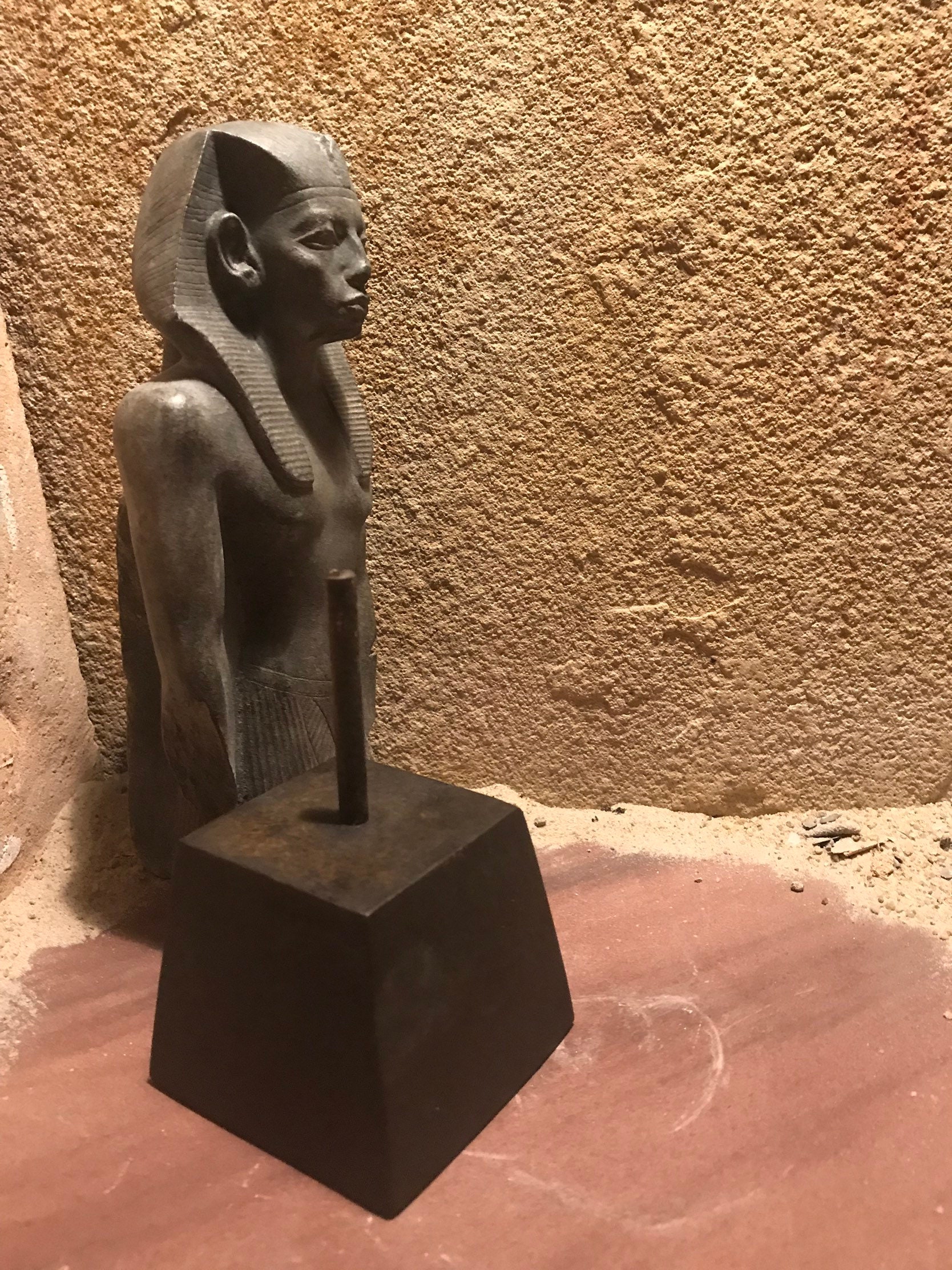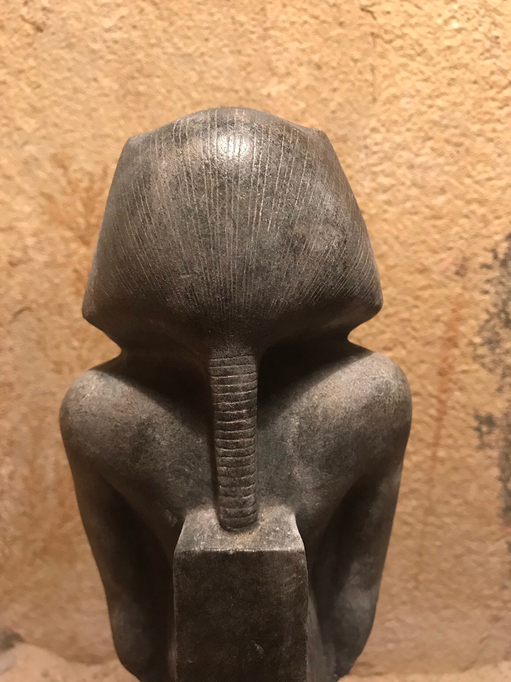 On offer here is a stunning replica of a fragmentary statue of the famous 12th Dynasty Pharaoh, Senusret the third. The feature I like most about it, is the ancient damage that leaves just enough of the figure to enable one to imagine this was once a small masterpiece of ancient Egyptian sculpture. It even shows the texture of the original stone.
