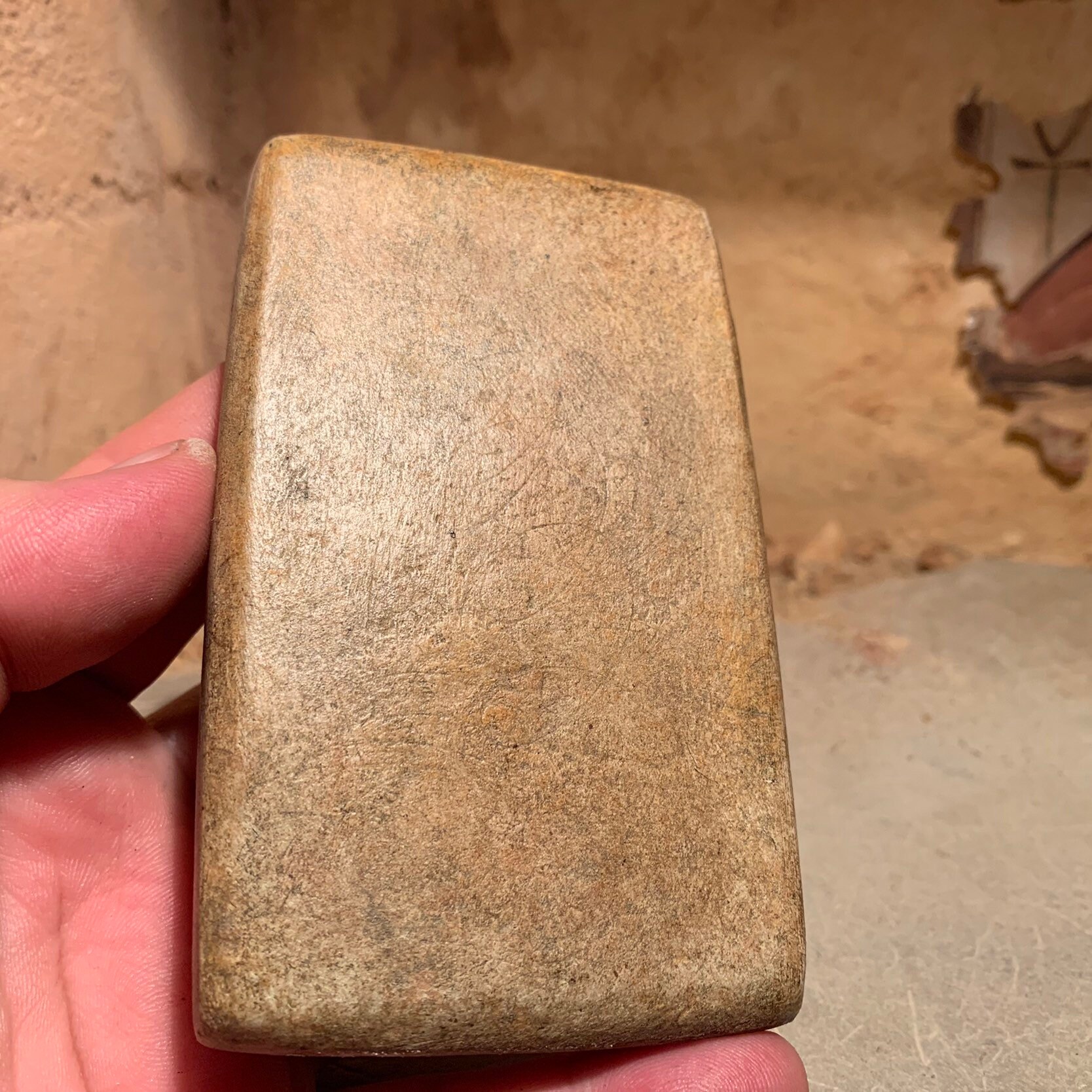 Made of a limestone and quartzite composition stone, it has an aged patina.
