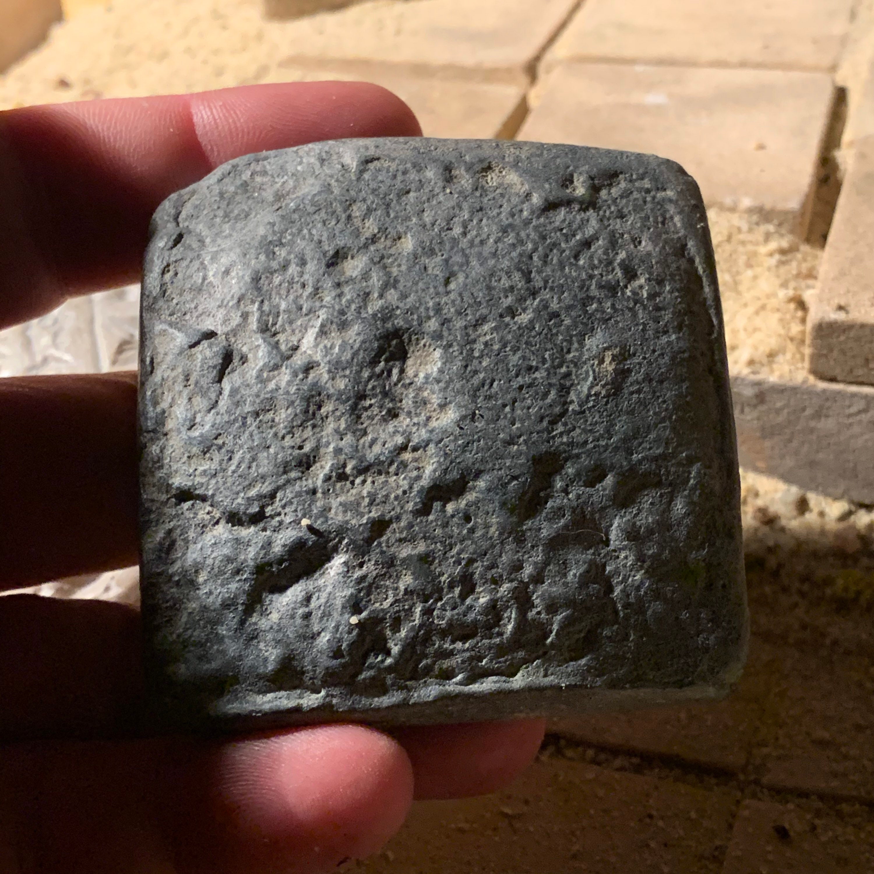 Made of a limestone and quartzite composition stone, They have an aged patinas with a light polish.