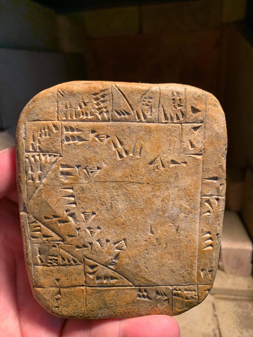 More than 30,000 tablets have been discovered at the site and most of them are administrative records or votive prayers. A special few are revealing in terms of the mathematical minds underscoring the development of the early cities and this tablet certainly belongs in this category.
