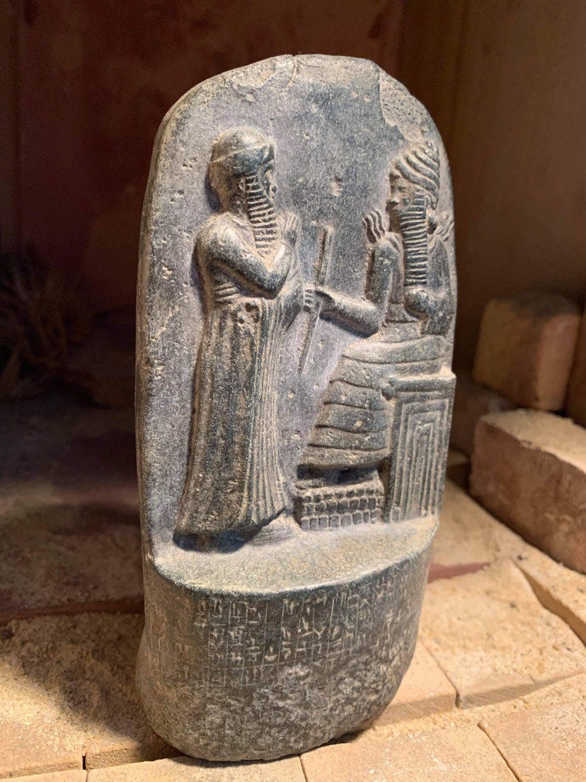 Available here is a reduction replica portion of the great ancient Babylonian code of Hammurabi.