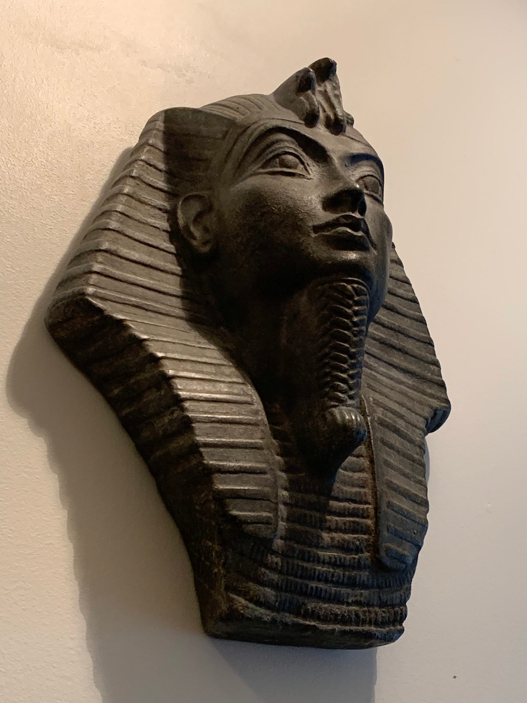 Egyptian revival statue / sculpture. Pharaoh wall mask Tutankhamen / Tutankhamun