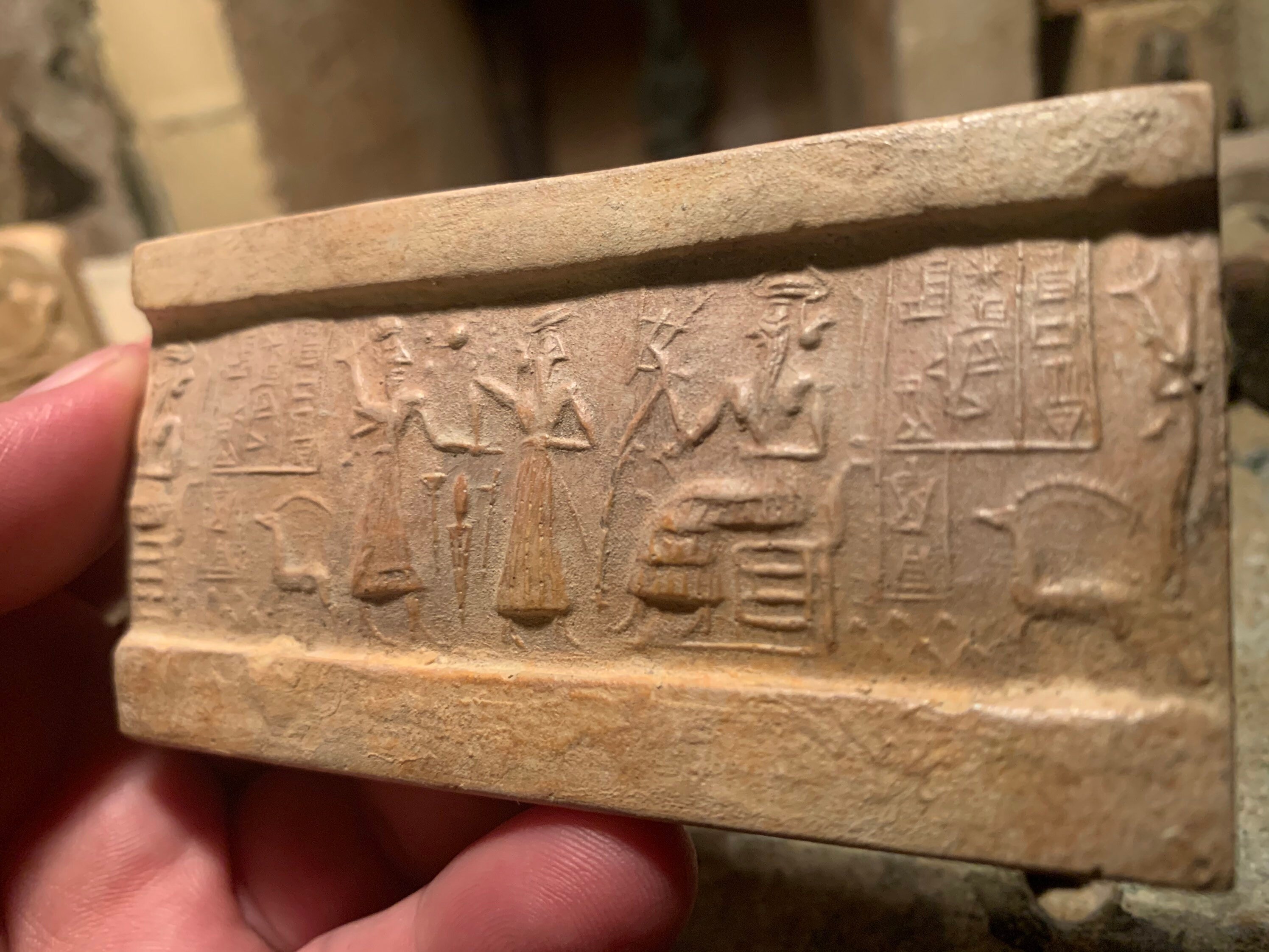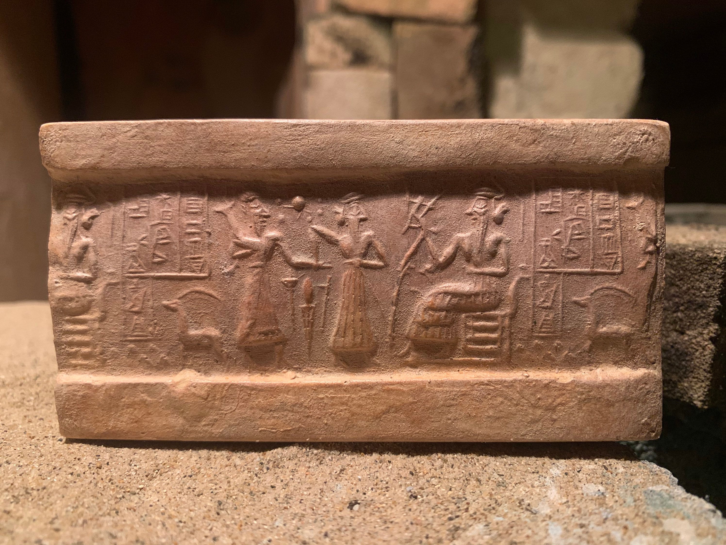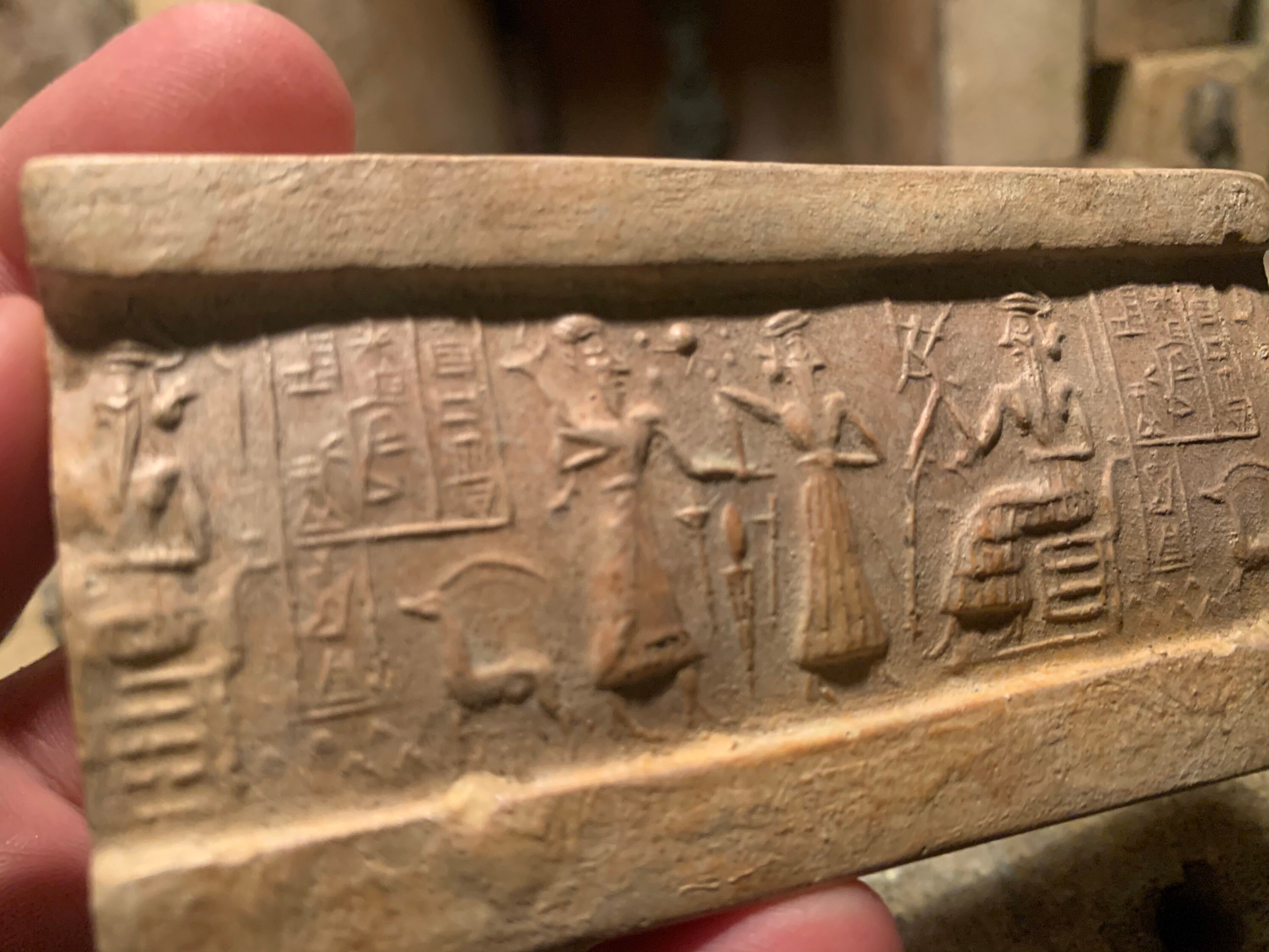 On offer here is a replica of one of the most well known and controversial of all Sumerian cylinder seal impressions.